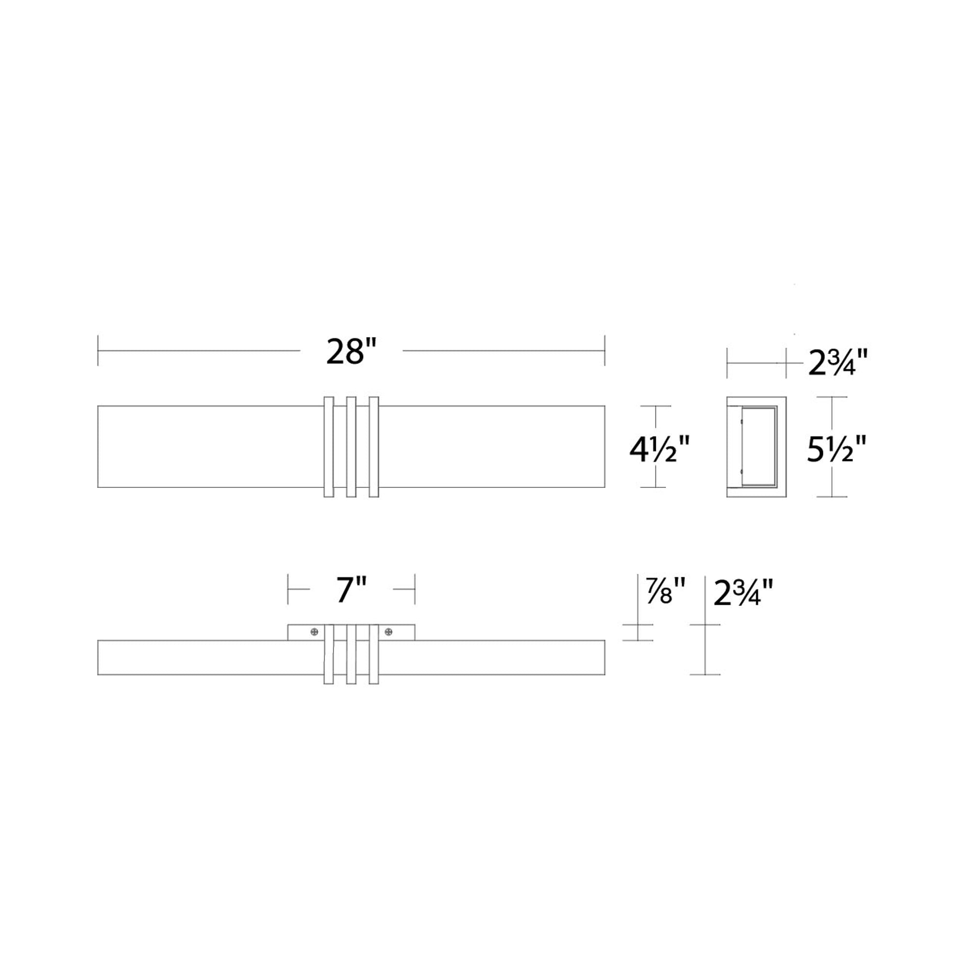 - 28-Inch: 28"W X 5.5"H; 2.75" Extension