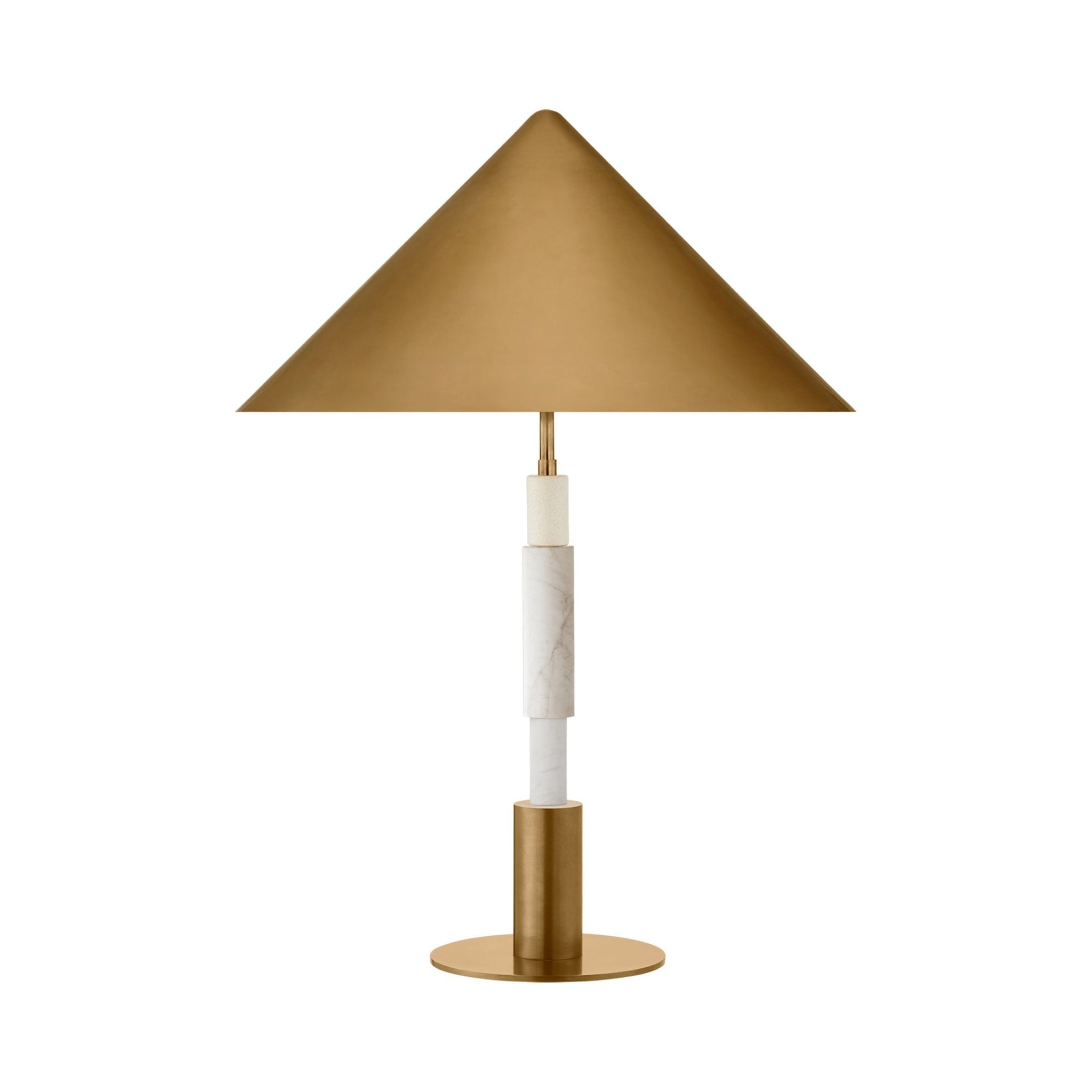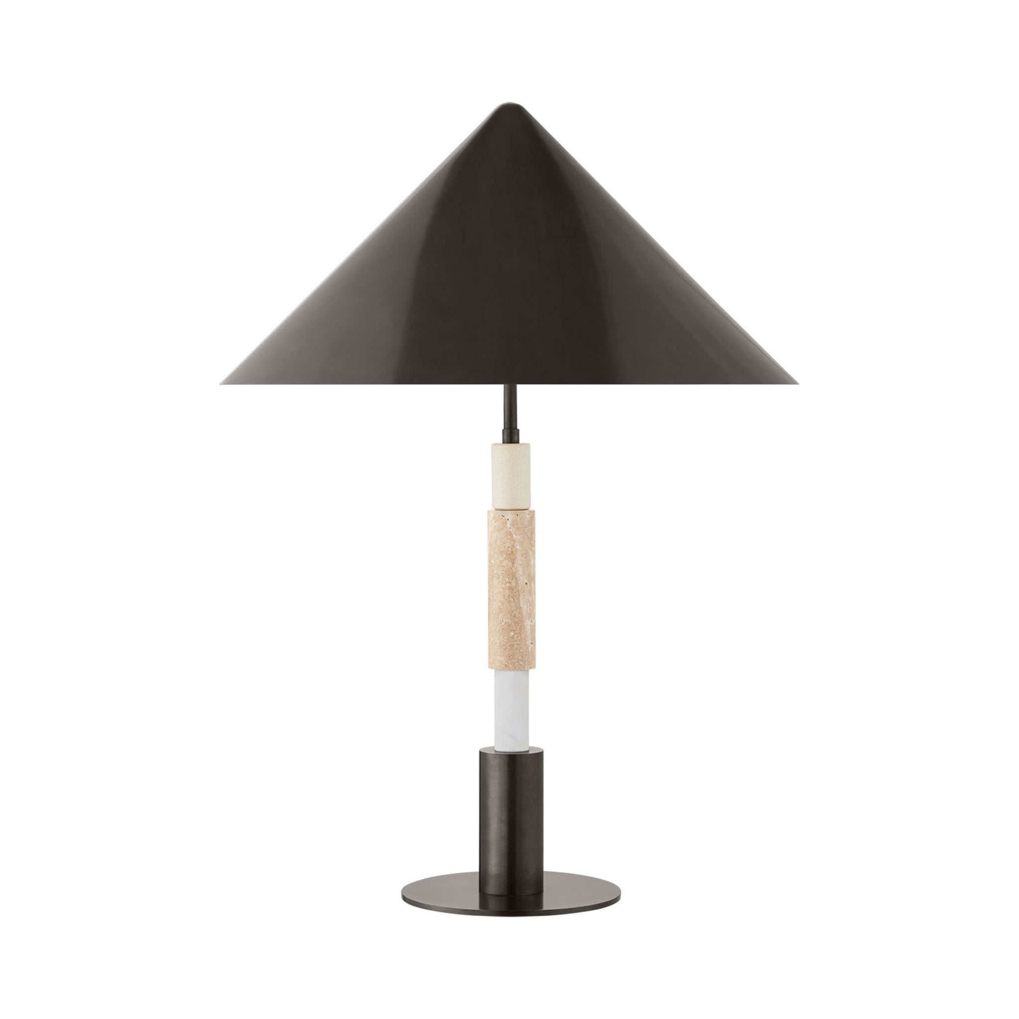 Capturing attention with texture and dimension, the Mira Stacked Table Lamp from Visual Comfort Signature elevates any sitting area. It's topped with a wide, conical shade crafted in metal, making the most of crisp angles and a sleek curve.
