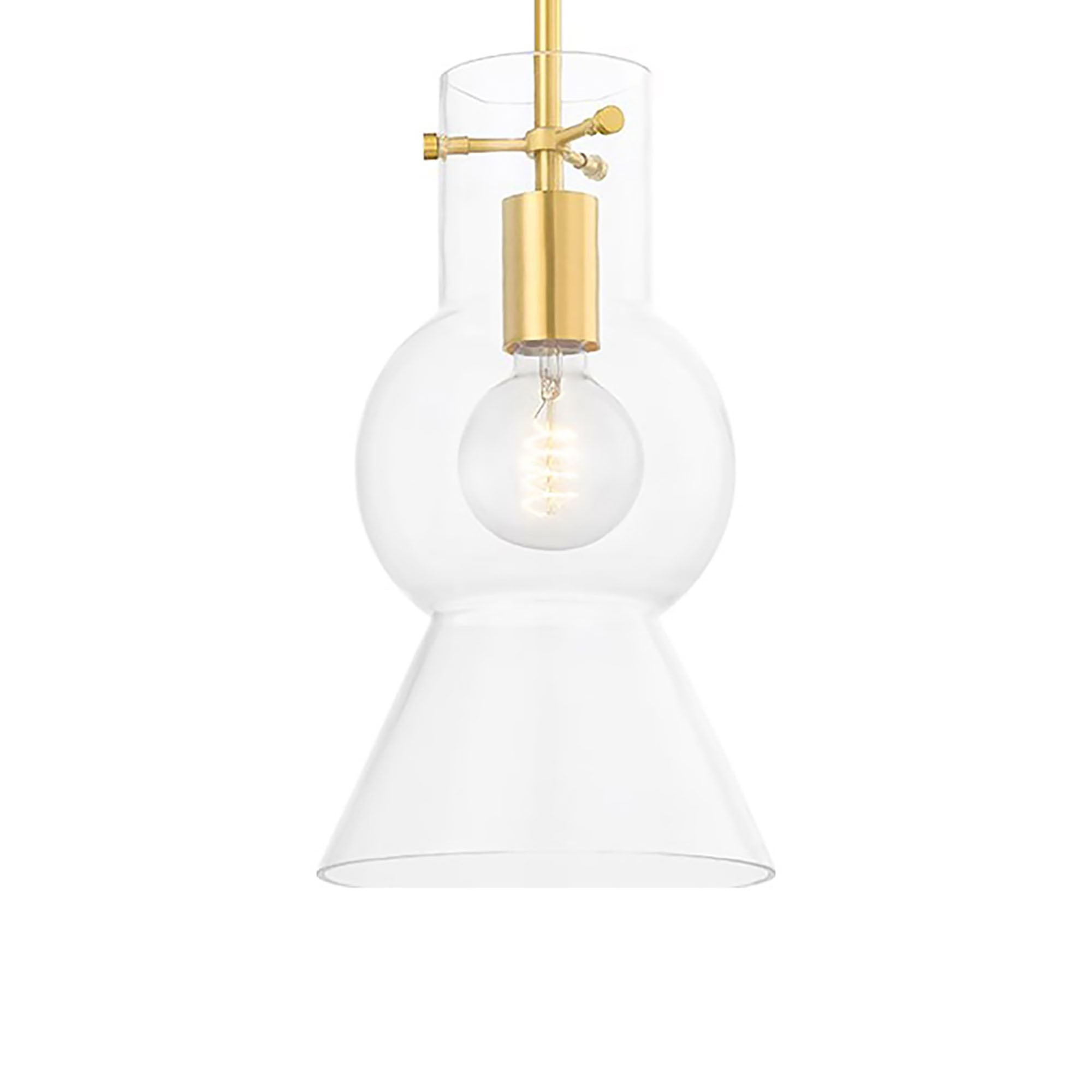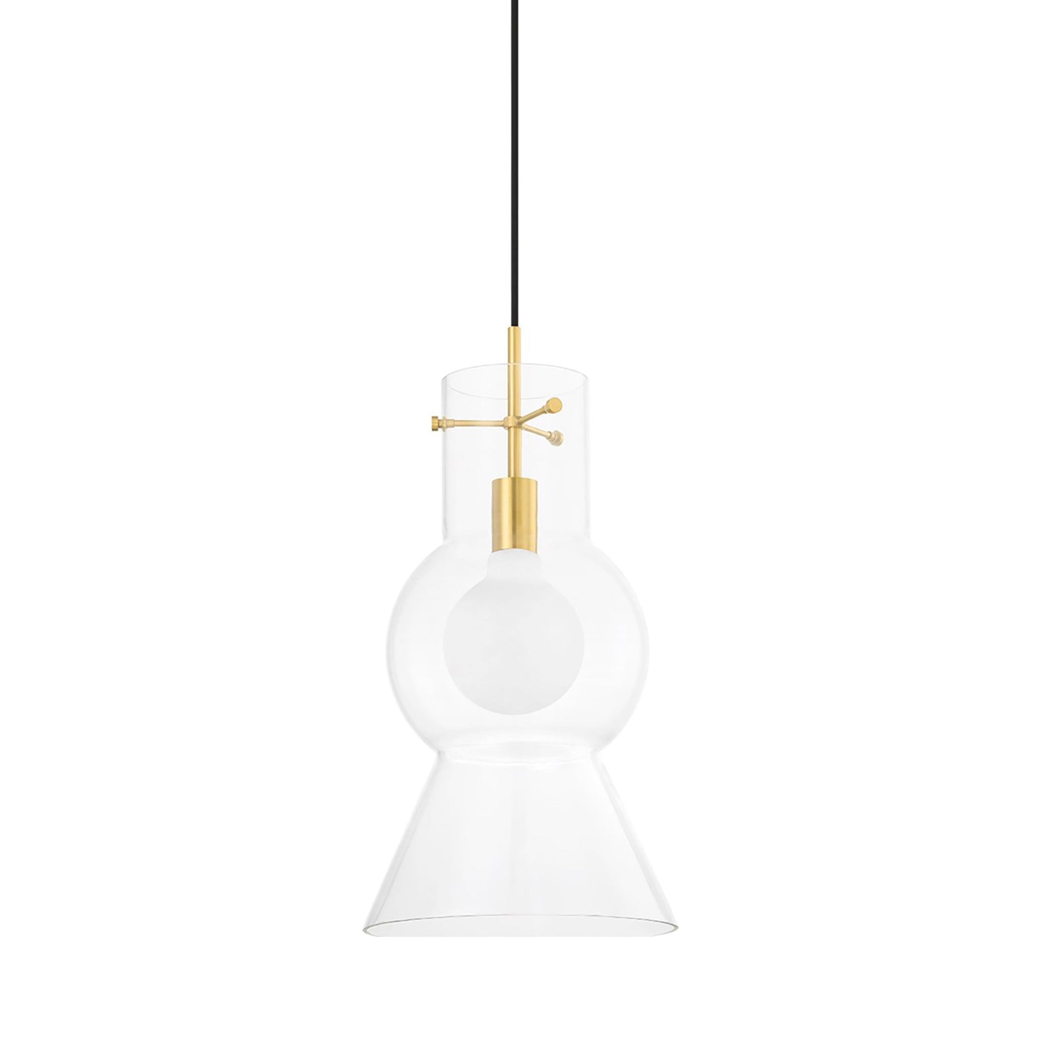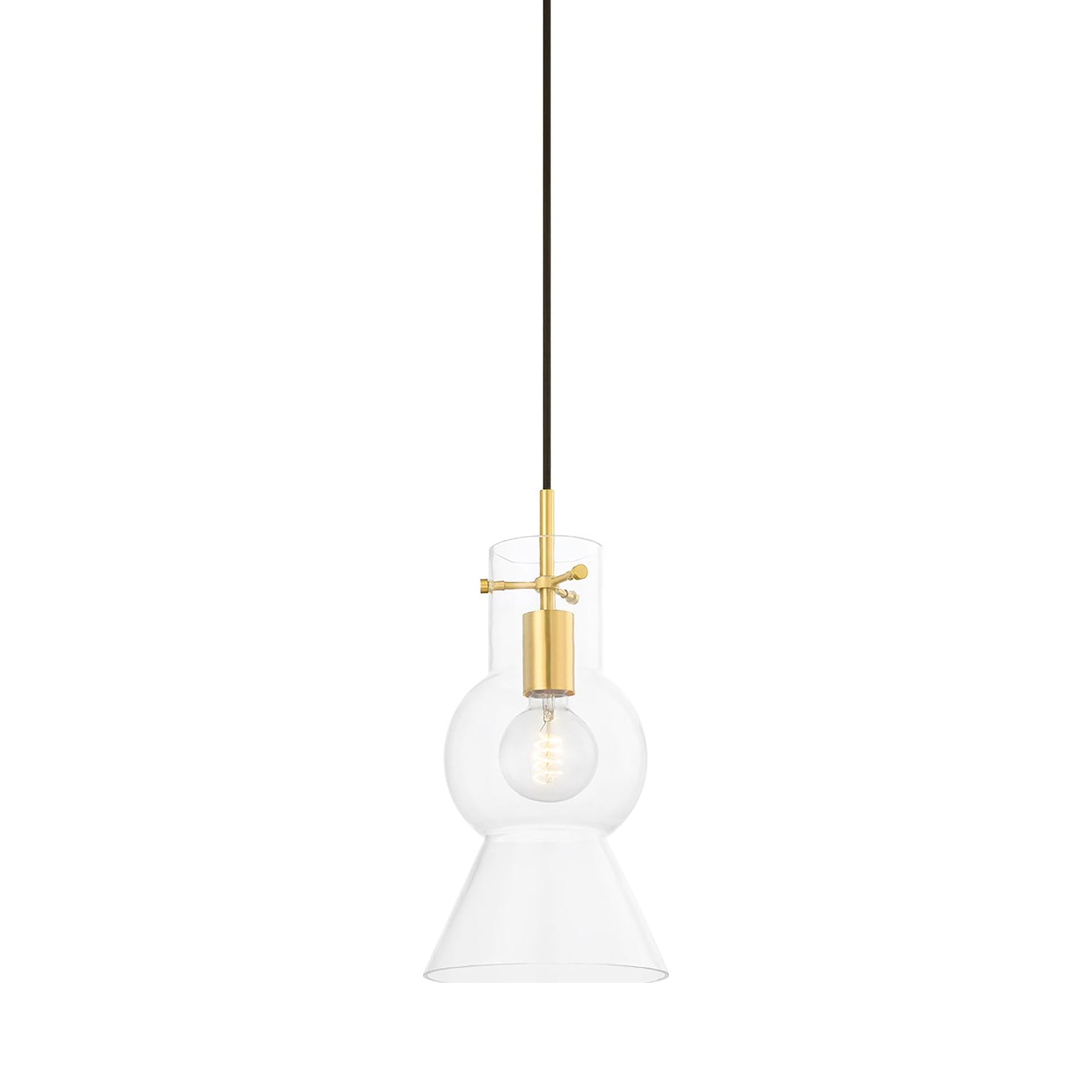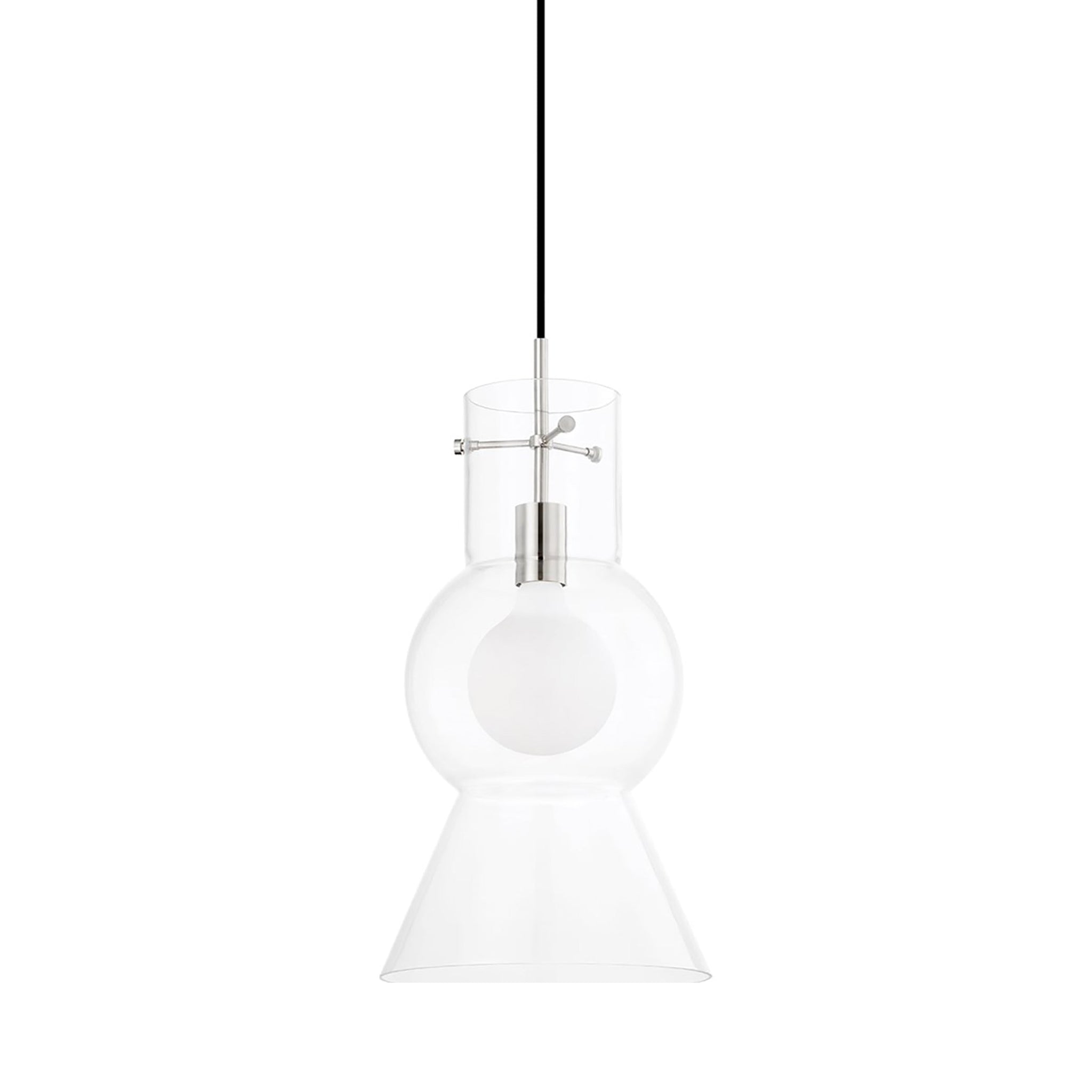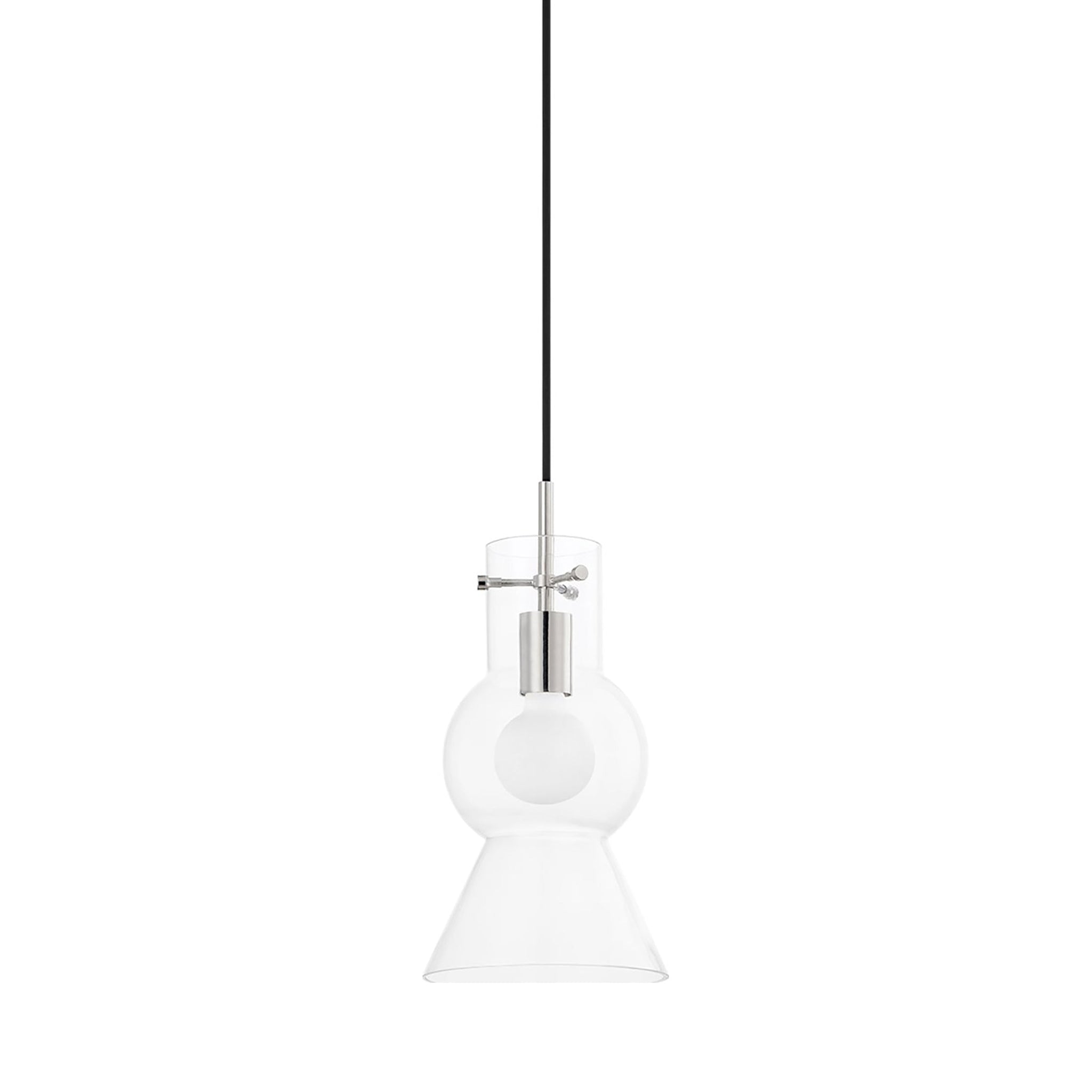 With a crafty throwback to industrial aesthetics, the Mirabel Pendant Light from Mitzi delivers the simplicity you require in a tasteful minimalized space. Embrace the sheer elegance of sparkling clear glass that forms a shapely shade giving way to an ornate metal socket and a black suspension cable for good measure.