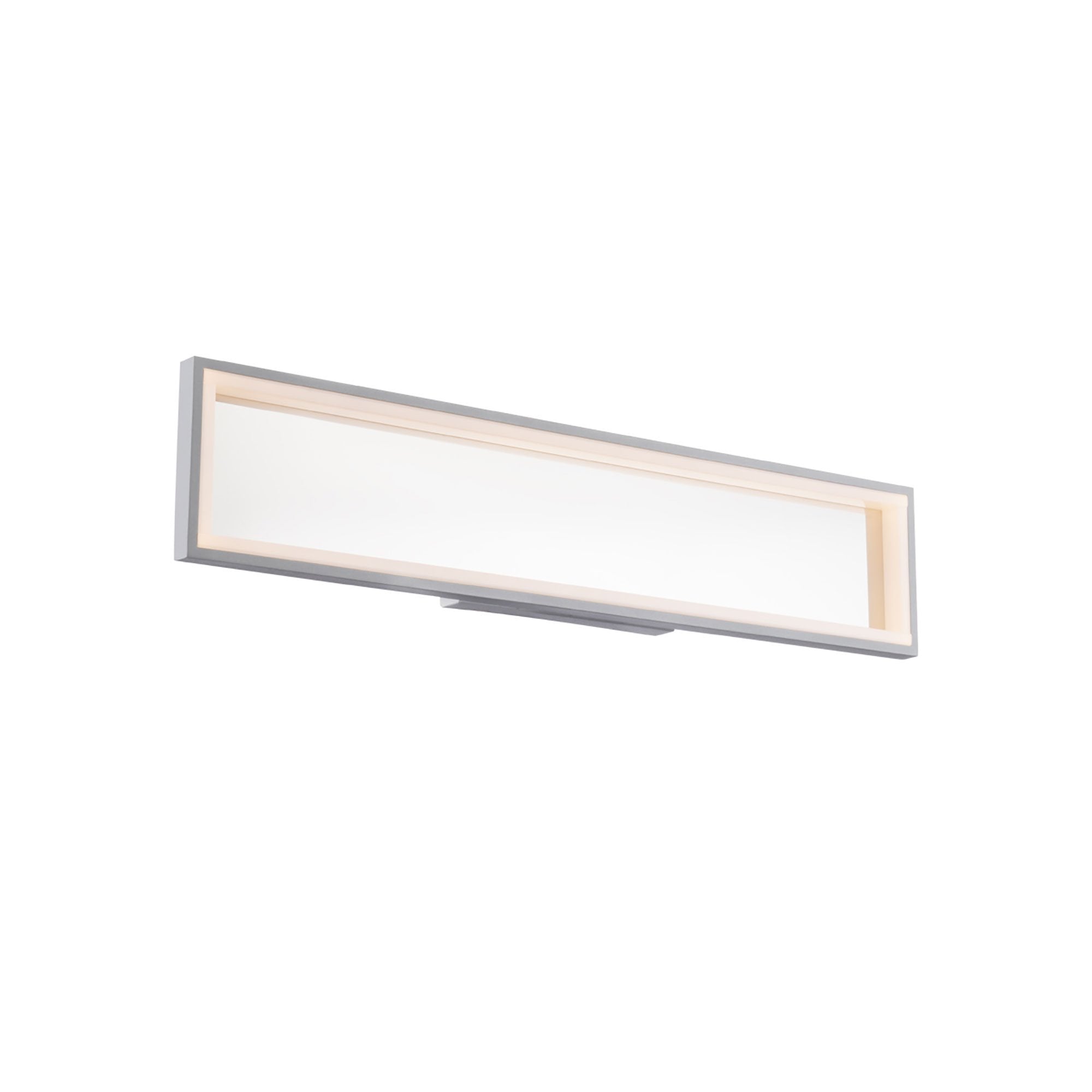 The Mirror Mirror LED Bath Wall Light from dweLED complements design simplicity in a modern bath space with a framed light effect styled with a mirrored titanium finish aluminum and a PC diffuser.