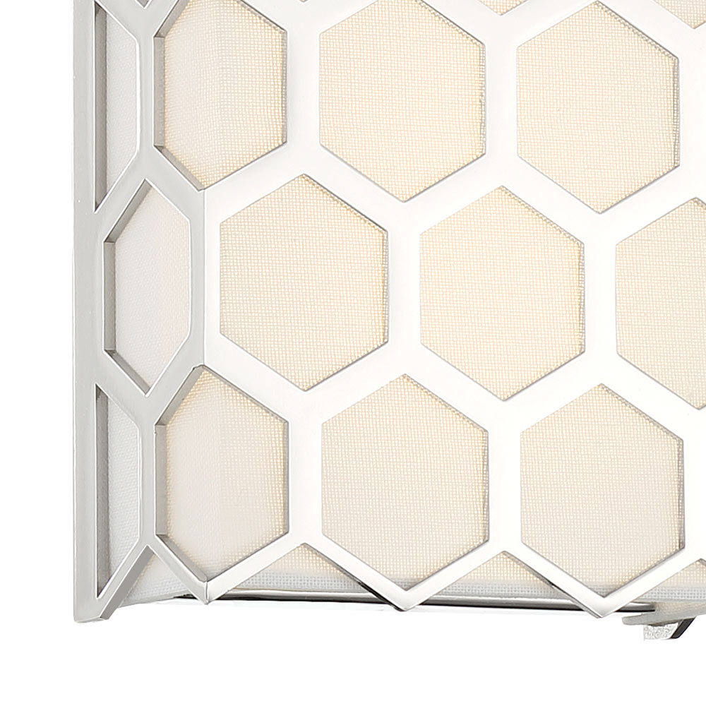 Embrace bold geometric style with a honeycomb motif as you bring casual lighting into a custom modern space. The Missing Link LED Wall Light from George Kovacs delights with a metal cutout frame over a white linen shade, providing palette versatility and a cool shapely look, as well as energy-efficient illumination.