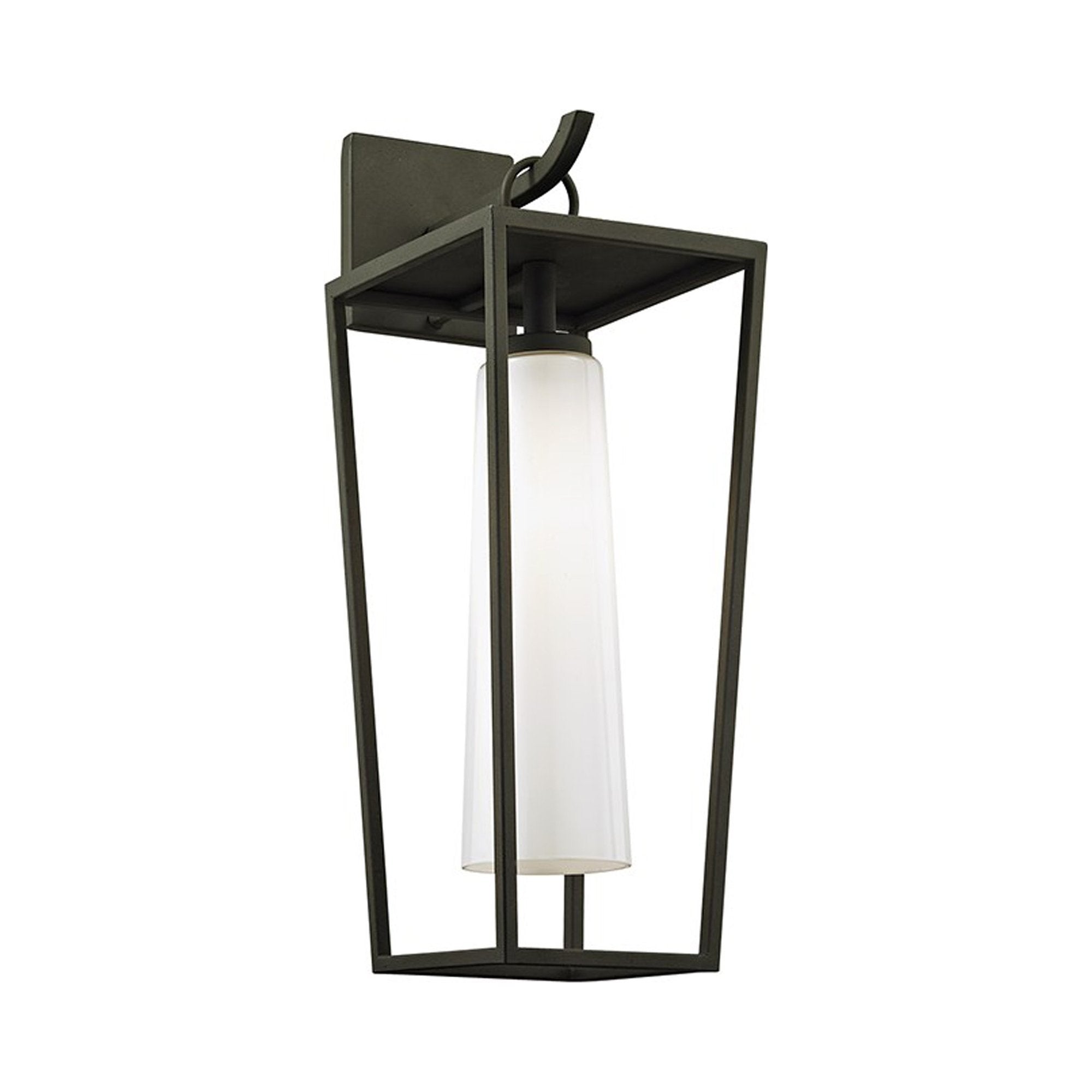 Delivering a stylish modern look, the Mission Beach Outdoor Wall Sconce from Troy Lighting nestles a charming rounded white opal glass shade in a linear open frame made of textured black finish metal.