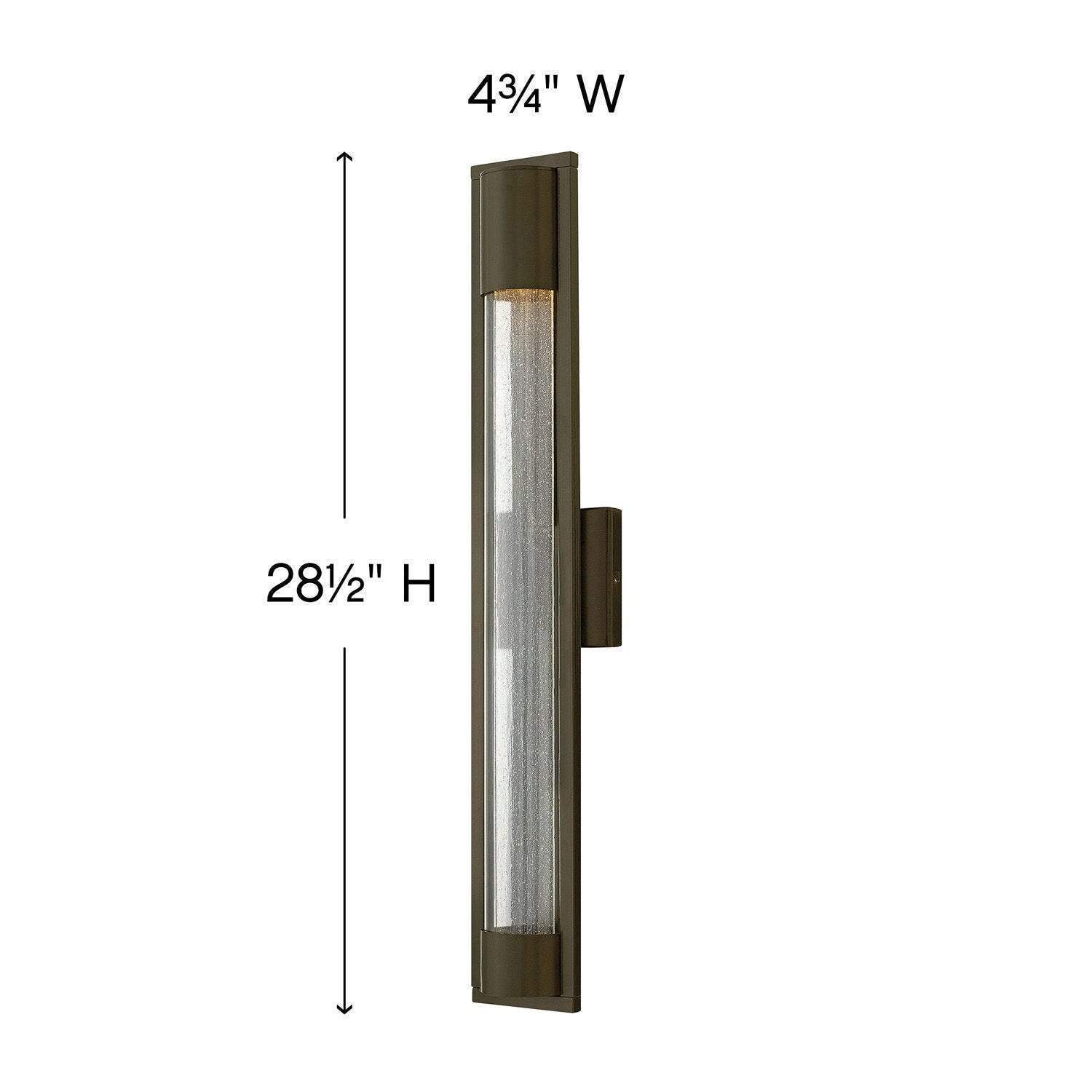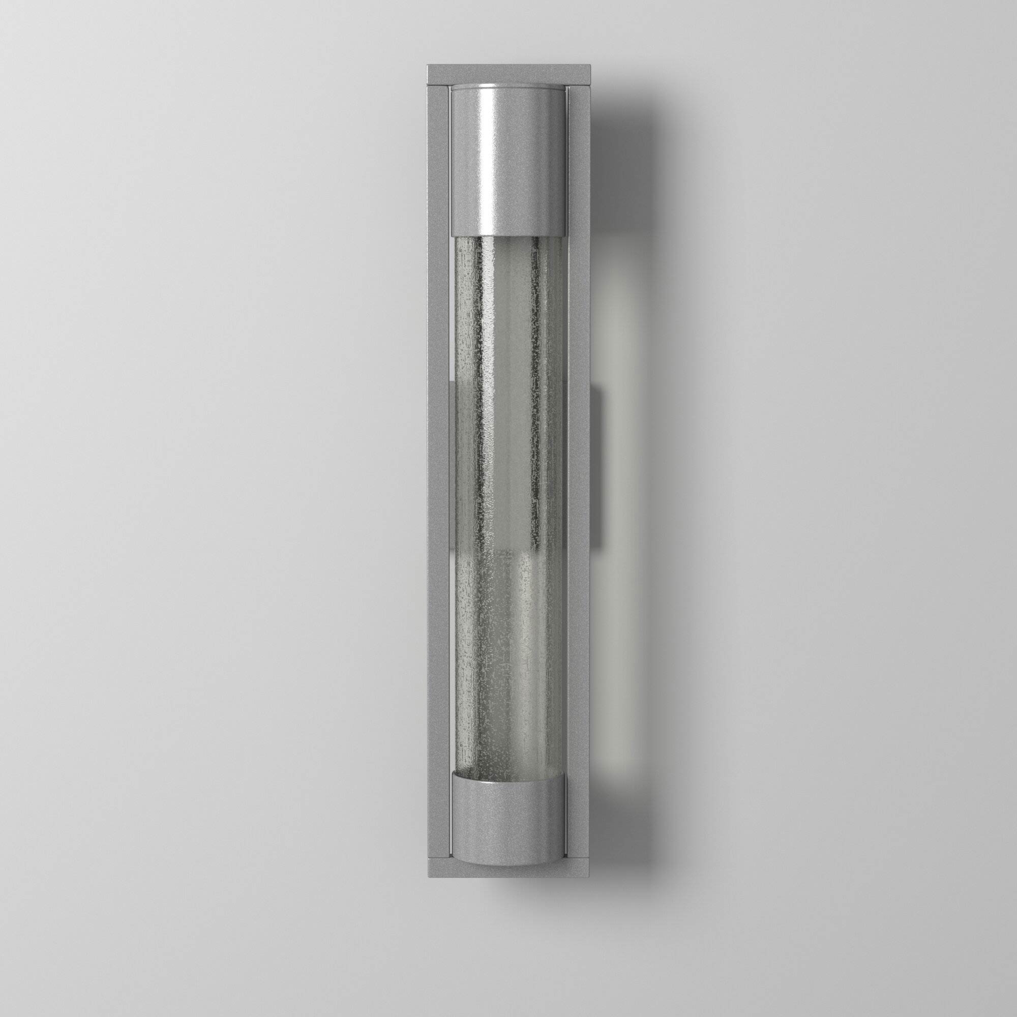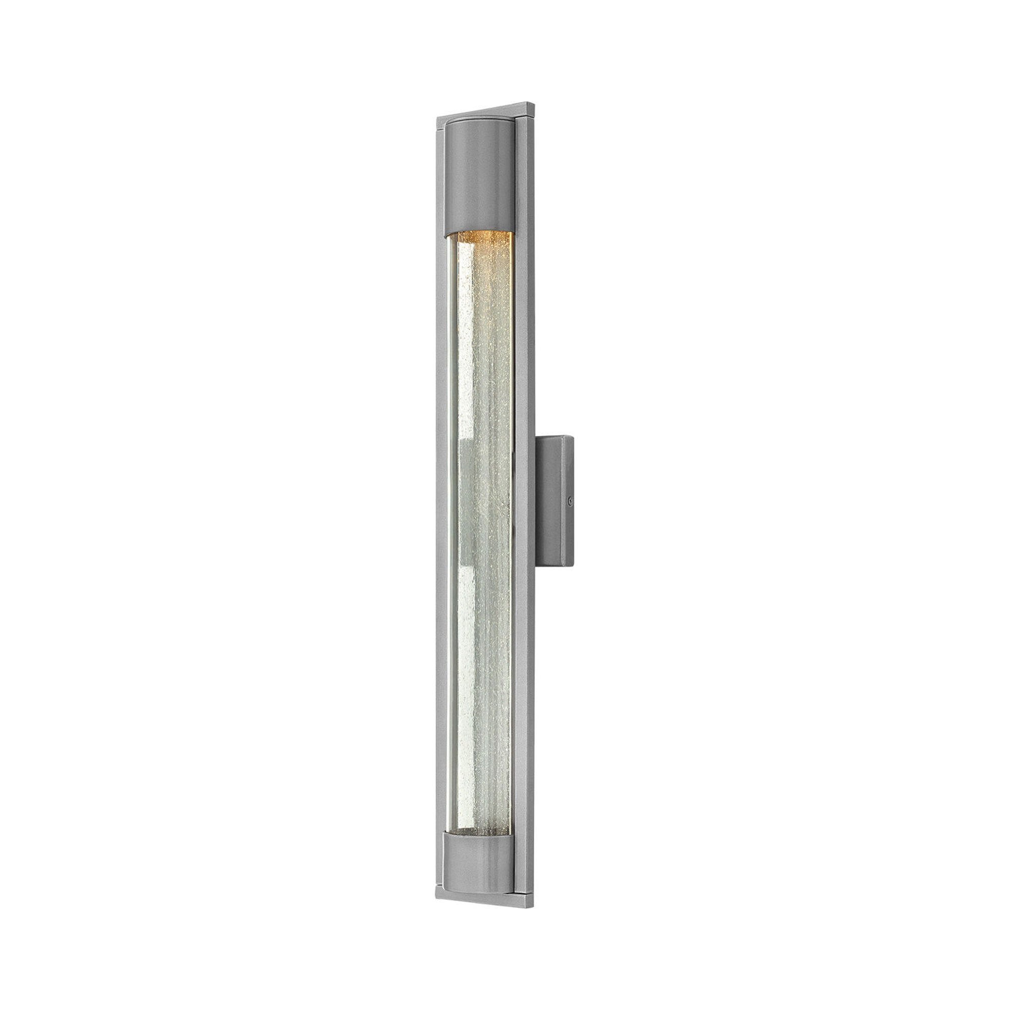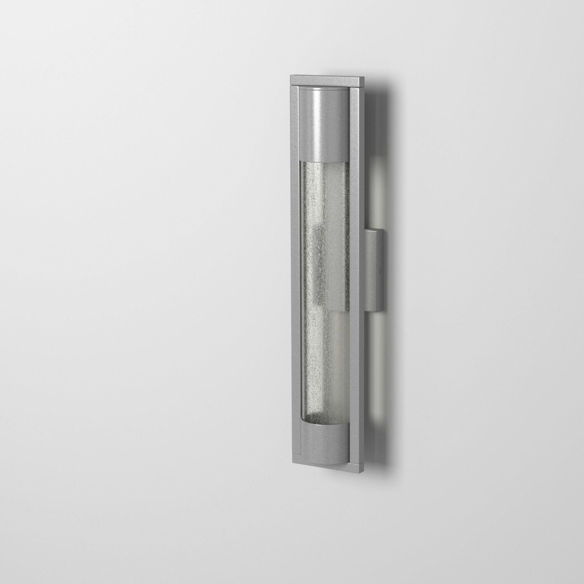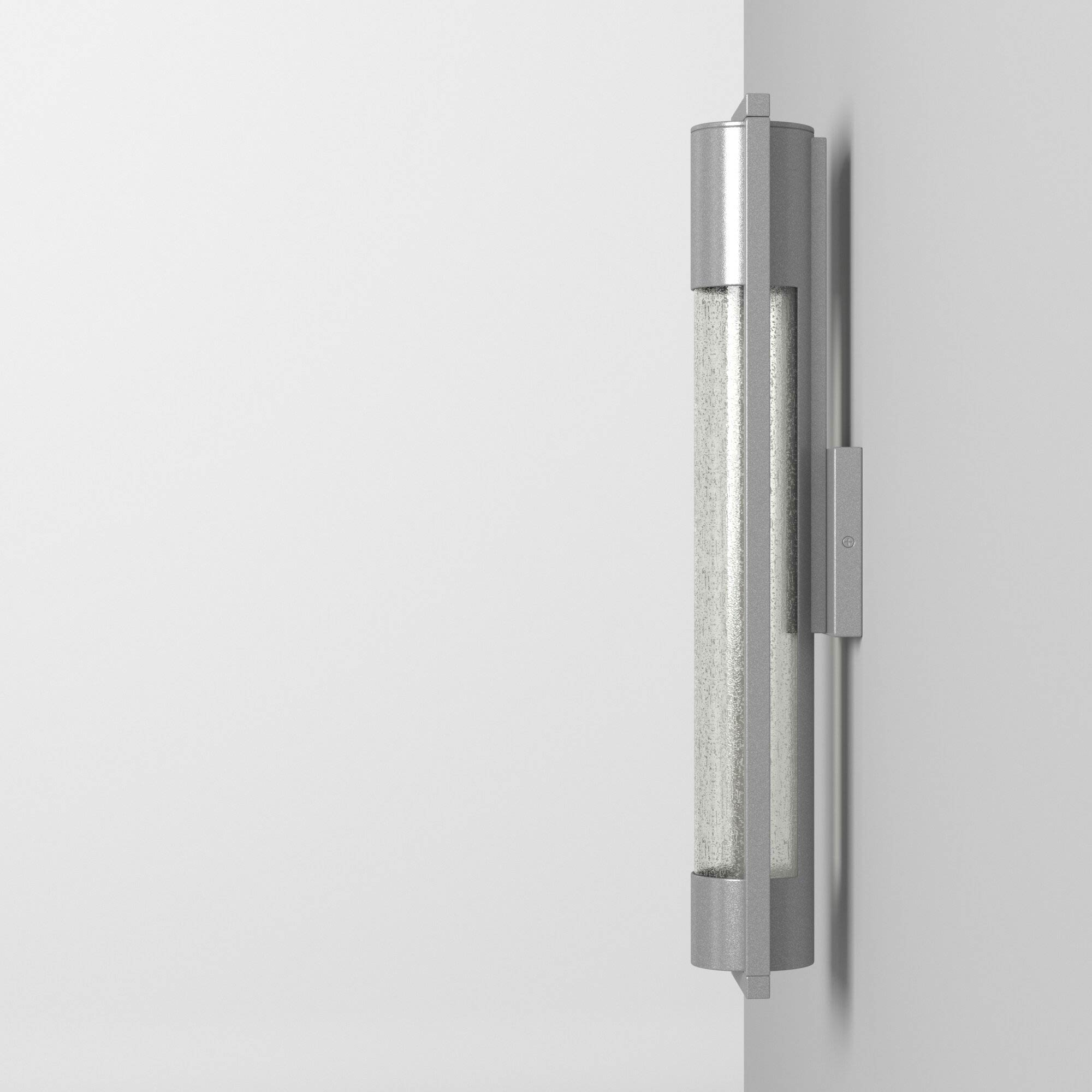 The sleek design of the Mist collection discreetly emphasizes its contemporary heritage. Featuring a prominent interior panel of clear seedy glass captured on both ends and encased in a protective clear acrylic cylinder. Its solid aluminum construction is underscored by bold Satin Black, Bronze or Titanium finish options. Mist Outdoor Wall Light is both Dark Sky and ADA compliant.