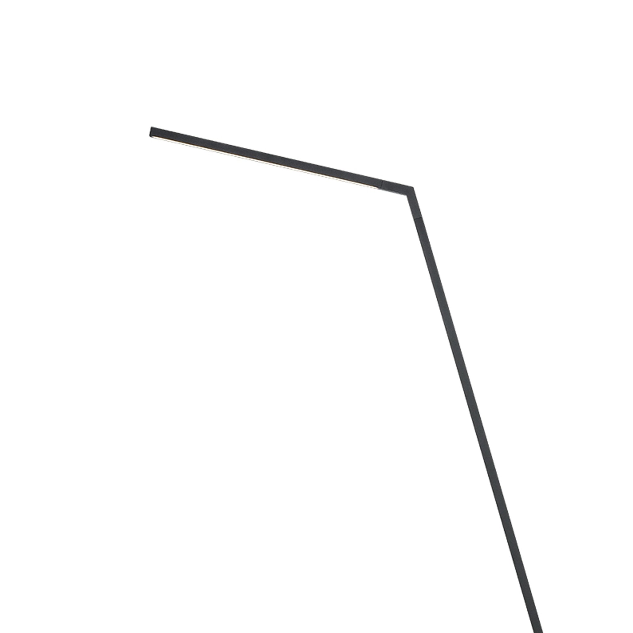 A thin angular line forms the gesture synonymous with the MITER floor and table lamp series. Employed within the top arm of the diminutive square profile is a linear LED source capped by an inset opal diffuser providing uniform soft illumination. The precisely machined aluminum body conceals further functionality with simple power connectors to enable easy assembly and added rotational adjustment. A handsome circular dimmer adorns the structure. Available in multiple finishes.