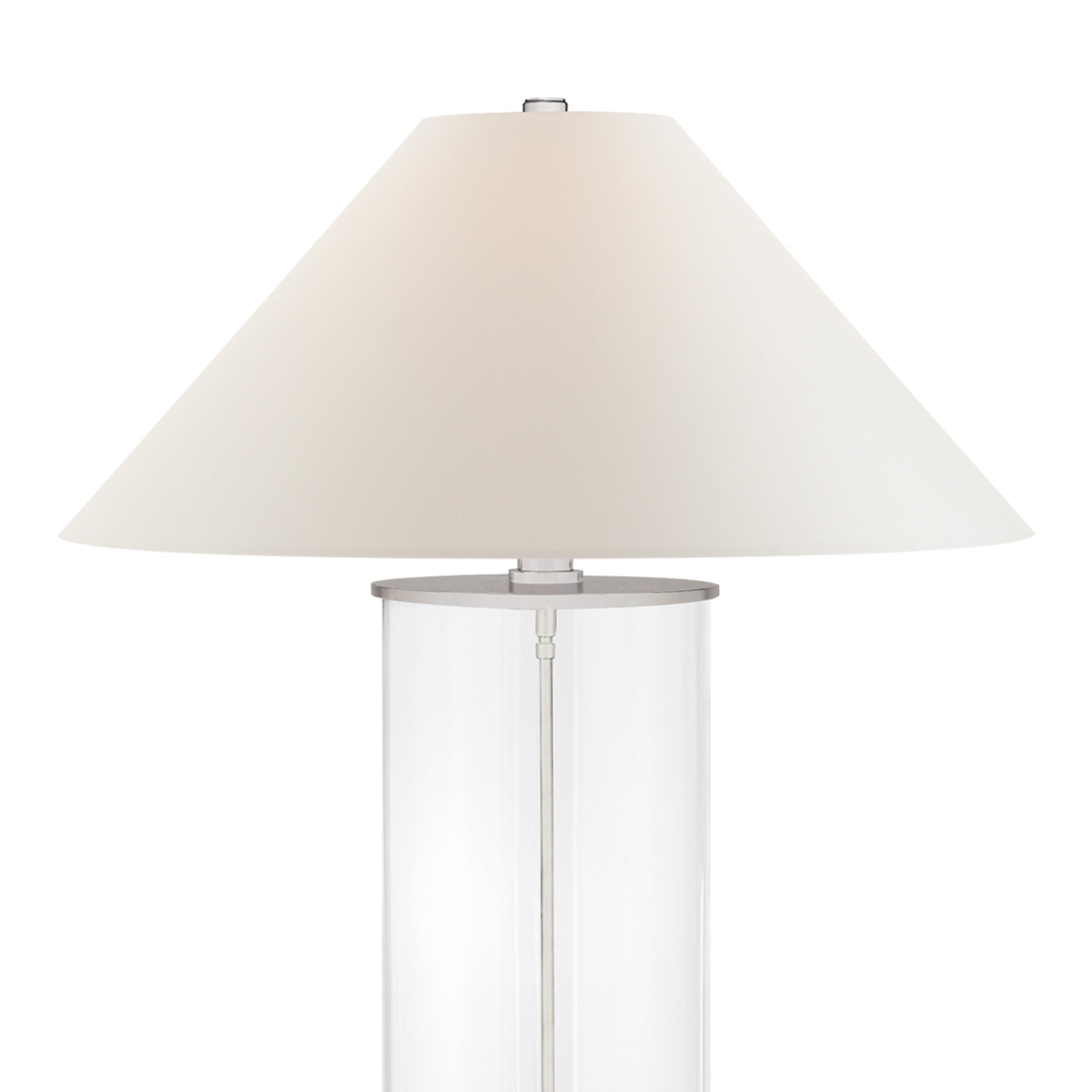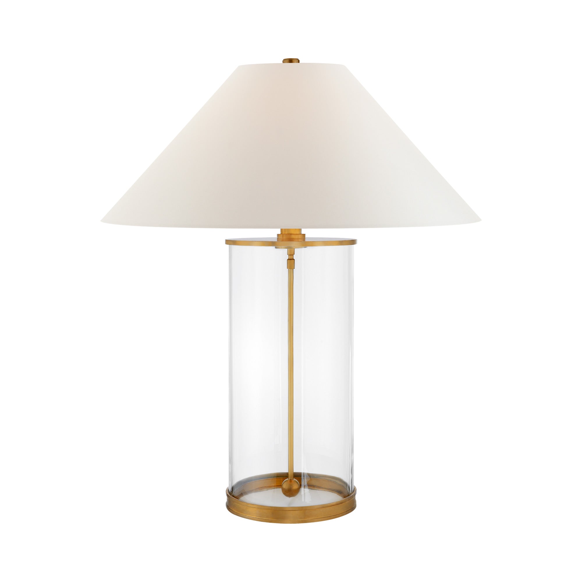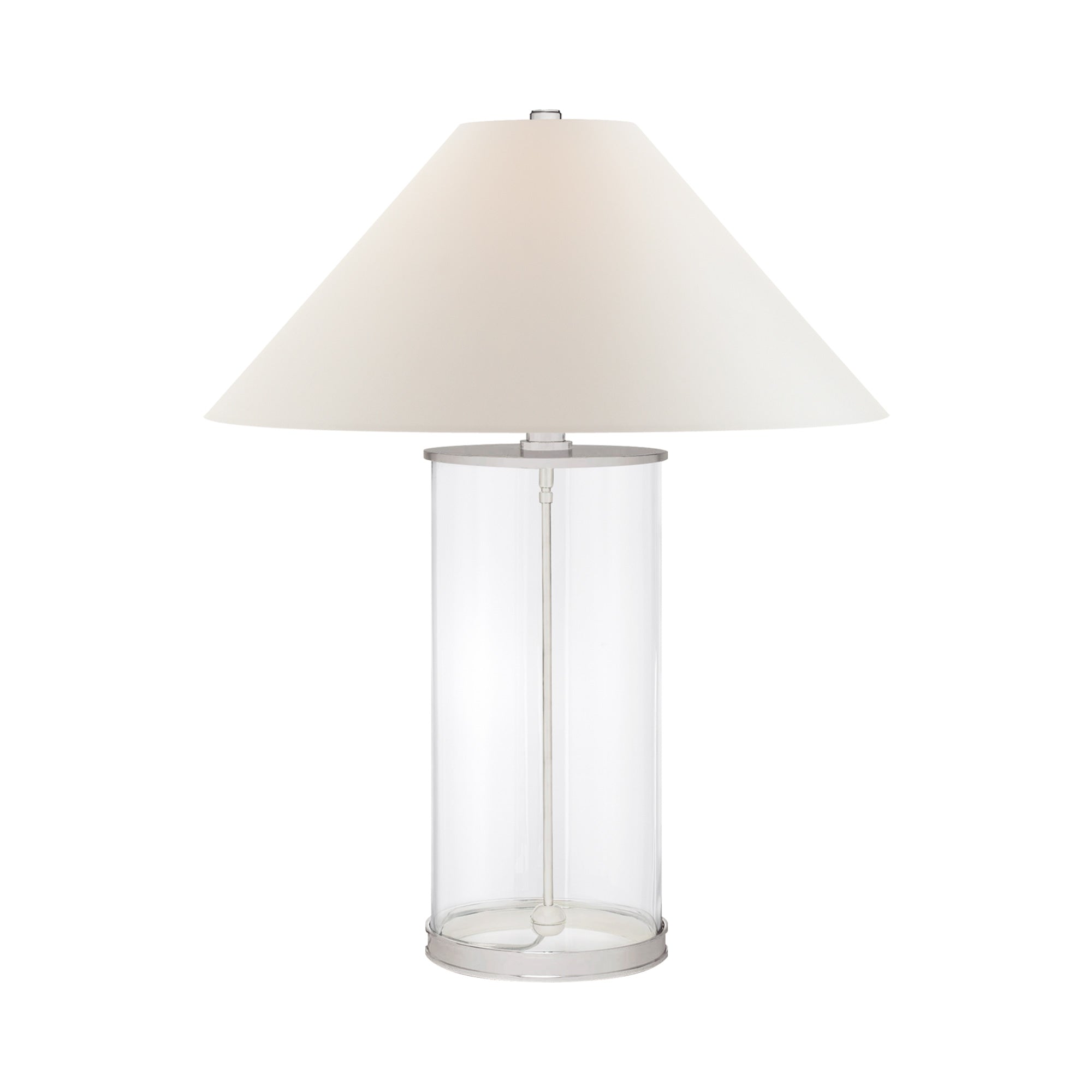 The Modern Table Lamp from Visual Comfort Signature embraces a classic lantern design with notable updates, adding a beautifully versatile and decorative element to any contemporary space. The marriage of glass and metal plays out in a tasteful way, with metal framing making an appearance as an outlining influence. A cool Eastern style shade offers perfect proportions.