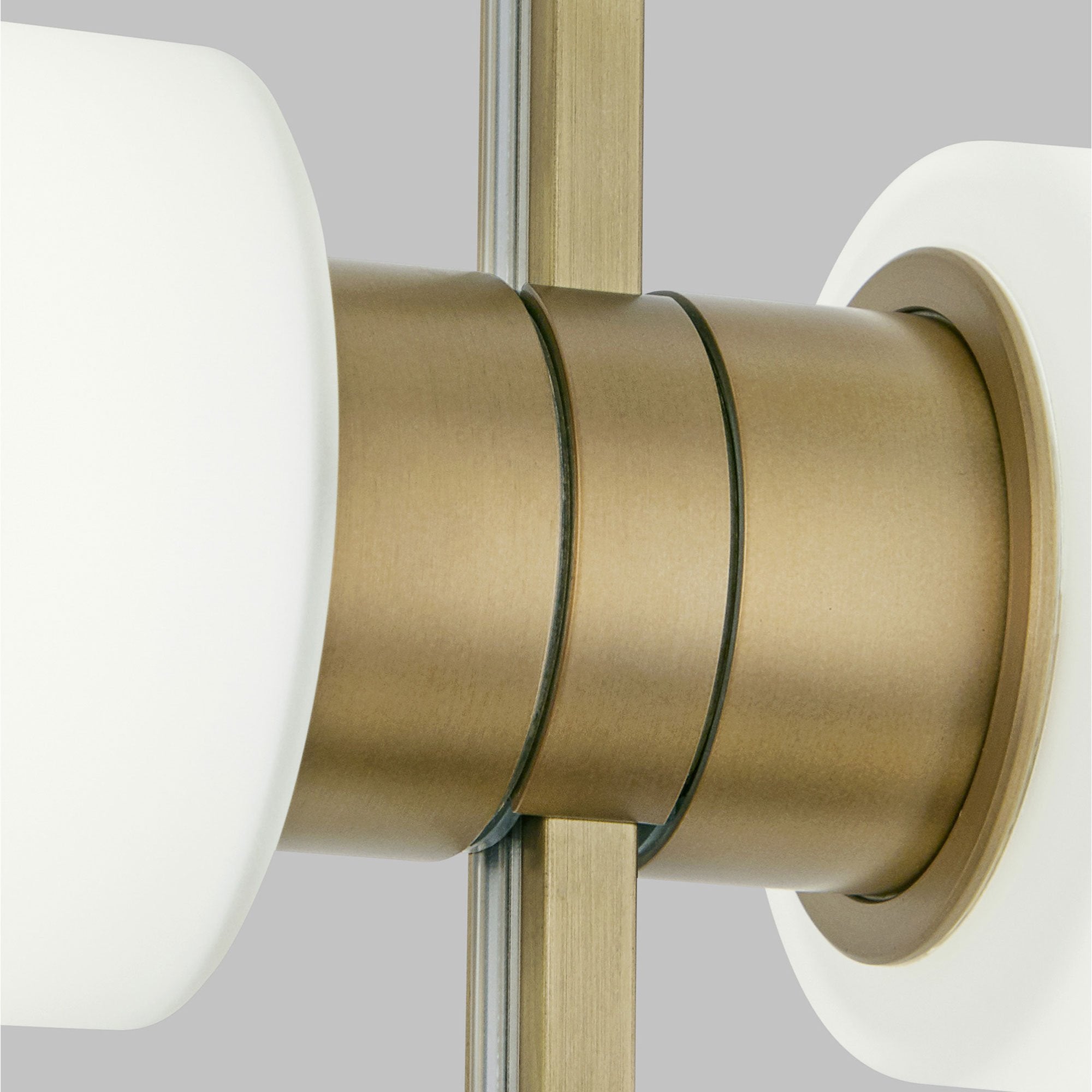 The Aged Brass ModernRail LED Wall Light by Sean Lavin for Visual Comfort Modern showcases the sophistication of ModernRail but with all of the simplicity of an elegant wall sconce. This Aged Brass ModernRail LED Wall Light features optional frosted opal glass globes or cylinders that gracefully wrap around the center rail allowing light to illuminate generously into surrounding spaces. Scaling at 3" in length and 12" in diameter this gorgeous pendant is ideal for hallways, foyers and bedrooms. The integrated LED globes or cylinders are fully dimmable to create the desired ambiance in your unique space. With its classic Aged Brass finish and uniquely crafted design the ModernRail LED Wall Light is sure to add a touch of sophistication to any space.