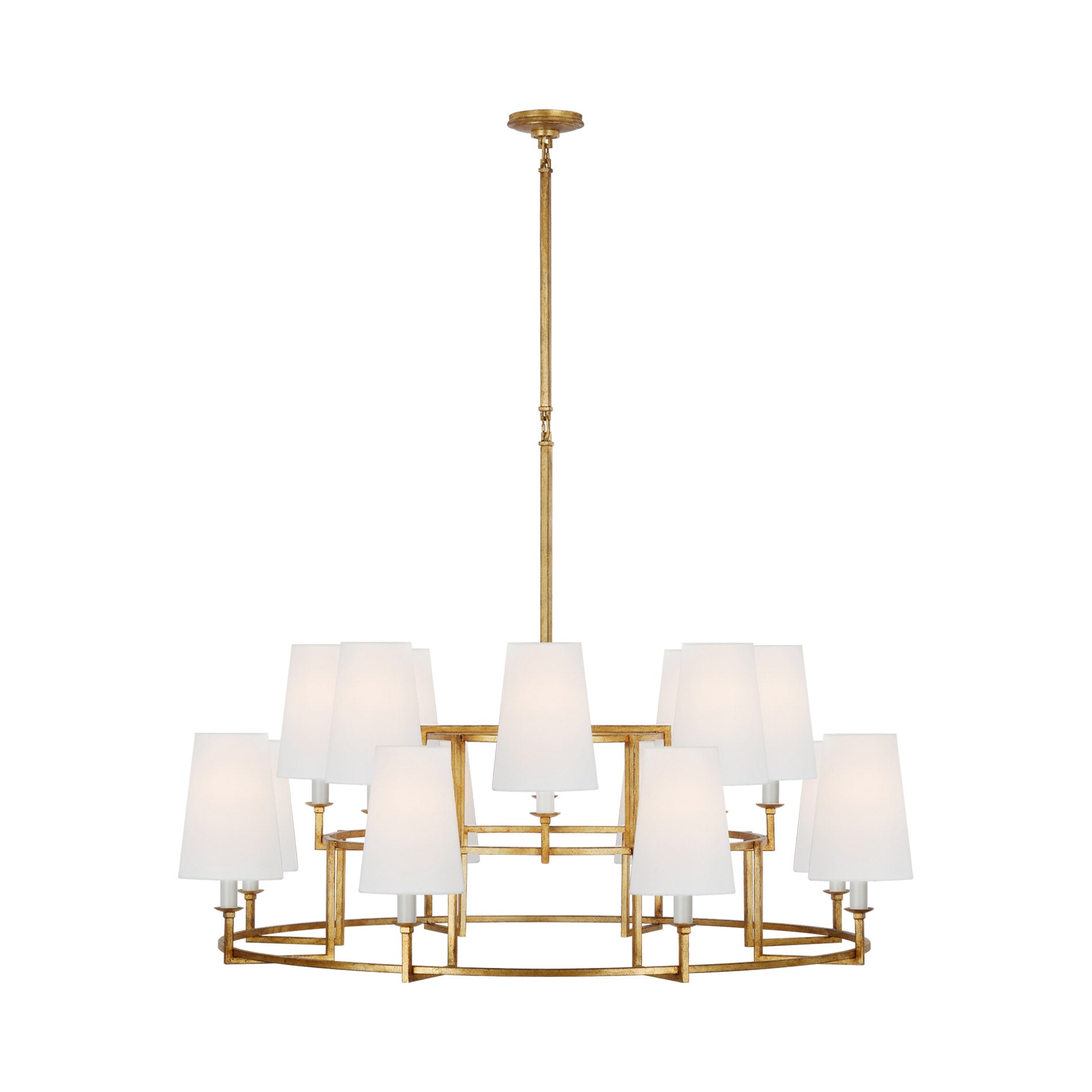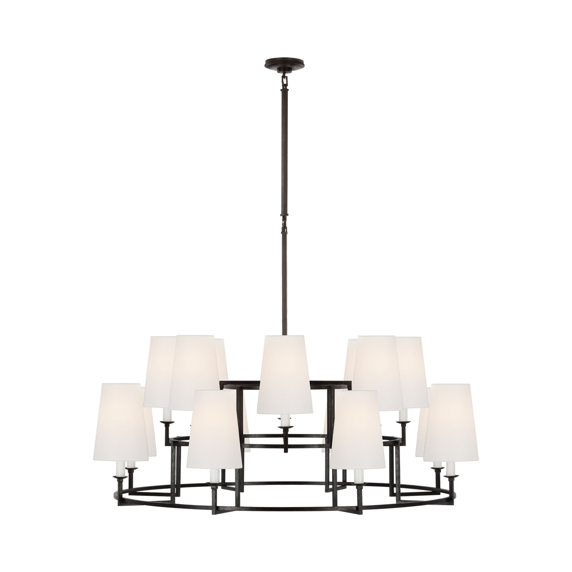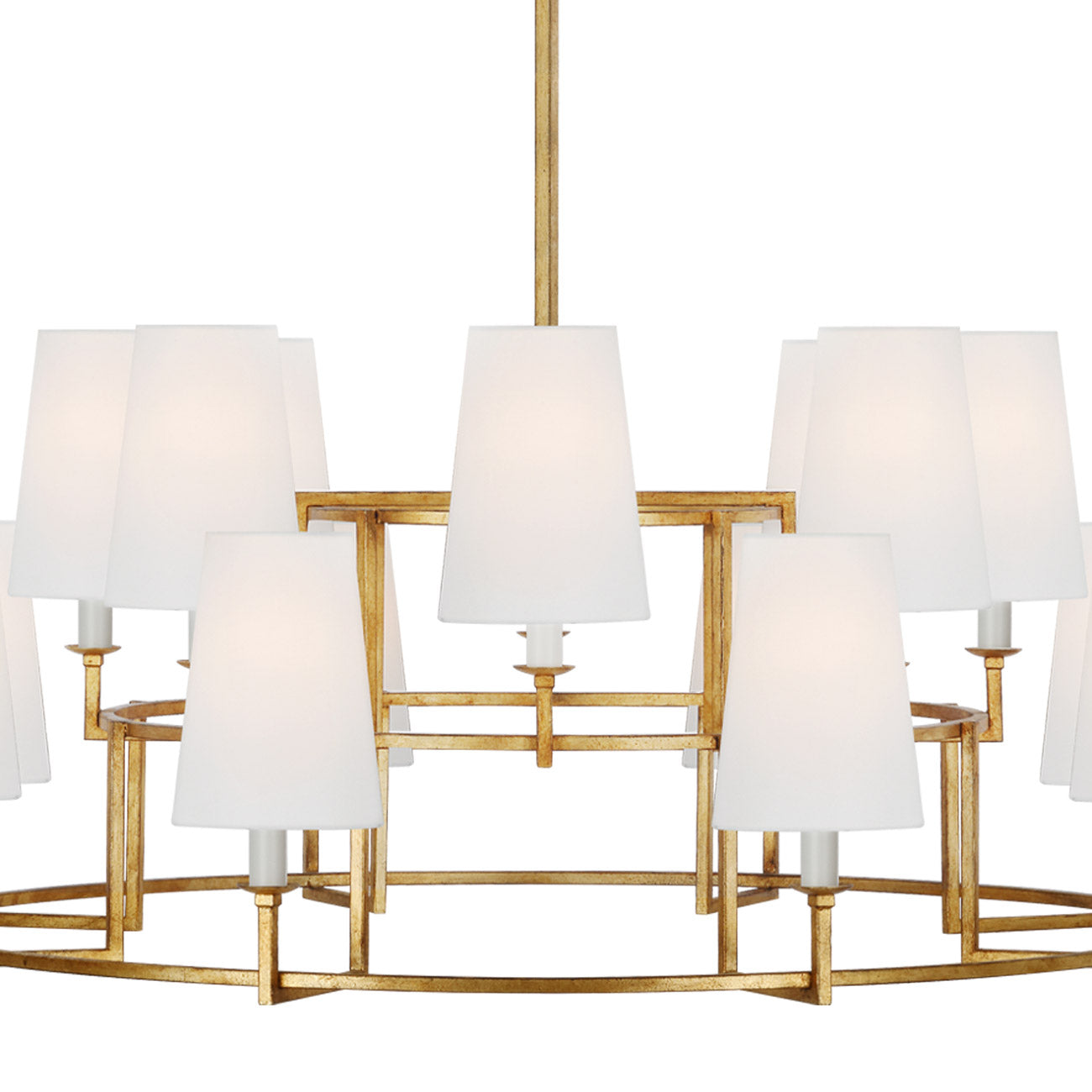 Carefully arranged lights encircle the simple yet sophisticated fixture that complements any space and sends glowing illumination to highlight a dining space or entryway. Choose the Modica Ring Chandelier from Visual Comfort Signature as a tasteful fixture blending linear and circular shaping with conventional lampshade diffusers and borrows from an industrial motif to bring casual flavor to a customized space.