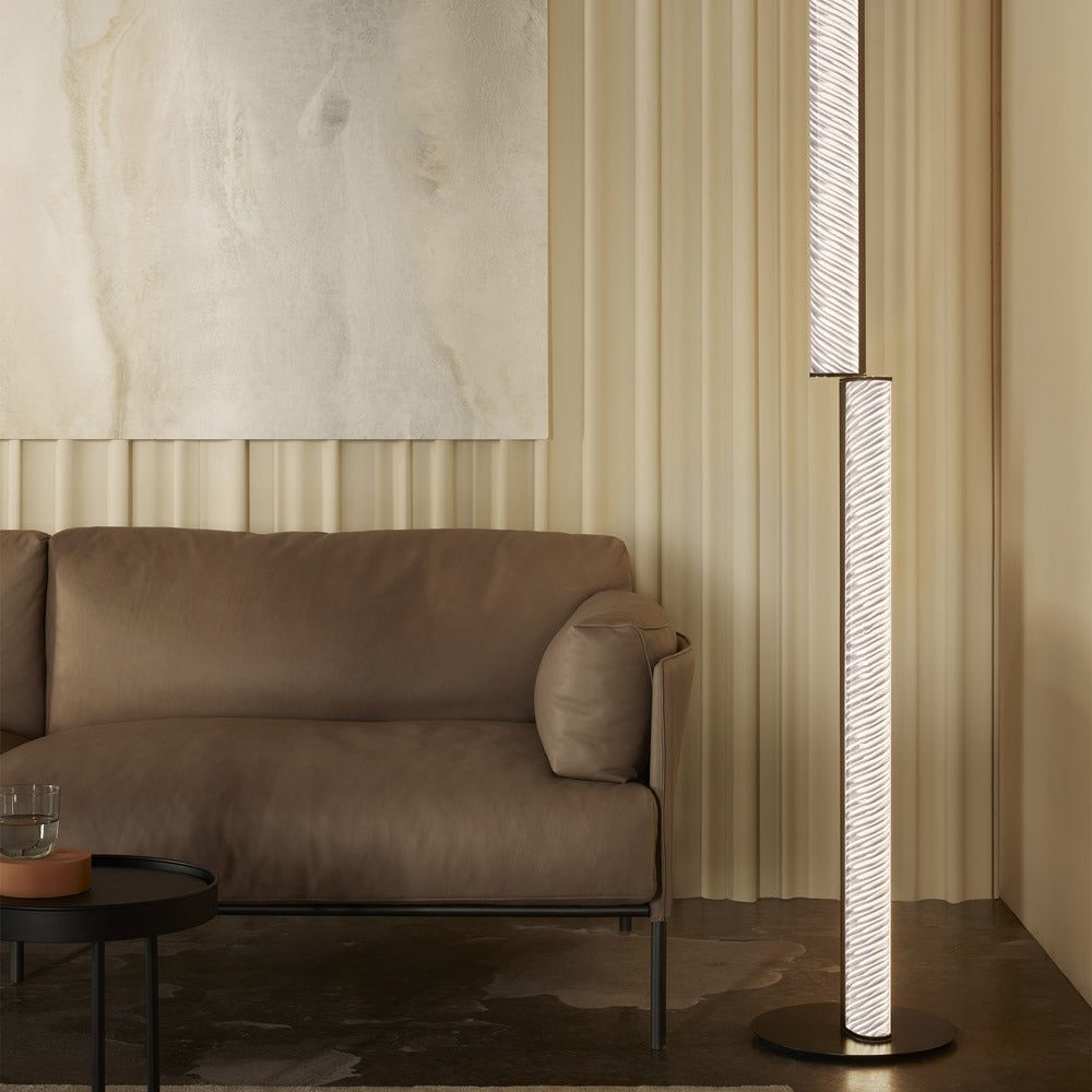 Gaining textural flavor through plisse-like crinkles in orderly columns, the Modula LED Floor Lamp from Slamp begins with a minimalist design and wins skeptics over through a slender cylinder silhouette. Metal accents call out key spatial settings in an energy-efficient lamp bringing edgy style to a modern living room or bedroom.