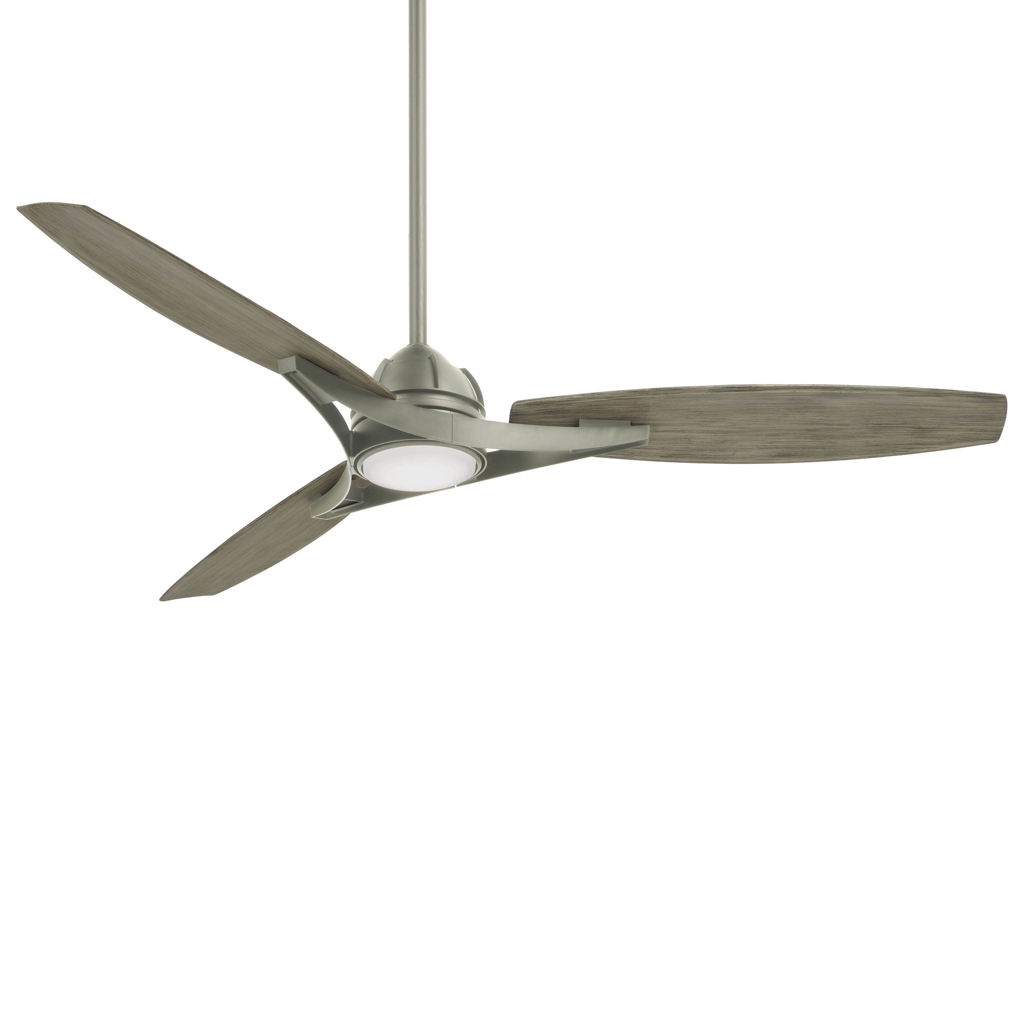 Personality follows the classic design of the Molino Outdoor LED Ceiling Fan from Minka Aire and its aerodynamic vibe, mixing architecture and geometry with a hint of artisan style. This sophisticated three-blade fan offers a choice of finish combinations and a chic aesthetic with a low footprint and high expectations for exterior entertaining areas.