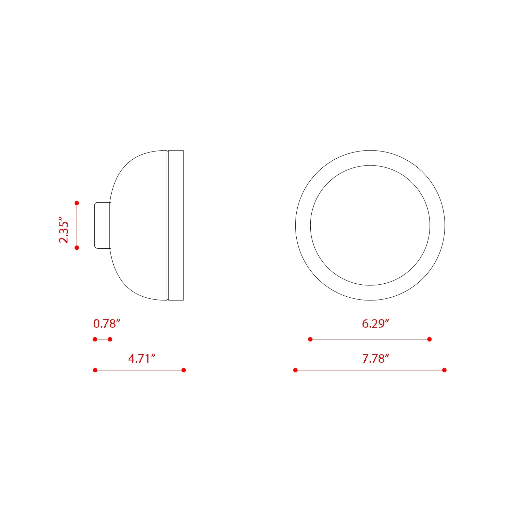 - Backplate: 2.35"D X 0.78"H