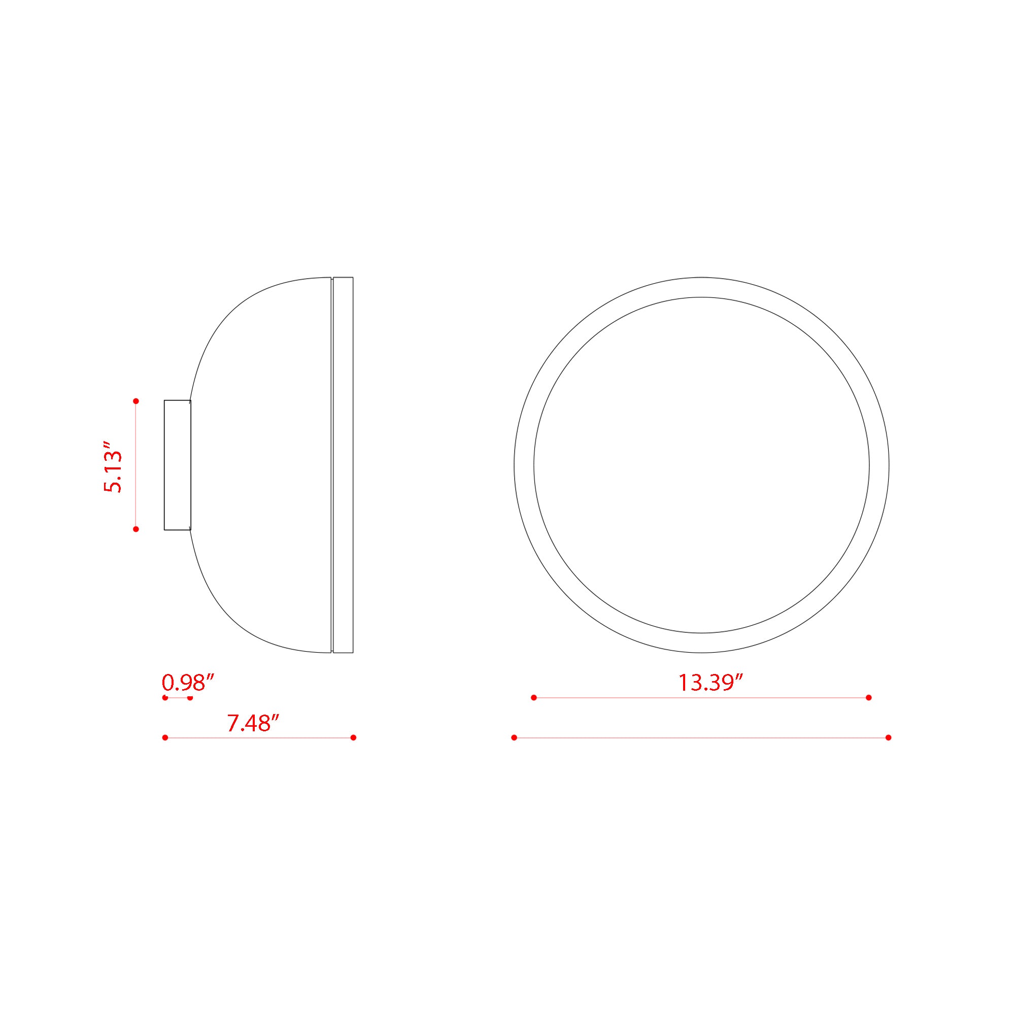 - Backplate: 5.13"D X 0.98"H