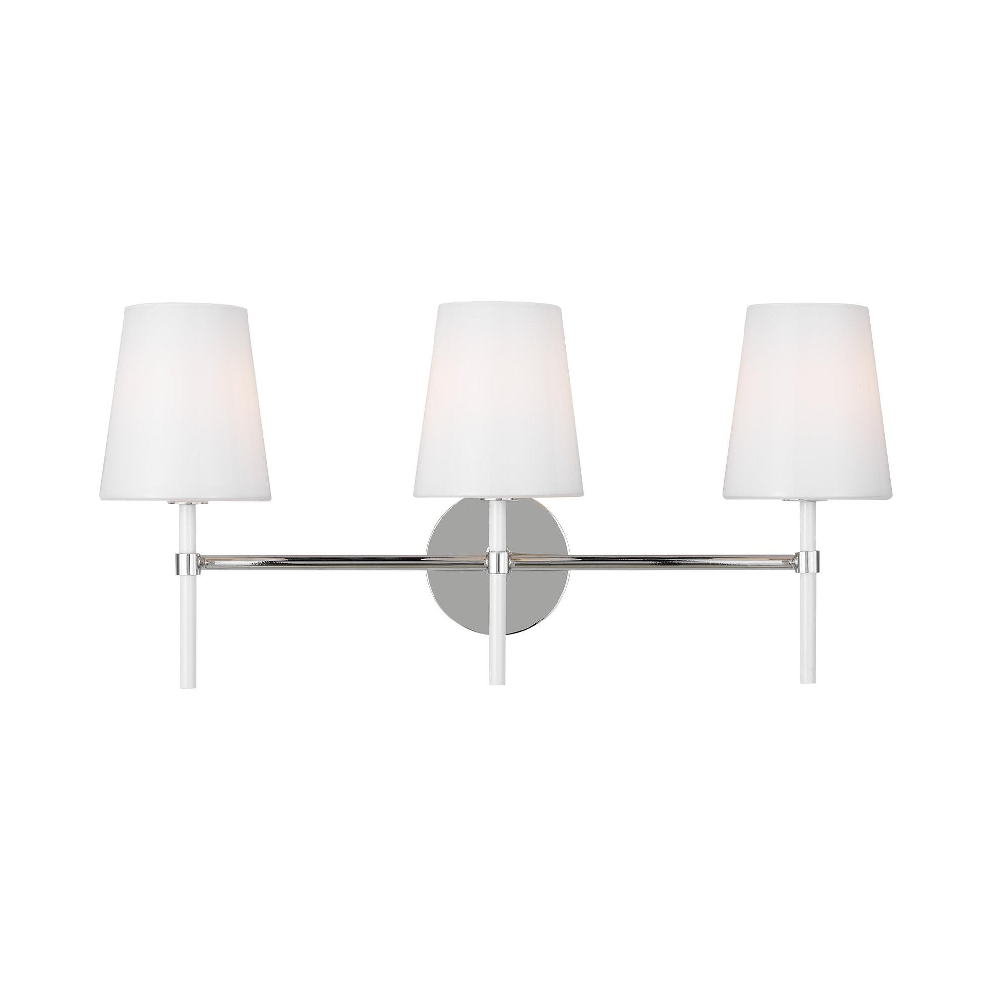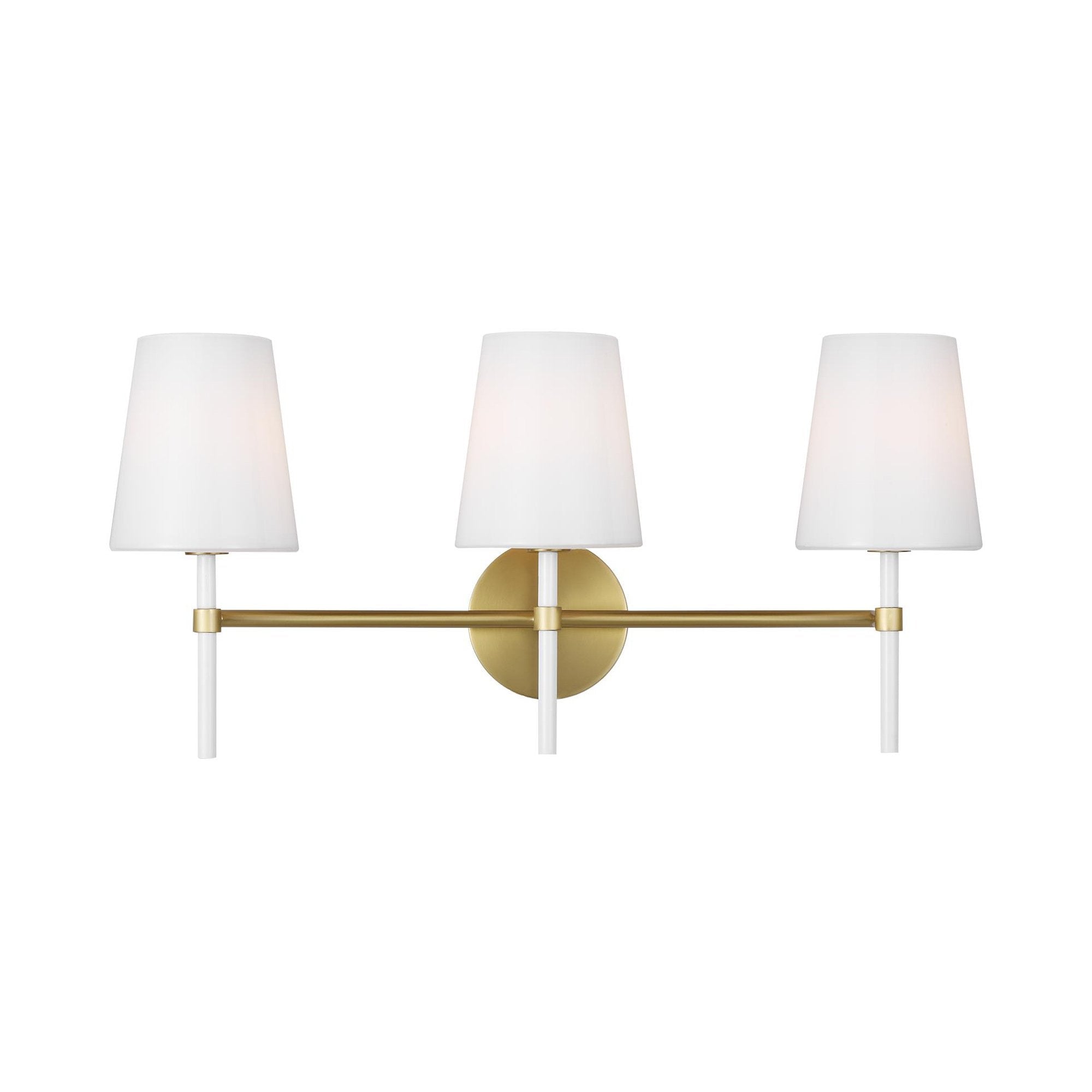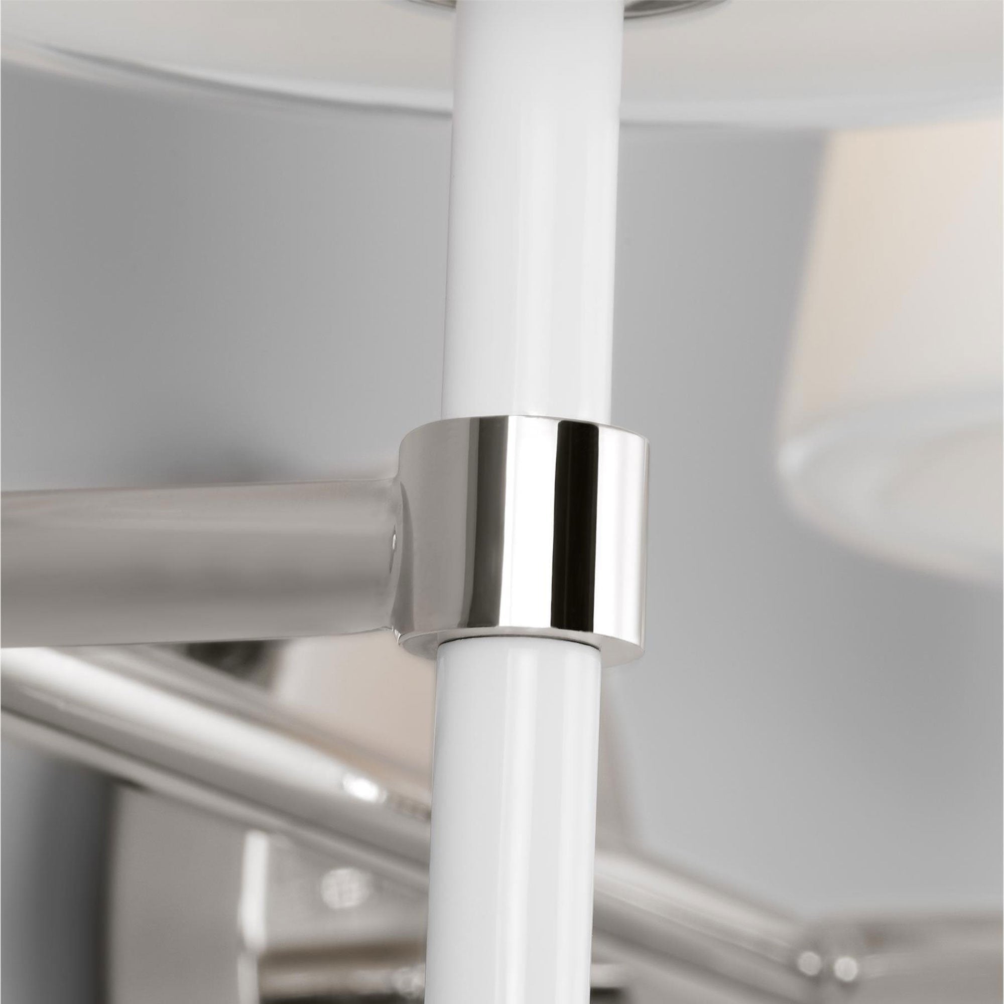 The Monroe Bath Vanity Light is inspired by graphic enameled metal jewelry and decorative accessories from Kate Spade with a nod to late 50s atomic era colorful designs. Monroe exhibits clean lighting profiles and dressed them up with painted sections and metal accents.