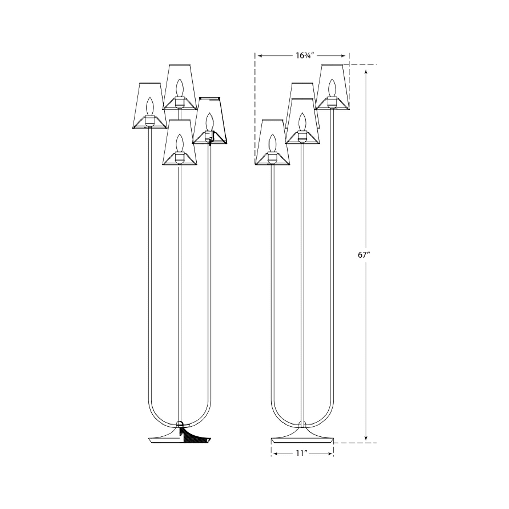Choose an extraordinary lamp as an optical boost to custom spaces searching for light sourcing with design creds. A slender silhouette shapes alluring charm when the Montreuil Floor Lamp from Visual Comfort Signature makes itself at home in a living room, den, or master suite. Staggered heights positioning conventional lamp shades mount to U-shaped frames fashioned of sleek metal, assembling a floor lamp with an abundance of style.