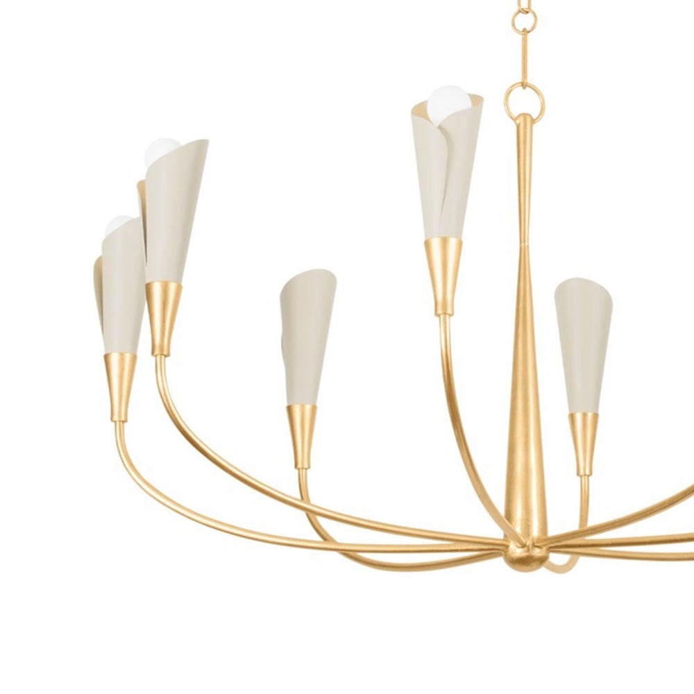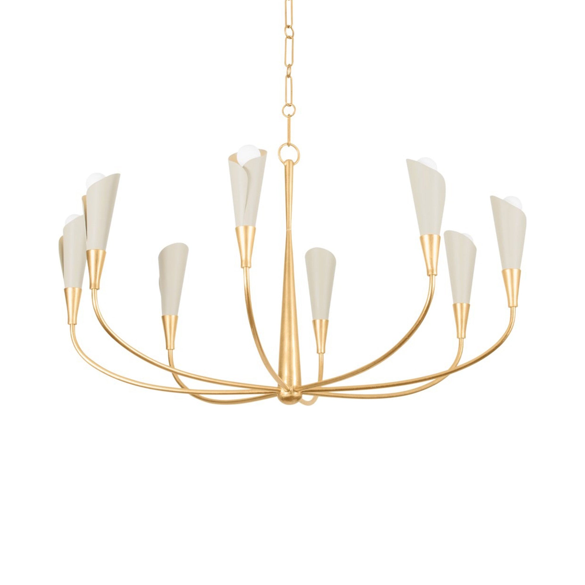 Graceful gallery influence lifts the artisan emphasis of a light fixture with the power to transform. Highlight a dining ensemble or foyer with the exquisite Montrose Chandelier from Hudson Valley Lighting, embracing the natural motif of calla lilies acting as delicate trumpet-shaped shades. A symmetrical arrangement of stylishly curved metal arms and an elongated teardrop center works with classic chain link suspension to deliver a well-rounded design scheme.