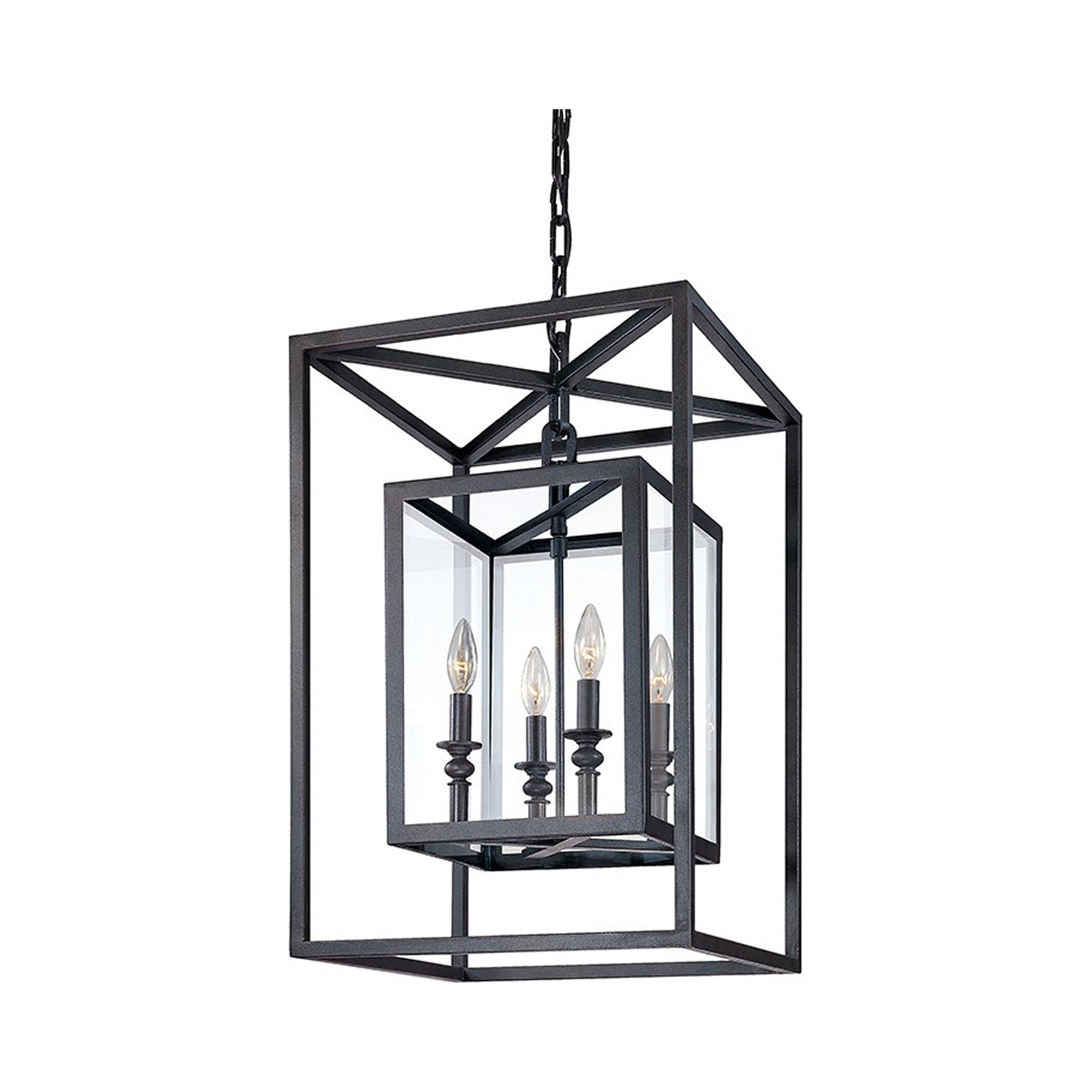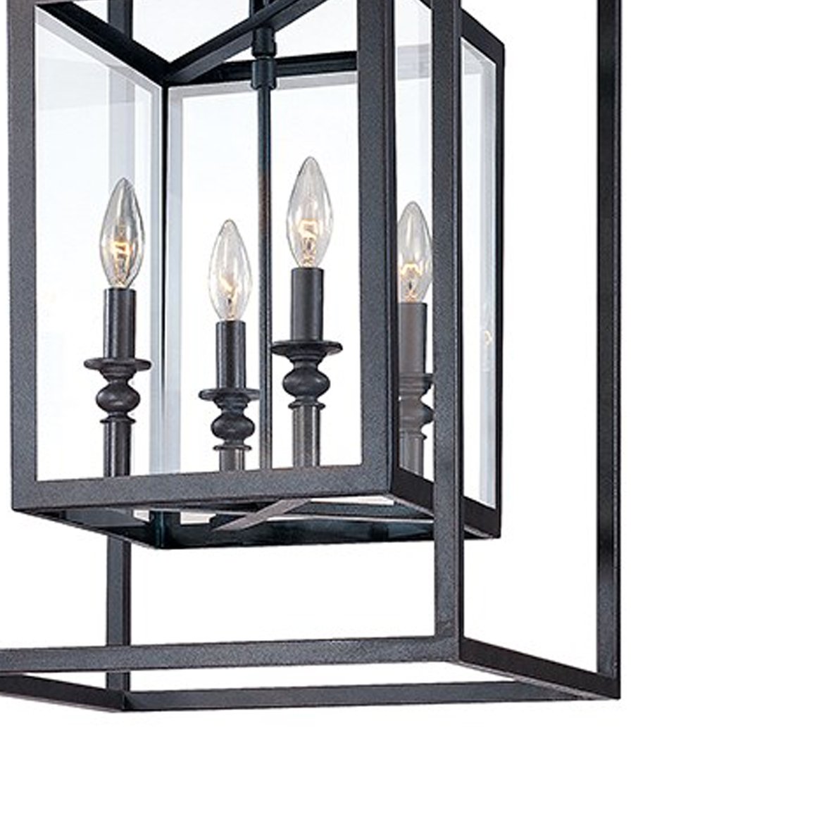 Glam takes on linear aesthetics to form the Morgan Chandelier from Troy Lighting, a tasteful modern fixture featuring nestled open box frames crafted of metal in various finishes and ornate tall candelabra bulb bases.