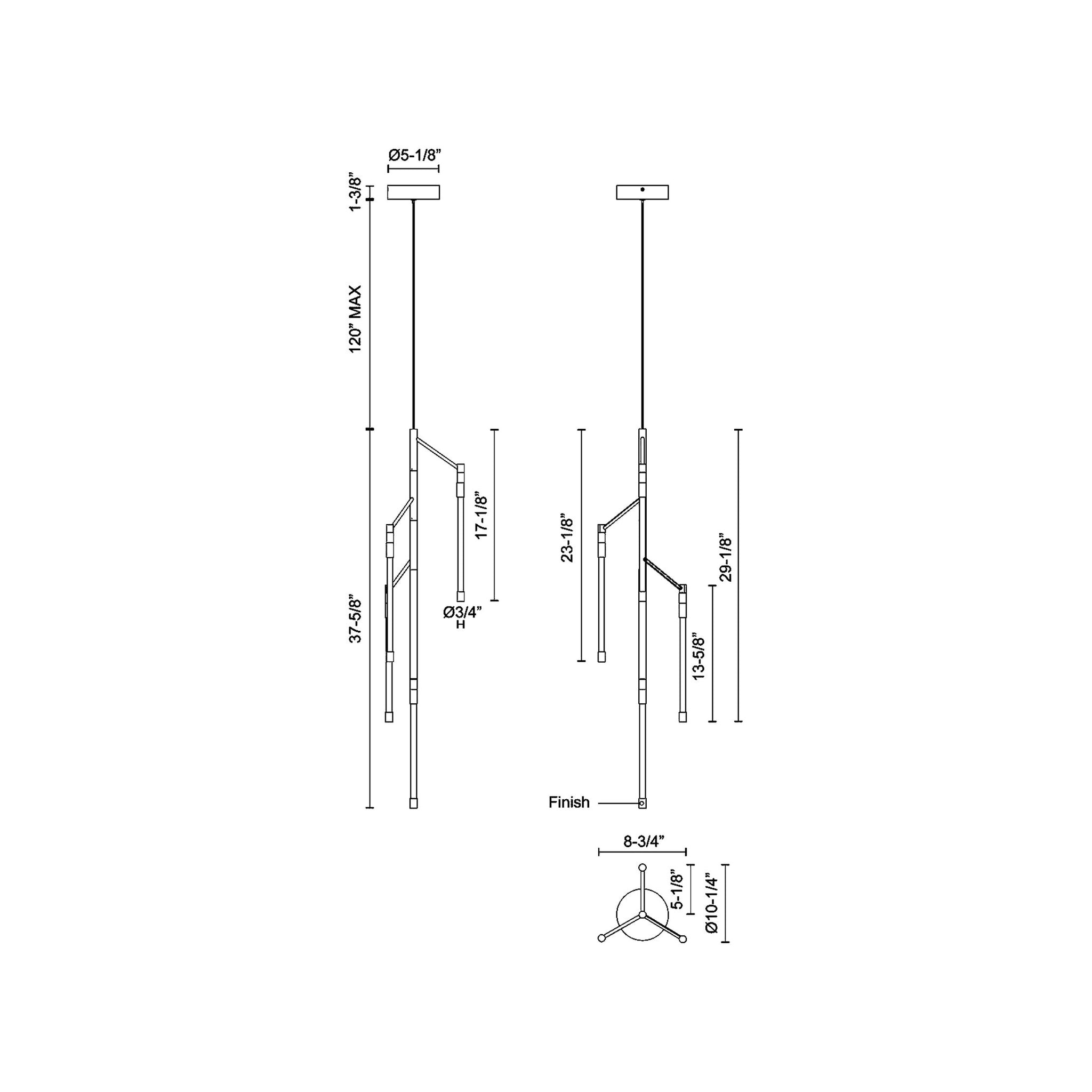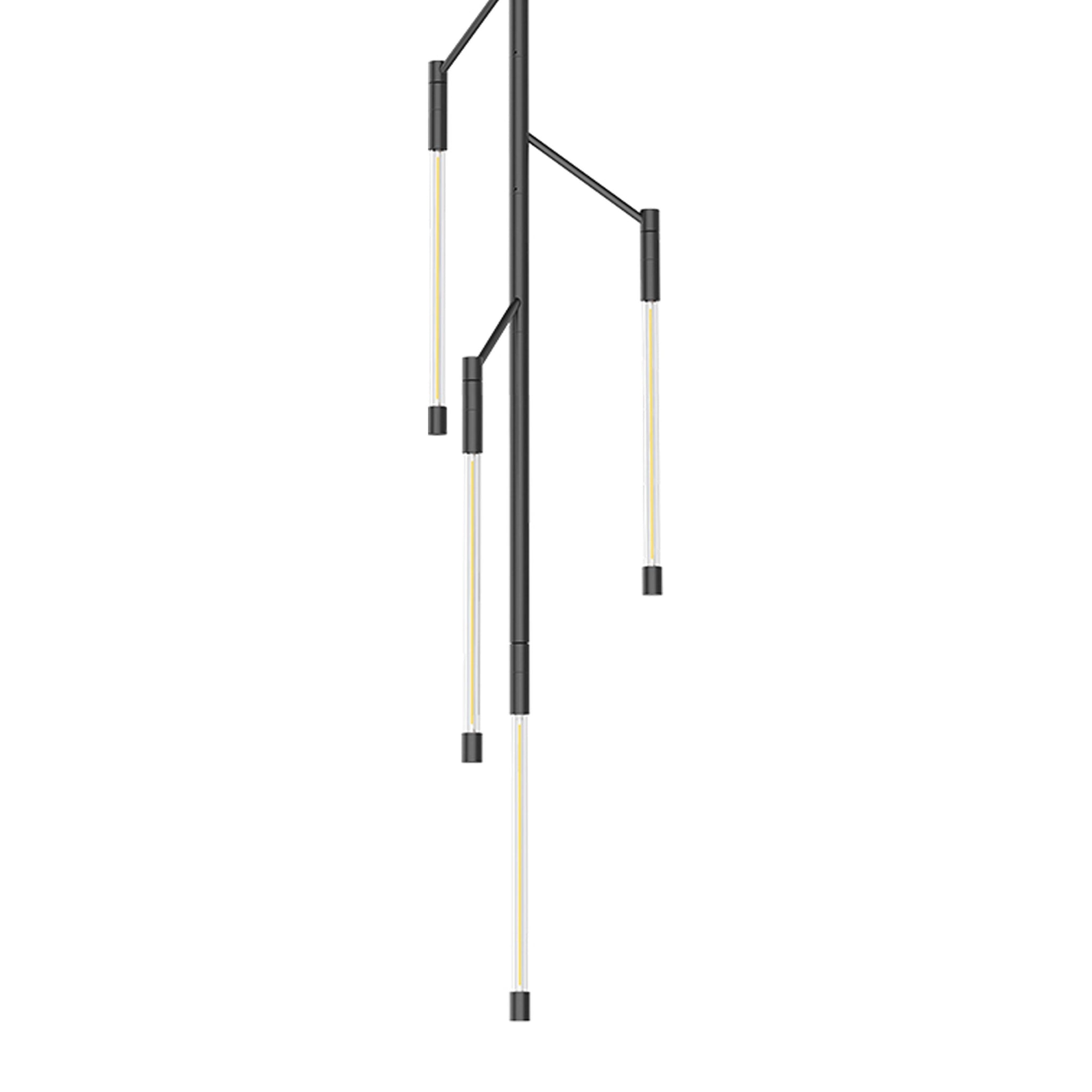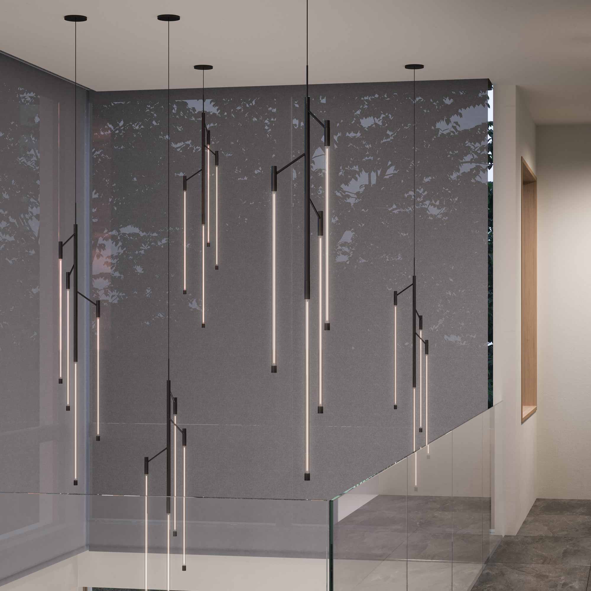 Geometry plays a big part in the elegant contemporary Motif LED Branch Pendant Light from Kuzco Lighting, delivering energy-efficient lighting with a subtle influence. This pendant features branches of aluminum frame pieces with refractive cylinders, creating mood lighting for upscale and casual living spaces.