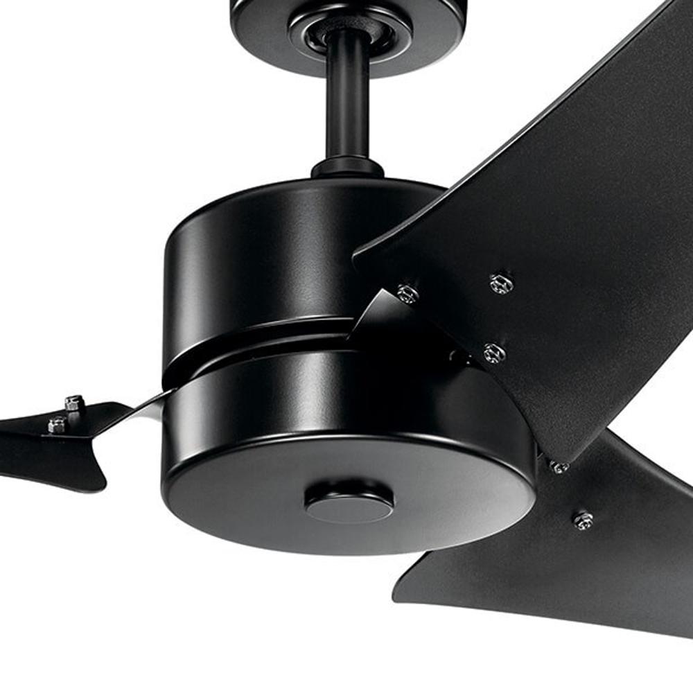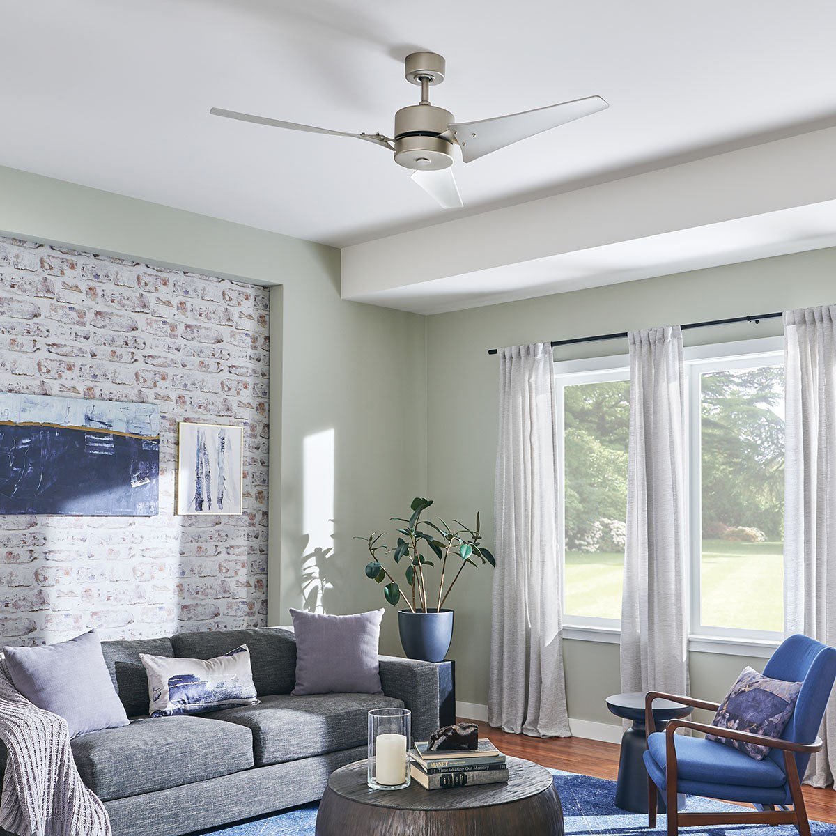 This Brushed Nickel and Satin Black 60 inch ceiling fan from the Motu™ collection encompass both contemporary and industrial looks. A 4 speed slide wall control provides flexibility in airflow, which when set at the highest speed, moves 11,891 cubic feet per minute of air.