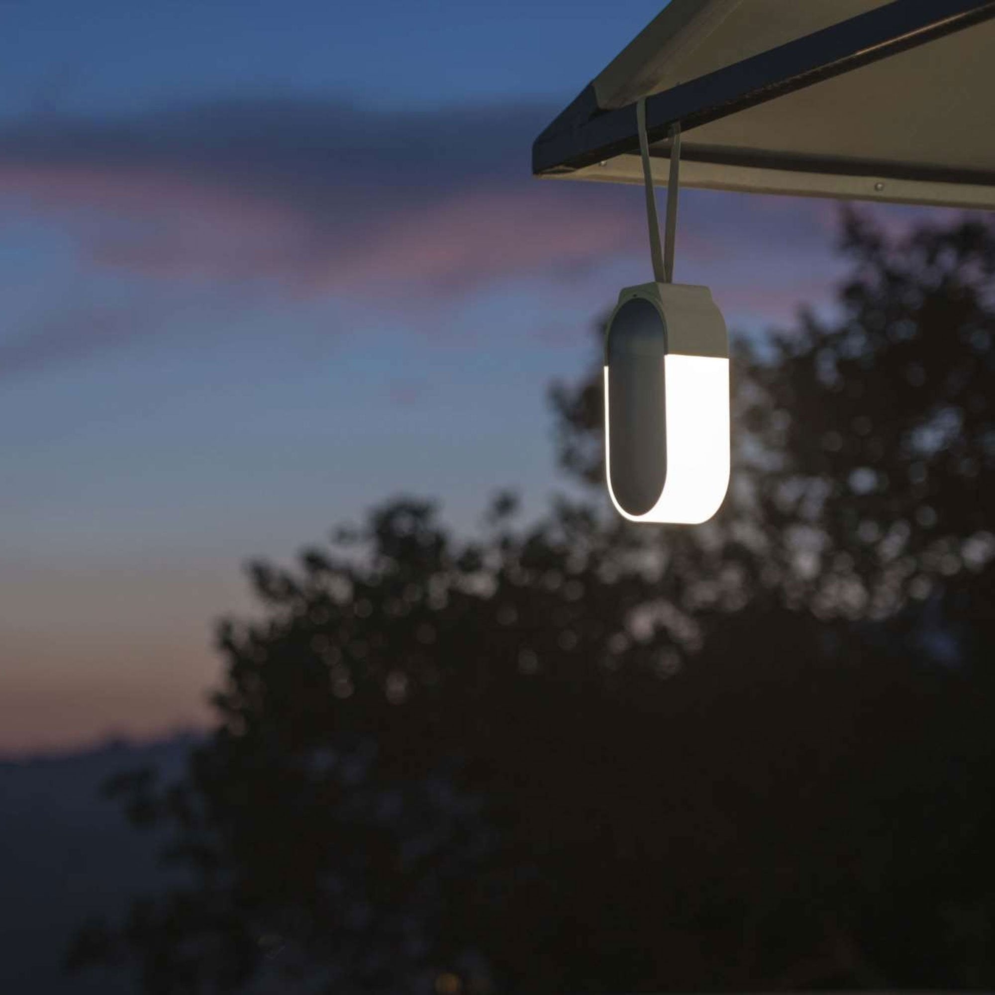 - Attach the leather strap to hang the LED lantern from a tree, an umbrella, or anywhere you need outdoor light. It’s perfect for restaurants or backyard parties.