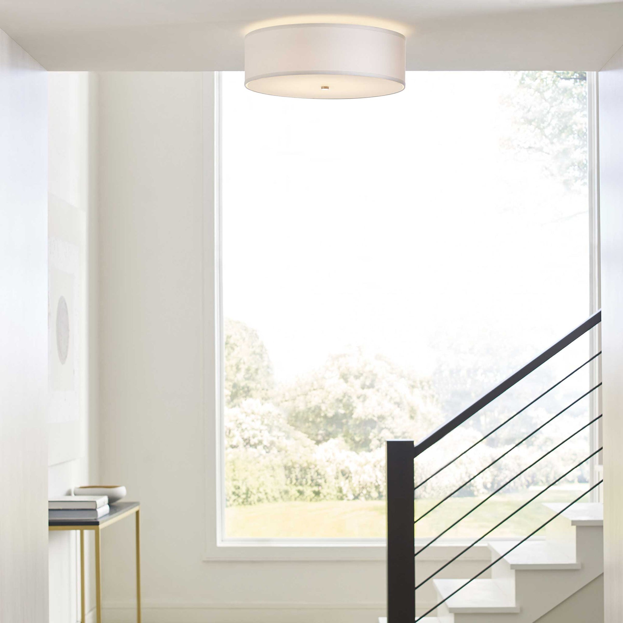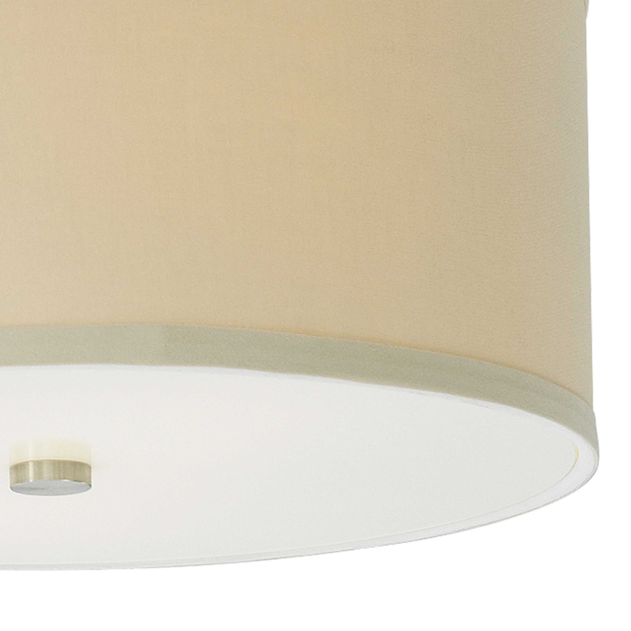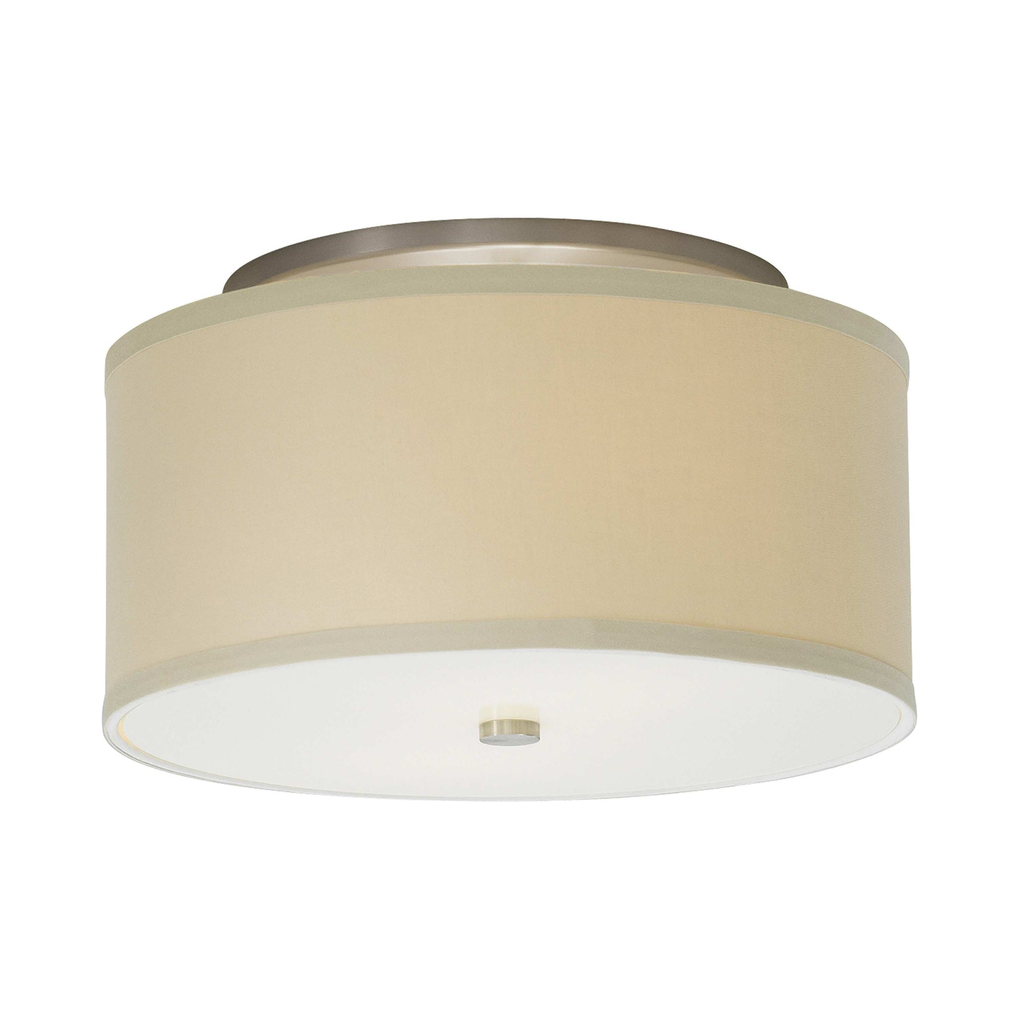 The Mulberry Flush Mount Ceiling Light by Visual Comfort Modern is classic and sophisticated with its short fabric drum shade and round canopy. A white glass diffuser conceals the lamping inside while providing a glare-free wash of light onto surfaces below. Also available in the Mulberry family is the Mulberry Pendant, simply search for Mulberry Ceiling to find its closest relatives. The Mulberry is available in two traditional colors, Desert Clay and White, and is finished with Satin Nickle hardware creating an overall clean, classic visual appeal. Mount this contemporary fixture in places such as hallways, bathrooms and closets. Available lamping options include energy efficient LED and no-lamp. All LED lamping options are fully dimmable to create the desired ambiance in your special space.