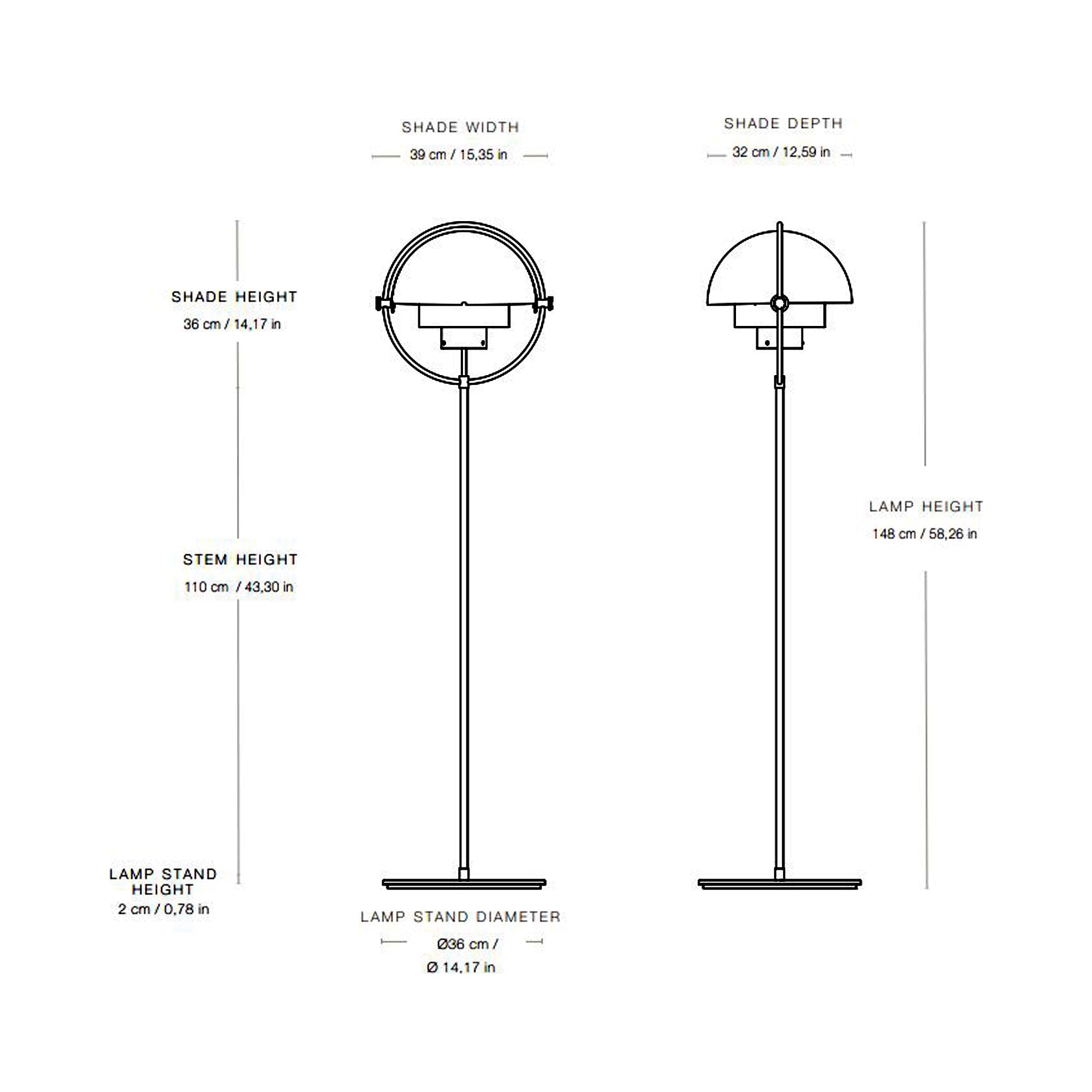 Exotic artisan style offers drama and intrigue in a simple package as the Multi-Lite Floor Lamp from Gubi delivers the goods in a transitional or modern space. Soft lighting glows from a multi-part rounded shade collage with rotating inner shades that change up directional illumination. Framed in a circular metal element and matching stem, this lamp offers the benefit of vintage gallery fare with a structured design that works in any space.