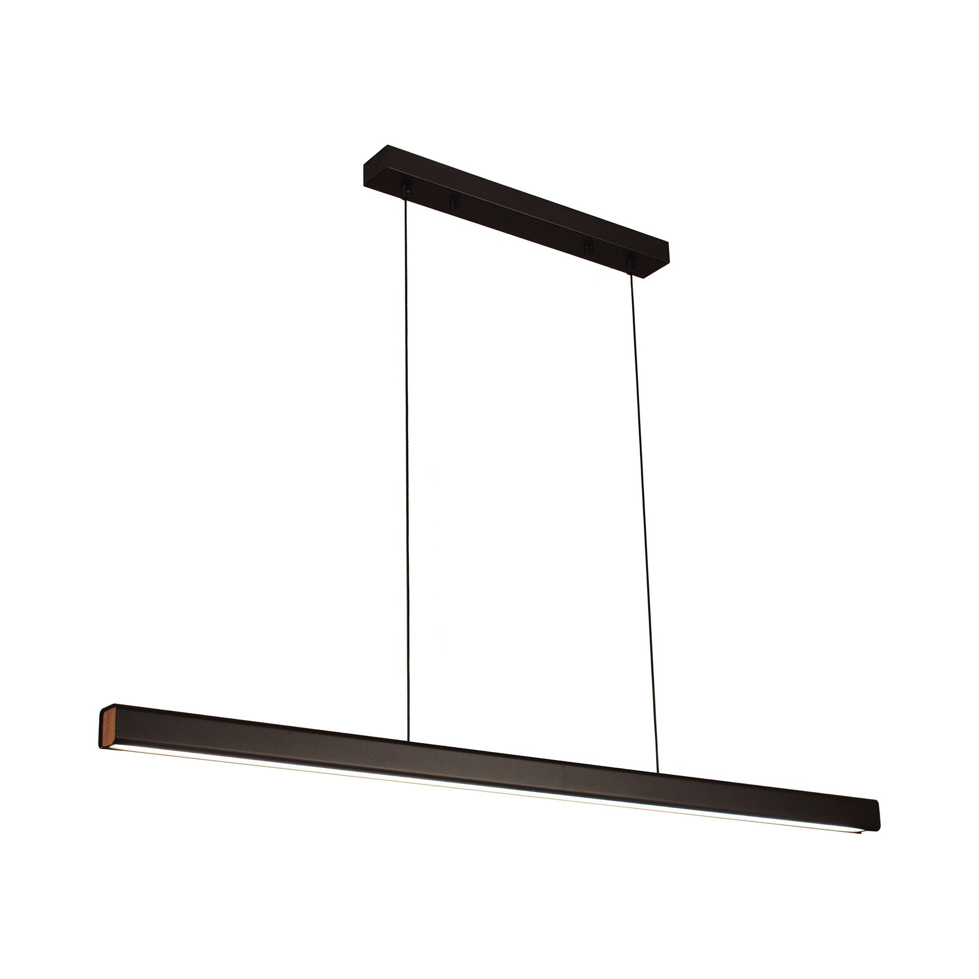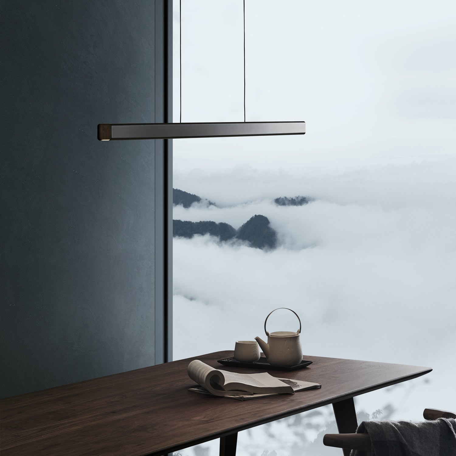 Accented with the natural look and feel of wood, the energy-efficient Mumu LED Pendant Light from Seed Design delivers a crisp linear silhouette with minimalism galore. Pendant ends crafted of romantic wood complete a slender bar shade that suspends with parallel cables, making a statement for the power of less versus more.