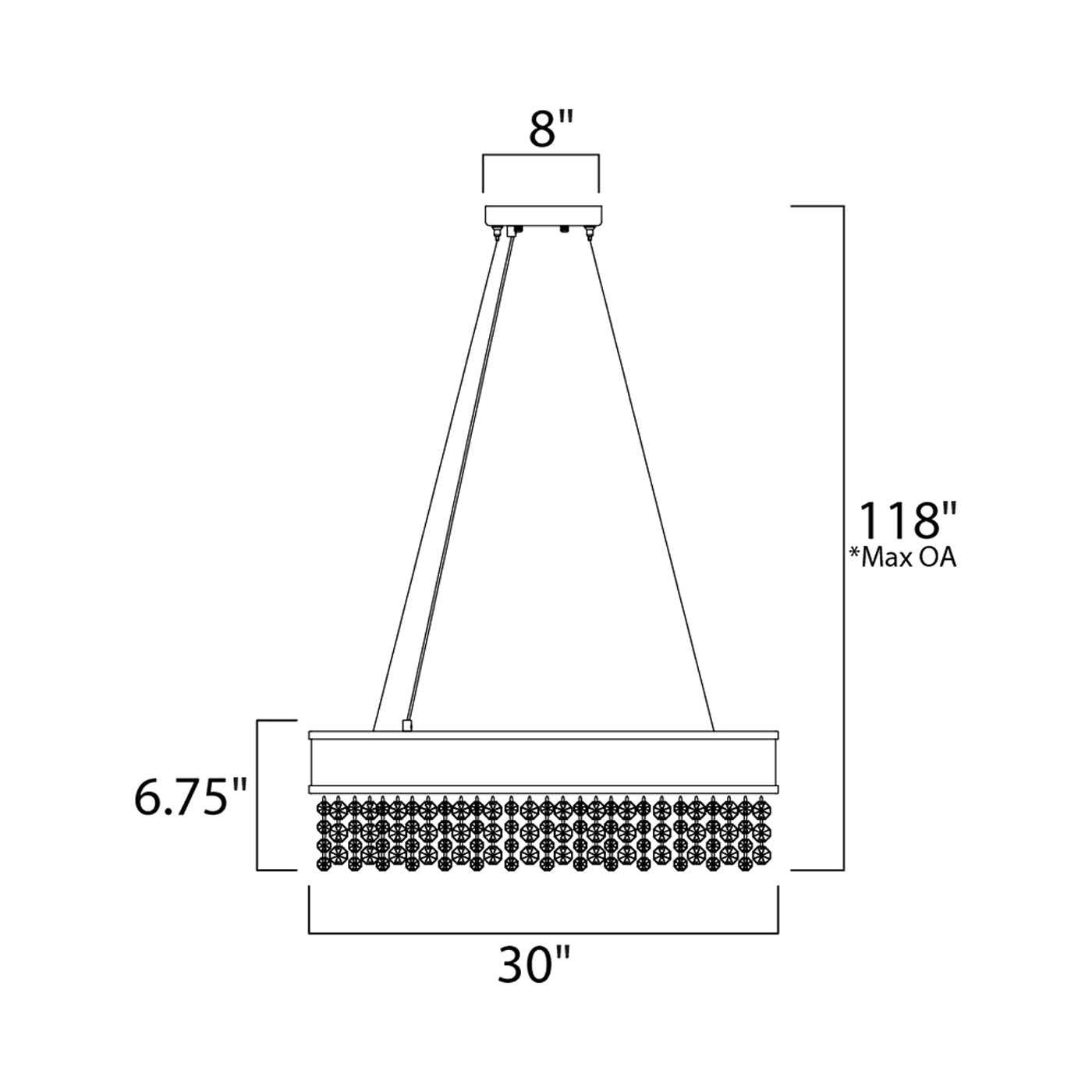 - 22-Light: 30"D X 6.75"H; 118" max height