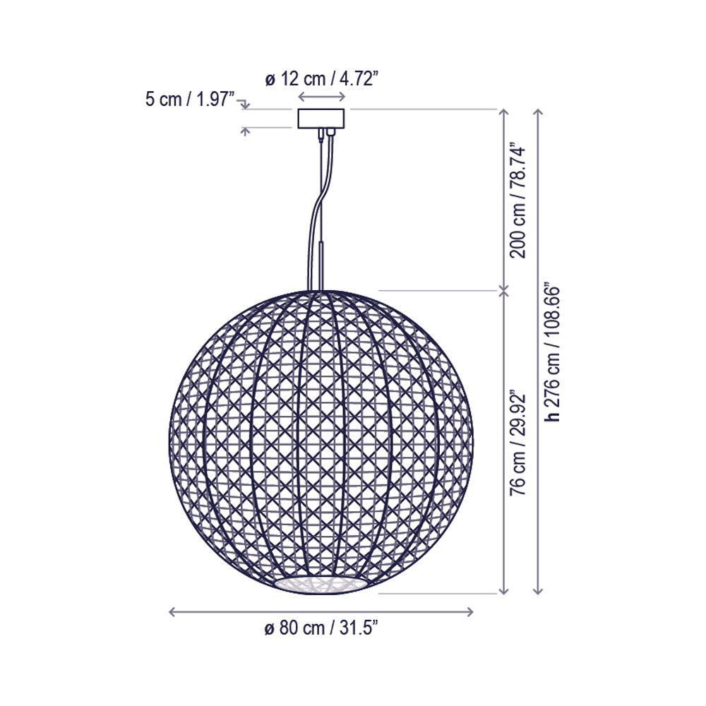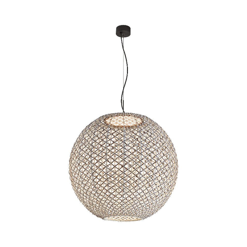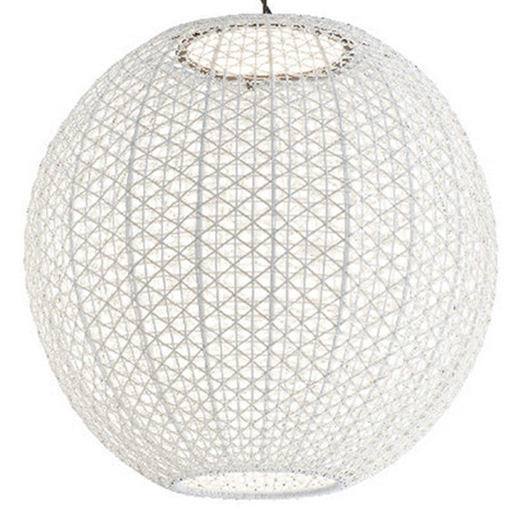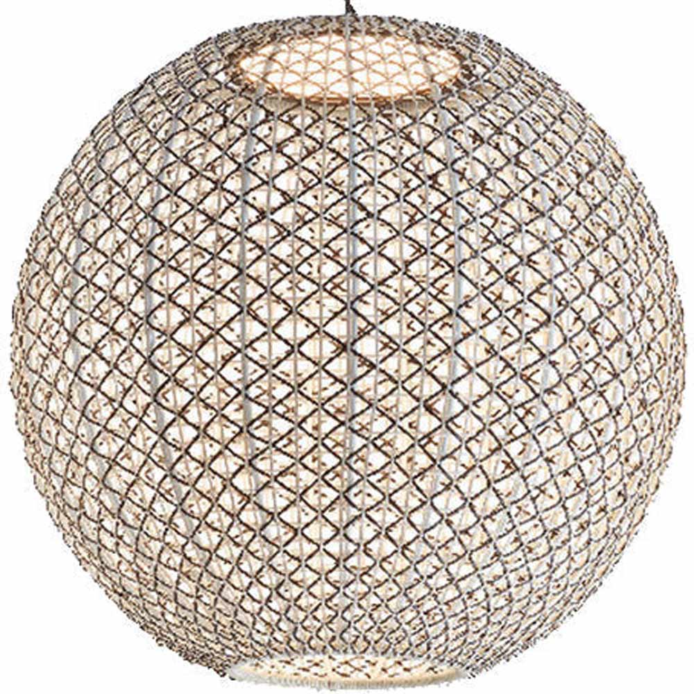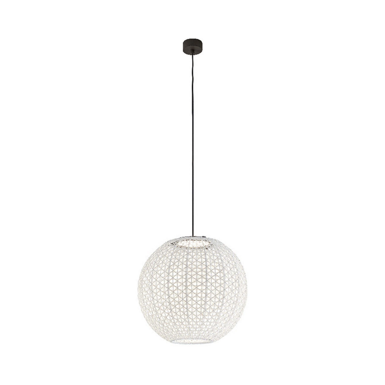 A lush summer garden inspires the ornate weave featured in the Nans Outdoor Sphere LED Pendant Light from Bover. A stylish way to bring texture and depth over a garden dining table or seating group, it delivers a wide conical shade paired with an elliptical polyethylene diffuser for soft, inviting illumination.