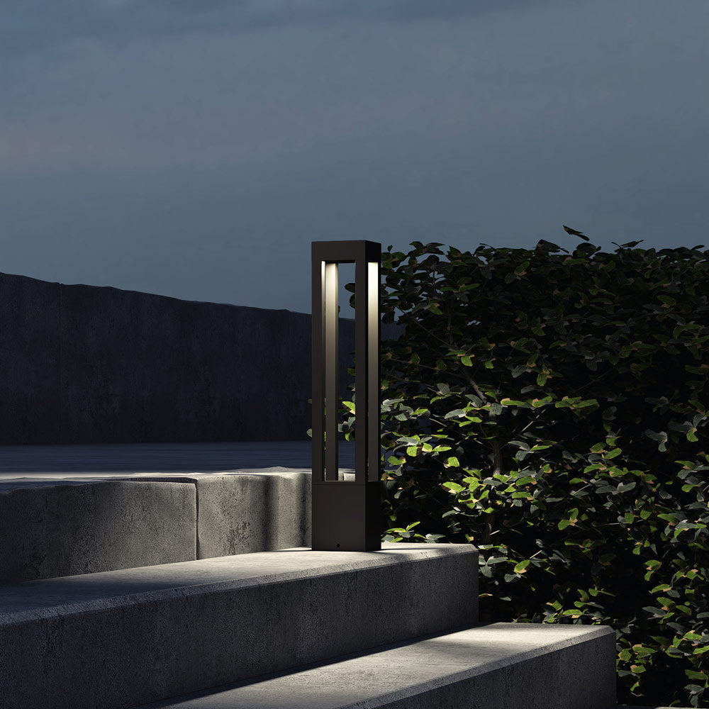 Hollowing at the centering creates a light, airy ambiance for the Napa Outdoor LED Bollard from Kuzco Lighting. Its tall silhouette is square, delivering a bold look and feel in landscaping and lighting paths and walkways.