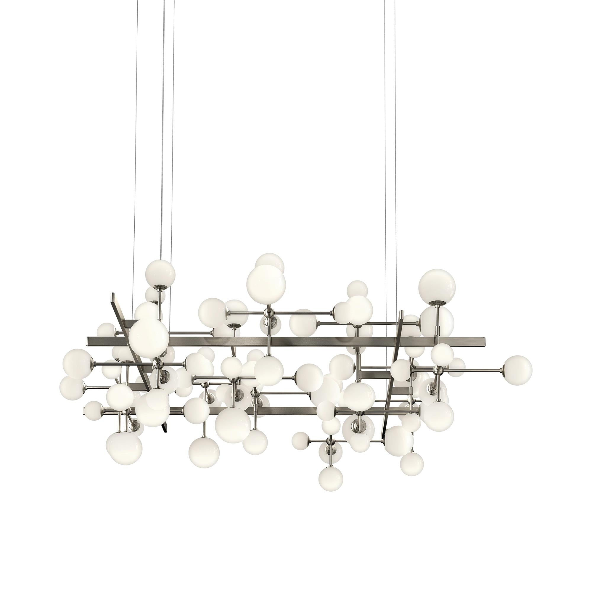 Recti-linear forms create a captivating interplay of light and structure for the Nebula™ LED Pendant Light from Sonneman Lighting. Orbs of white glass create vintage vibes, while design precision plays up the refined artistry of this stunning fixture. Its expansive scale makes it an instant focal point in any setting.