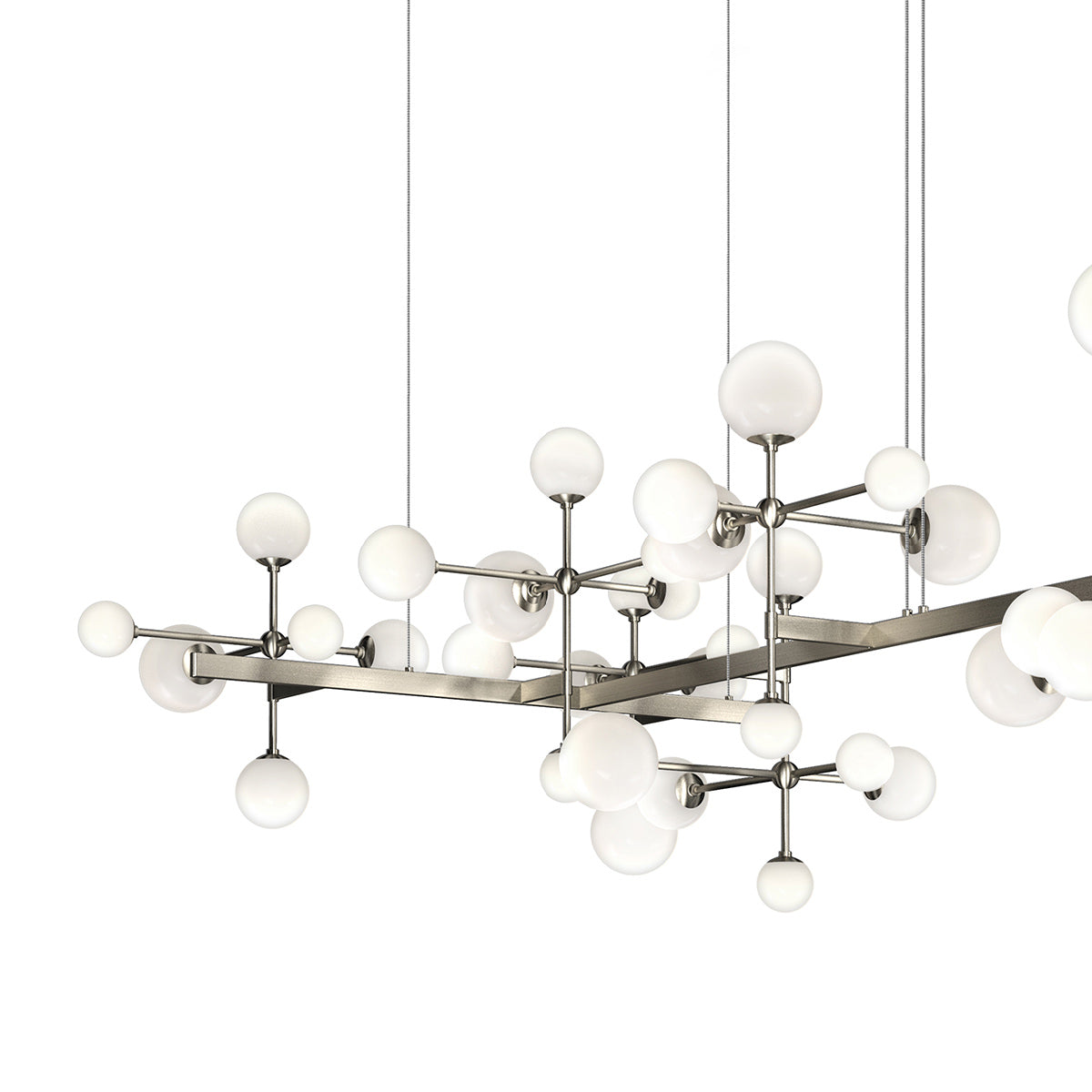 Clusters of glass orbs bring precision and refinement to the sculpted impression of the Nebula™ Zig Zag LED Pendant Light from Sonneman Lighting. It's a fresh, captivating combination of linear forms and round details, creating bold illumination and sculptural appeal in your home or professional space.
