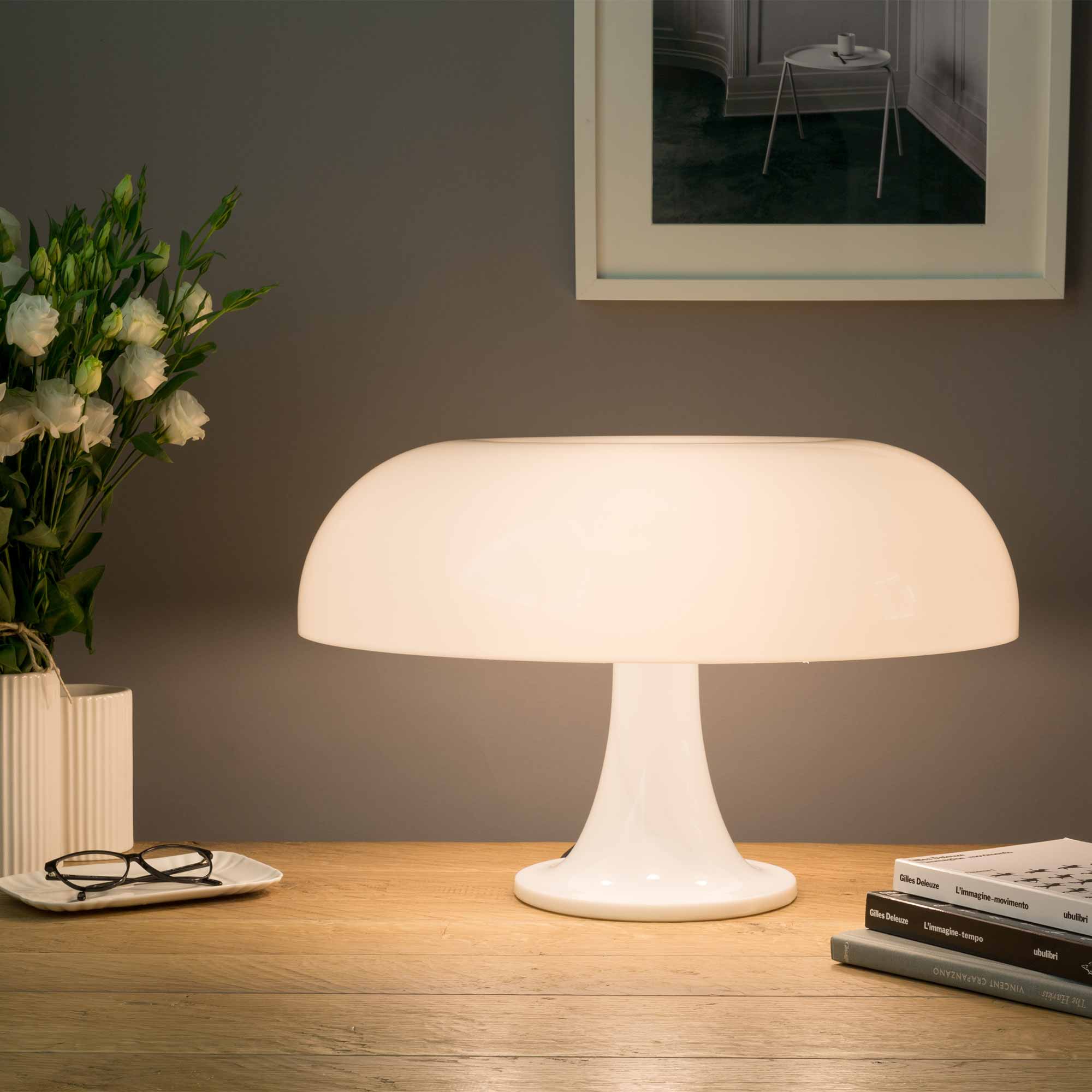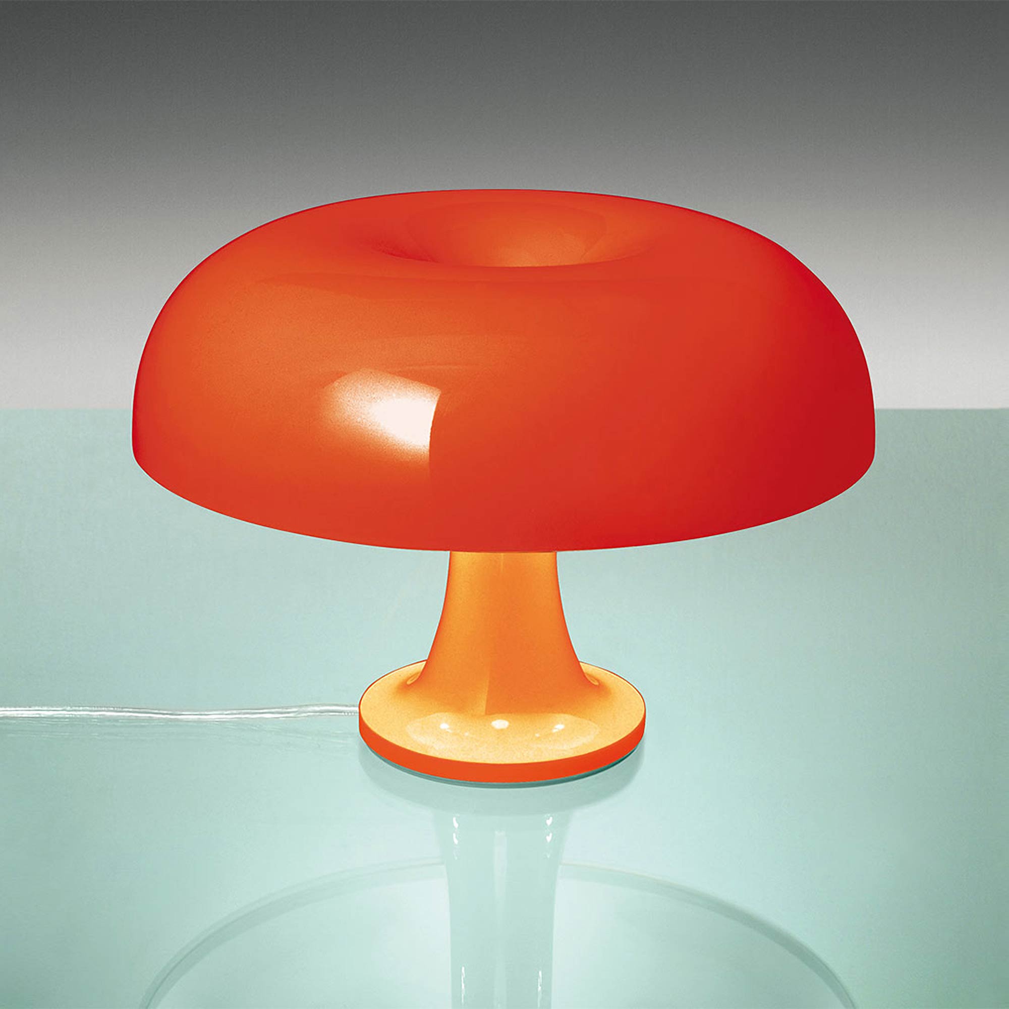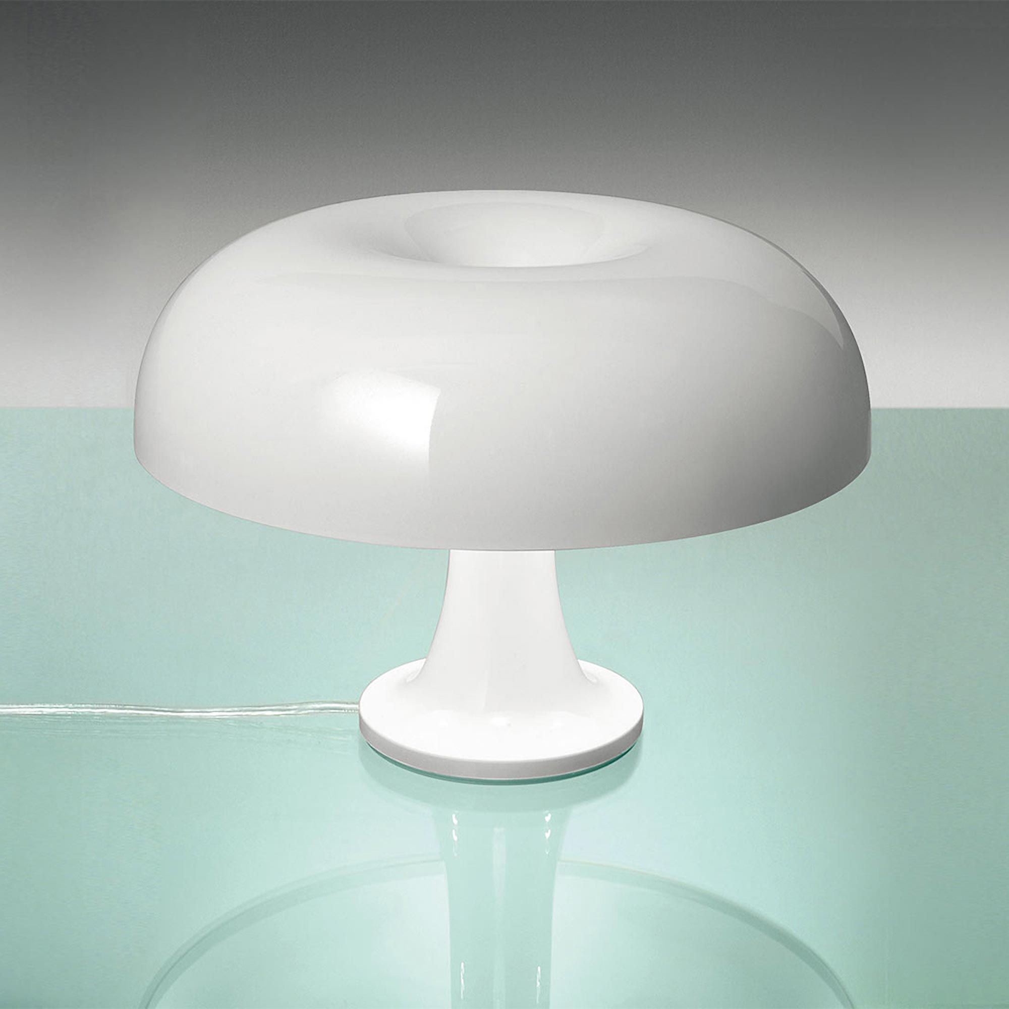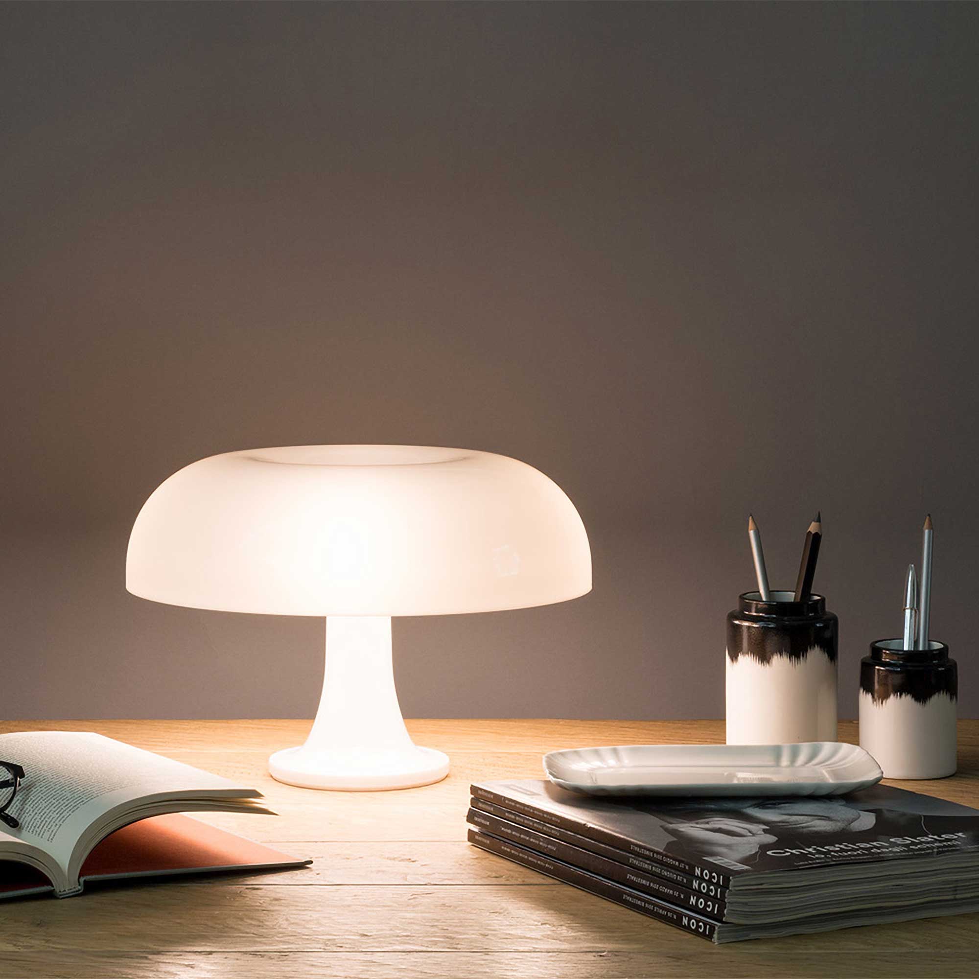 A waterfall of light emanates from the iconic silhouette of the Nessino Table Lamp from Artemide.