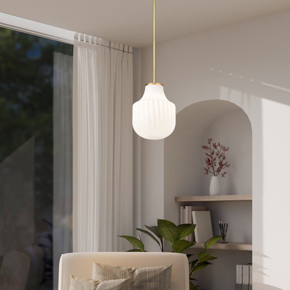 Taking its cues from classic schoolhouse glass, the Newbury Pendant Light from Z-Lite is the ideal blend of vintage and modern, creating a dynamic design for your foyer or dining room. The white opal shade features a modified teardrop silhouette, complete with wide ribbing that creates a sense of texture and dimension. This dimmable design sets the tone in any room.