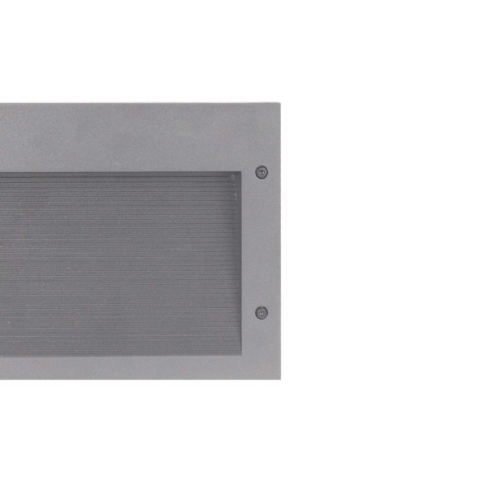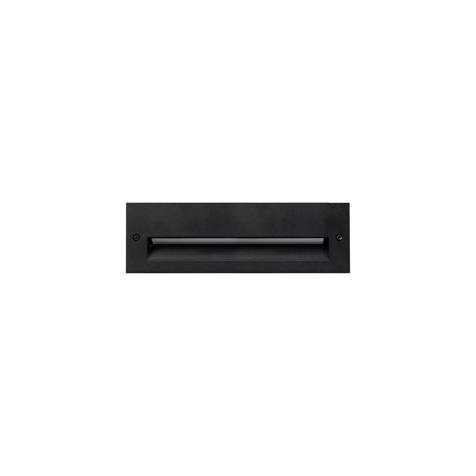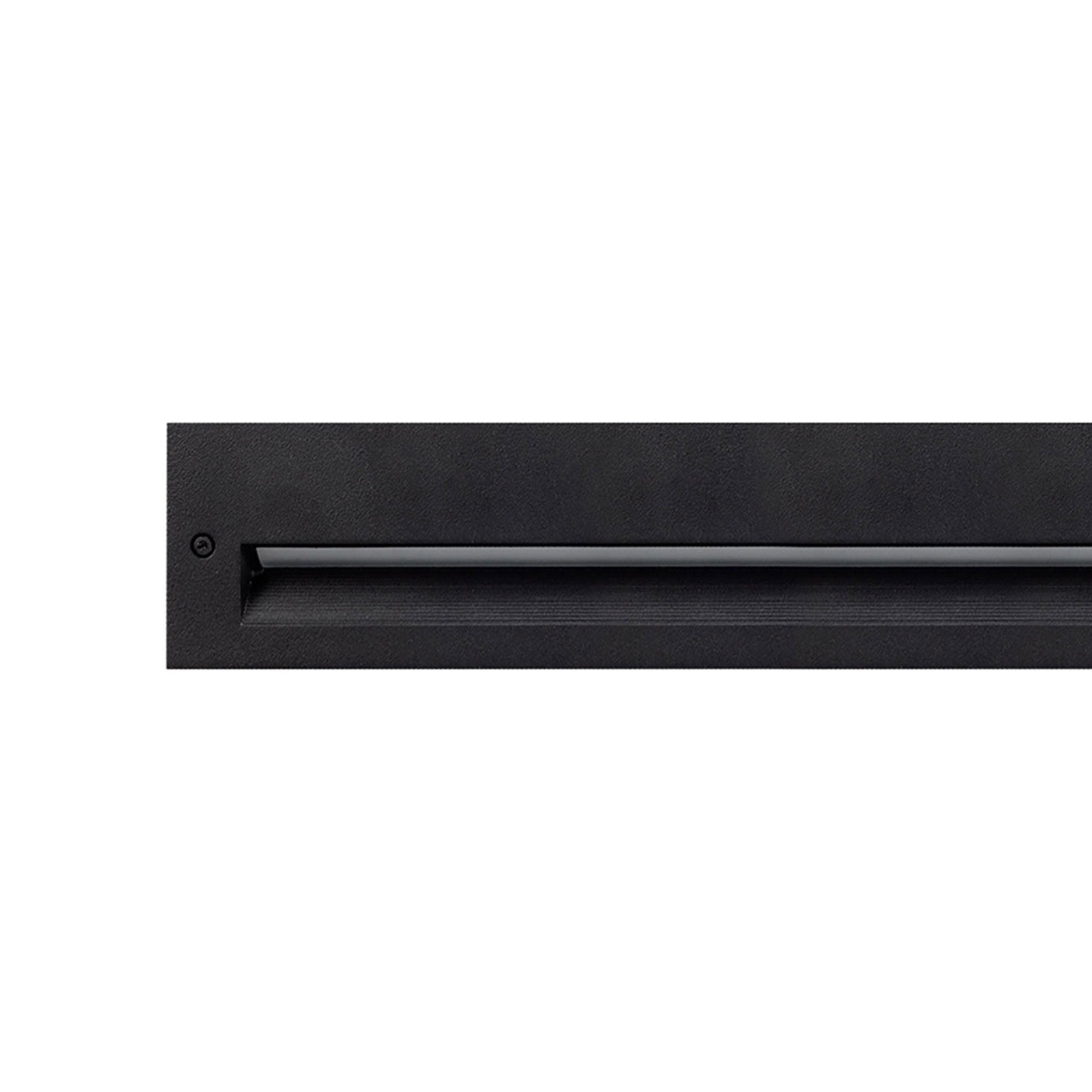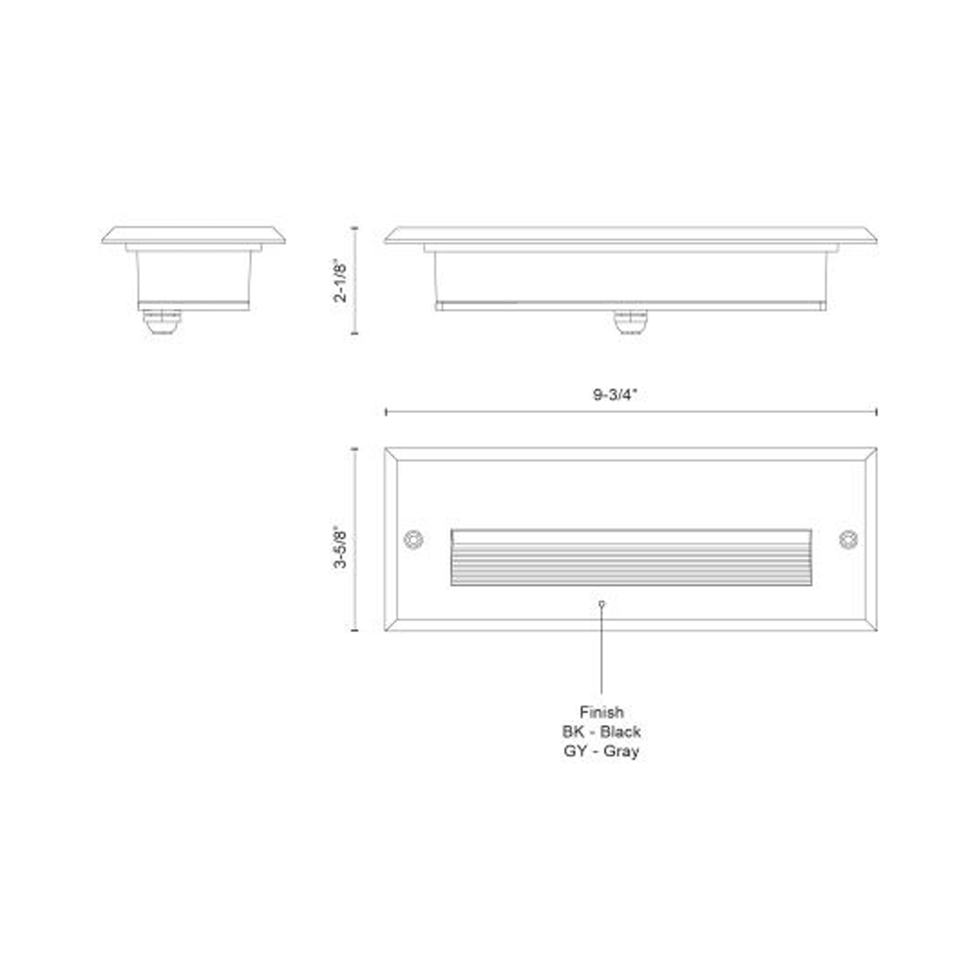 This exterior recessed light is a classic, rectangle-shaped 9-3/4 inch long die-cast aluminum recessed light and utilizes LED light sources. The housing is designed to light an exterior or interior staircase or any other area that calls for a lighting from a concealed aperture. Choose from black or grey powder coat. Newport is ELV, TRIAC.