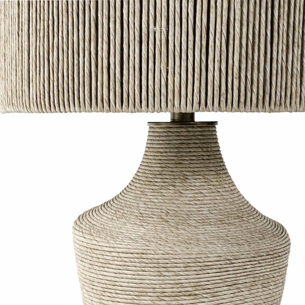 Brighten your exterior living room with the nautical dimension and texture of the Newport Outdoor Table Lamp from Palecek. Subtle curves are wrapped in all-weather, synthetic rattan and augmented with brass hardware that delivers a charming dose of warmth to a sun-bleached, driftwood-inspired color palette. Its drum shade establishes a modern silhouette and the socket is enclosed in a glass globe for excellent protection from the elements.
