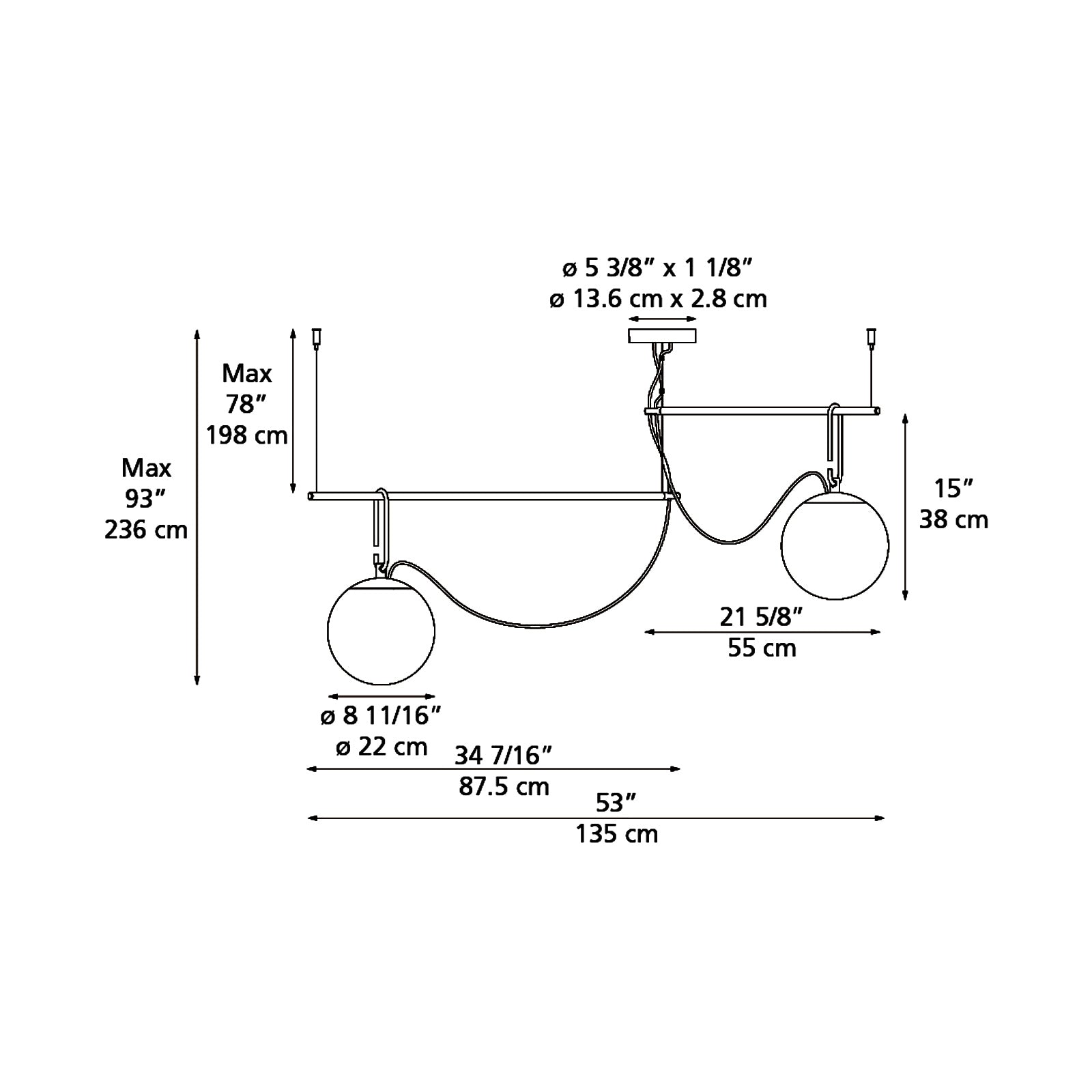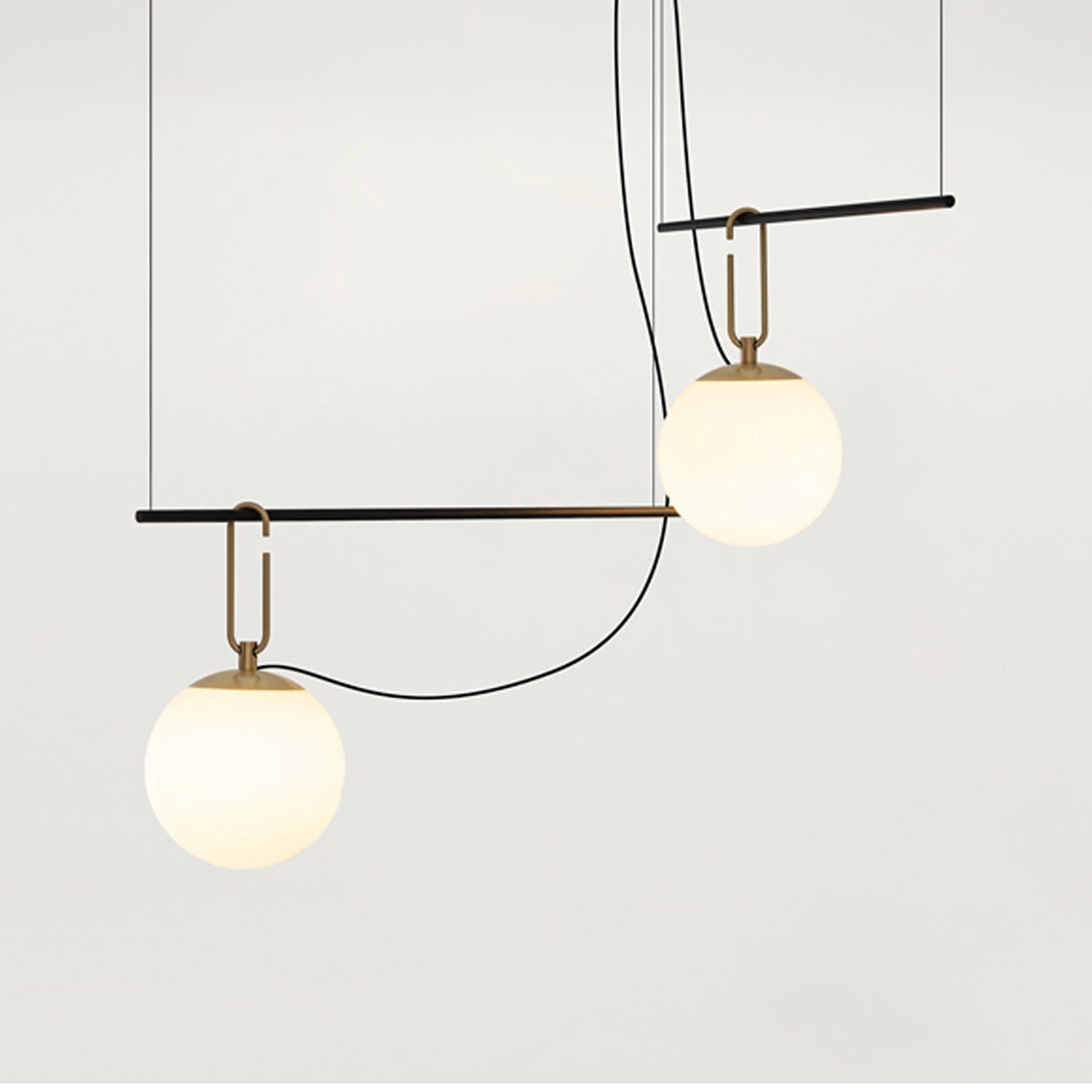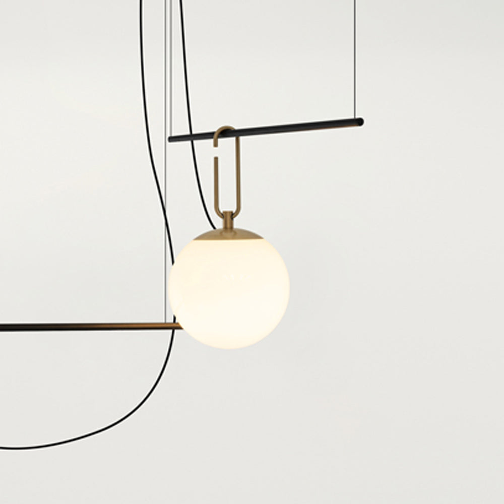 Captivate the senses with the NH S3 LED Suspension Light from Artemide, designed with a rigid acrobatic silhouette and elegant draped exposed wires that lend a simple utilitarian expression. This energy-efficient suspension chandelier is sure to elevate interiors as it gives off a soothing glow from retro-inspired hand blown glass globes.