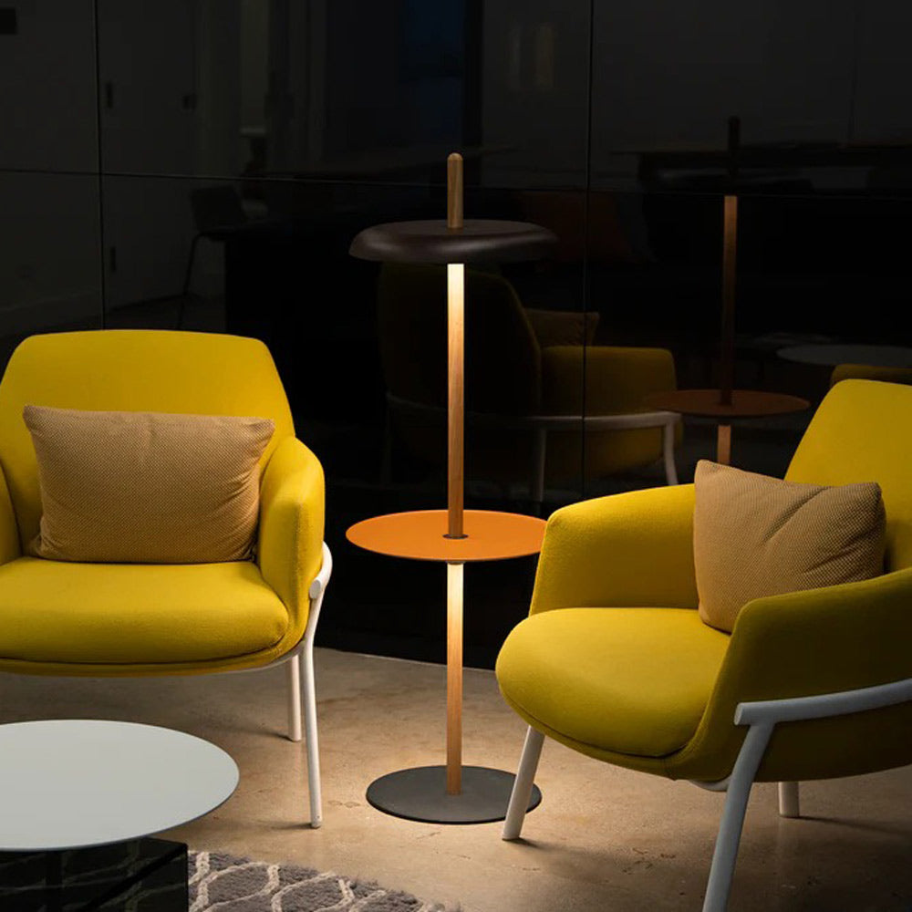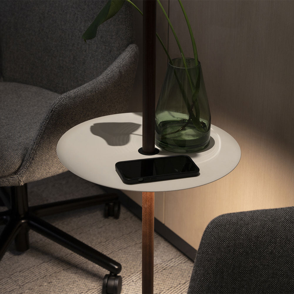 Improve the functional impact of accent and ambient lighting in a modern casual space with the Nivel Module with Pedestal Tray from Pablo. Adding a convenient element to an adjustable floor lamp, this module adapts an aesthetic matching the Nivel’s sleek disk shade and positions itself at a perfect height to accommodate serving and display.