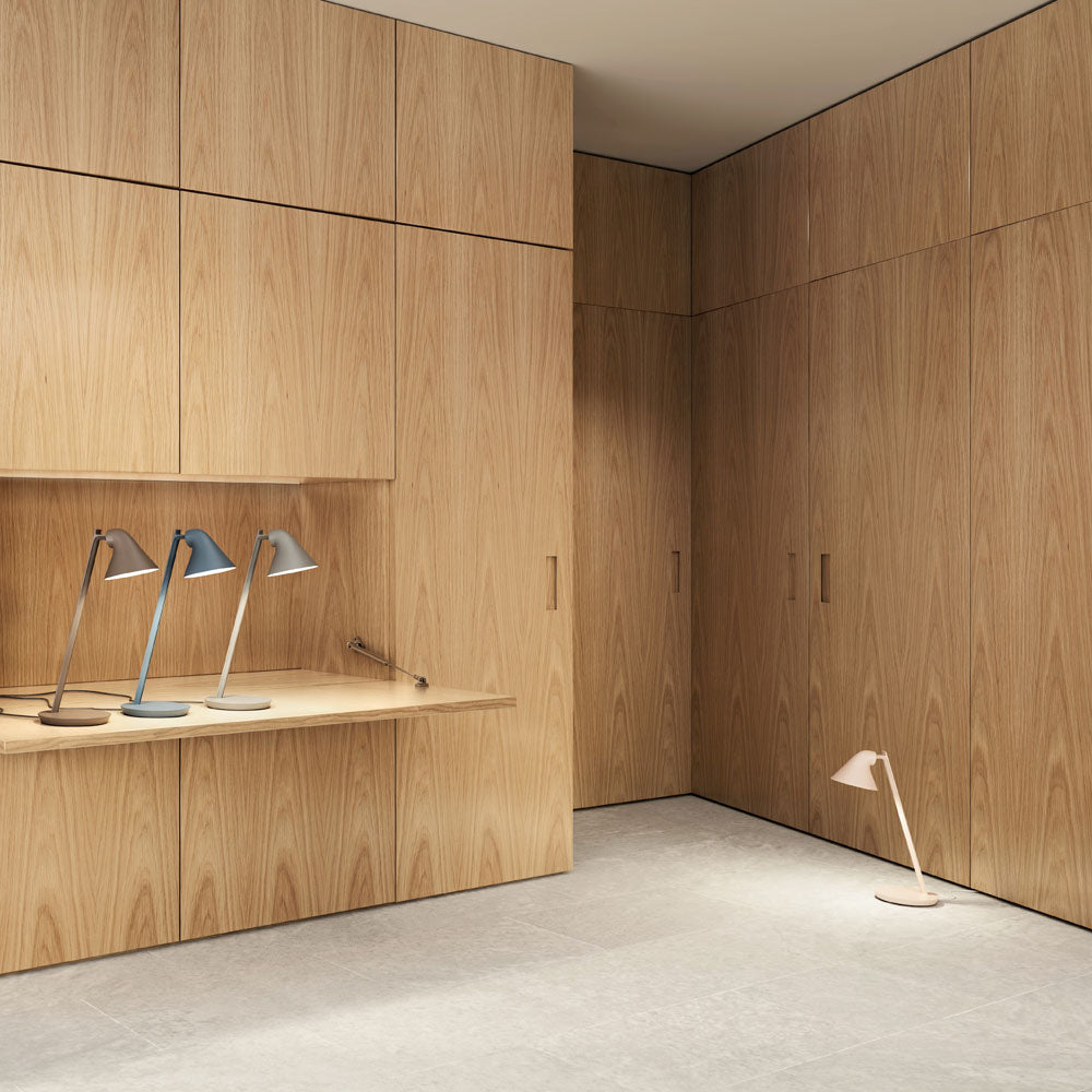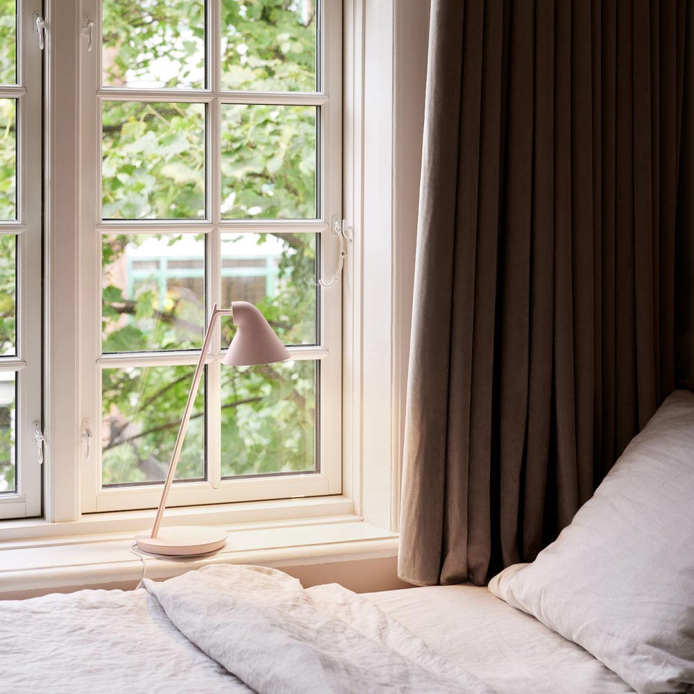 Unique curvature adds precision and elegance to the conical shade of the NJP LED Mini Table Lamp from Louis Poulsen. An angular stem and round base support the light, which delivers glowing, diffused illumination over everything from desks to nightstands and accent tables.