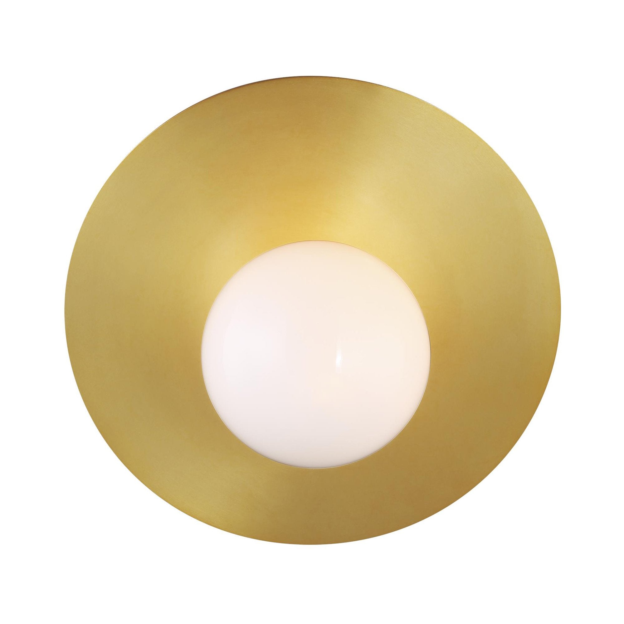 The Nodes Angled Bath Wall Light provides abundant light for your bath vanity, while adding a layer of today's style to your interior design. Nodes task, ceiling and wall lighting is minimal yet bold, highlighting Kelly's distinctive juxtaposition of mixed-materiality and curvilinear form. Light radiates from milk glass globes set against metal discs. All fixtures can be used or without the discs. The cast canopy is available in Burnished Brass or Midnight Black. Hanging fixtures within this family feature black fabric cords, while pivot sconces can be cord and plug or hard wire.