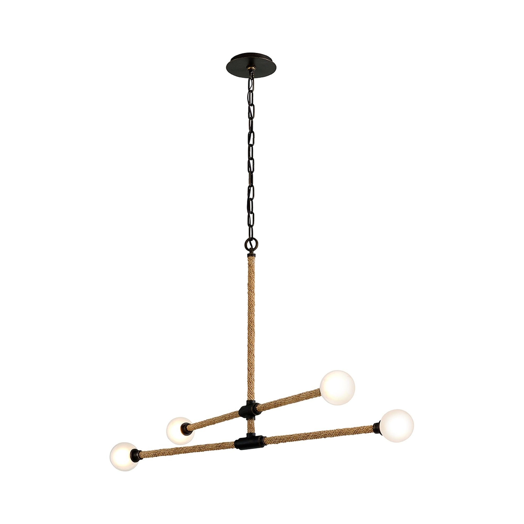 Embracing a minimalist modern silhouette and style, the Nomad Linear LED Pendant Light from Troy Lighting features a simple frame made of classic bronze finish metal with four opal white globe bulbs adding end caps and a delightful vibe.