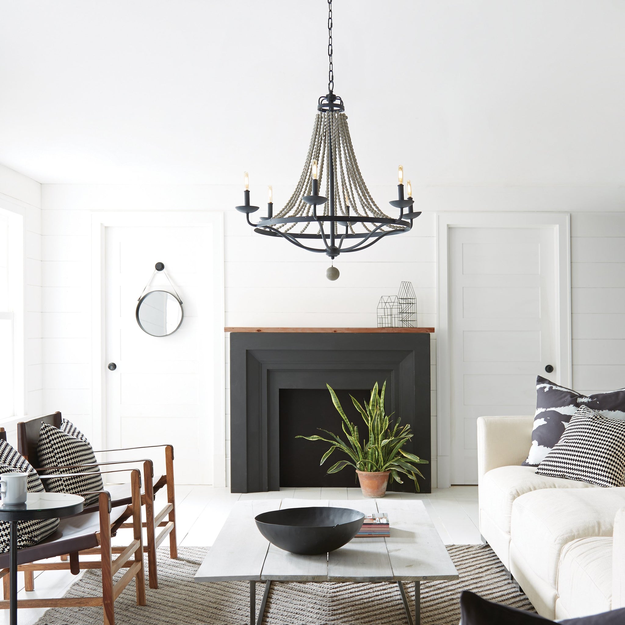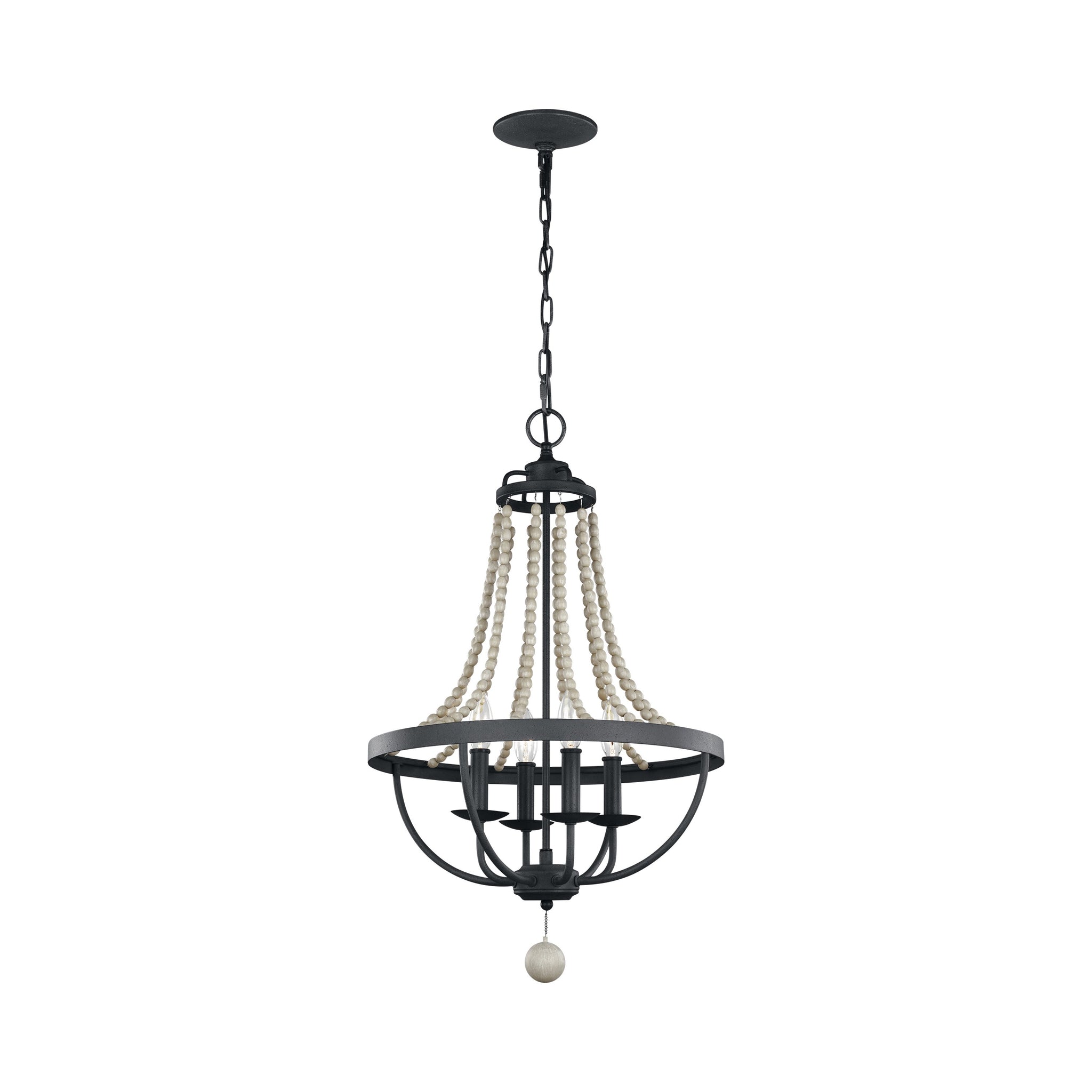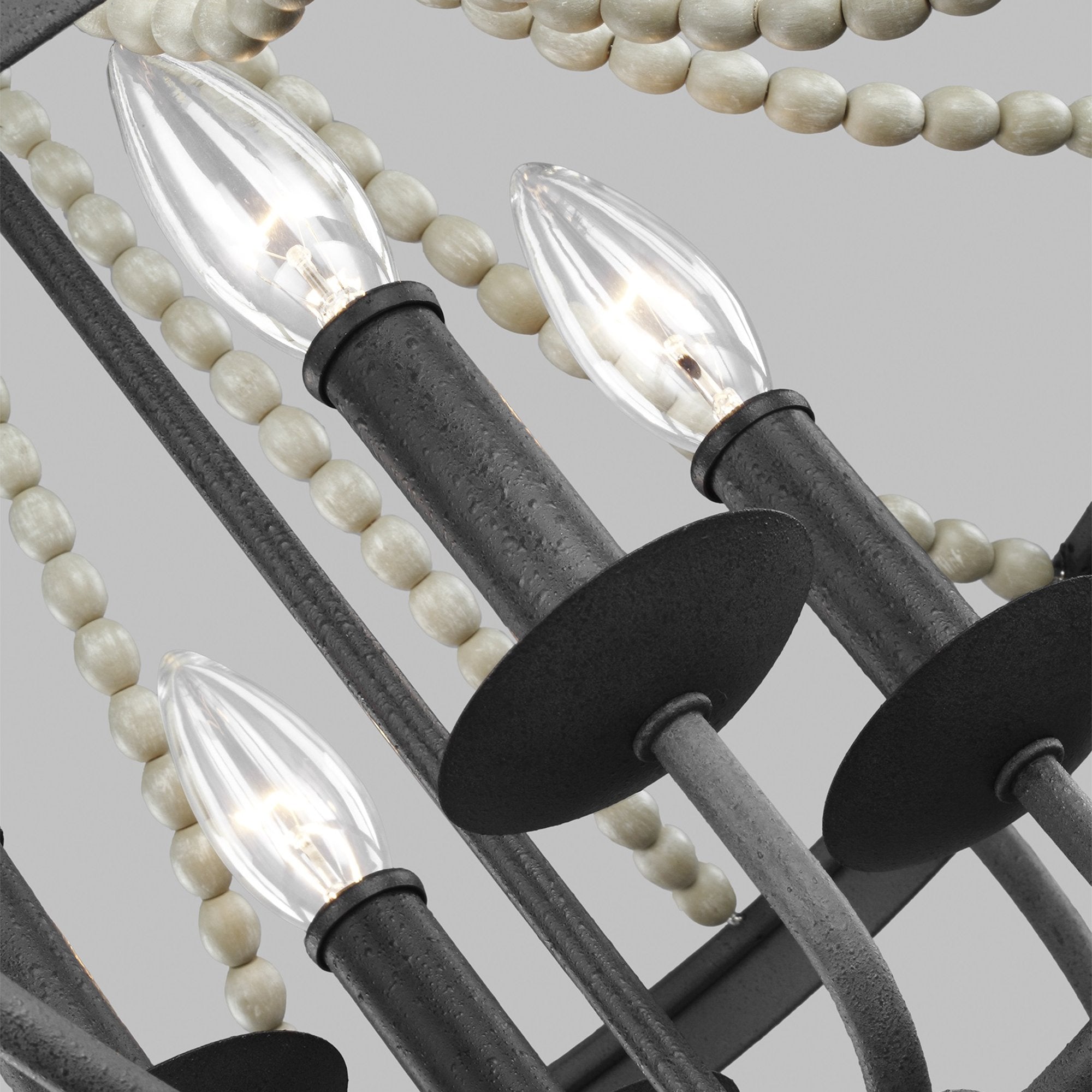 The Nori Chandelier is the perfect way to achieve your desired fashion or functional needs in your home. The Nori Collection features vintage elements like beautifully cascading Driftwood Grey Wood beads and the rustic flair of a Dark Weathered Zinc finish. On the chandeliers, an optional large Driftwood Grey Wood bead suspends from the center of the frame, adding a touch of elegance to a traditional silhouette.