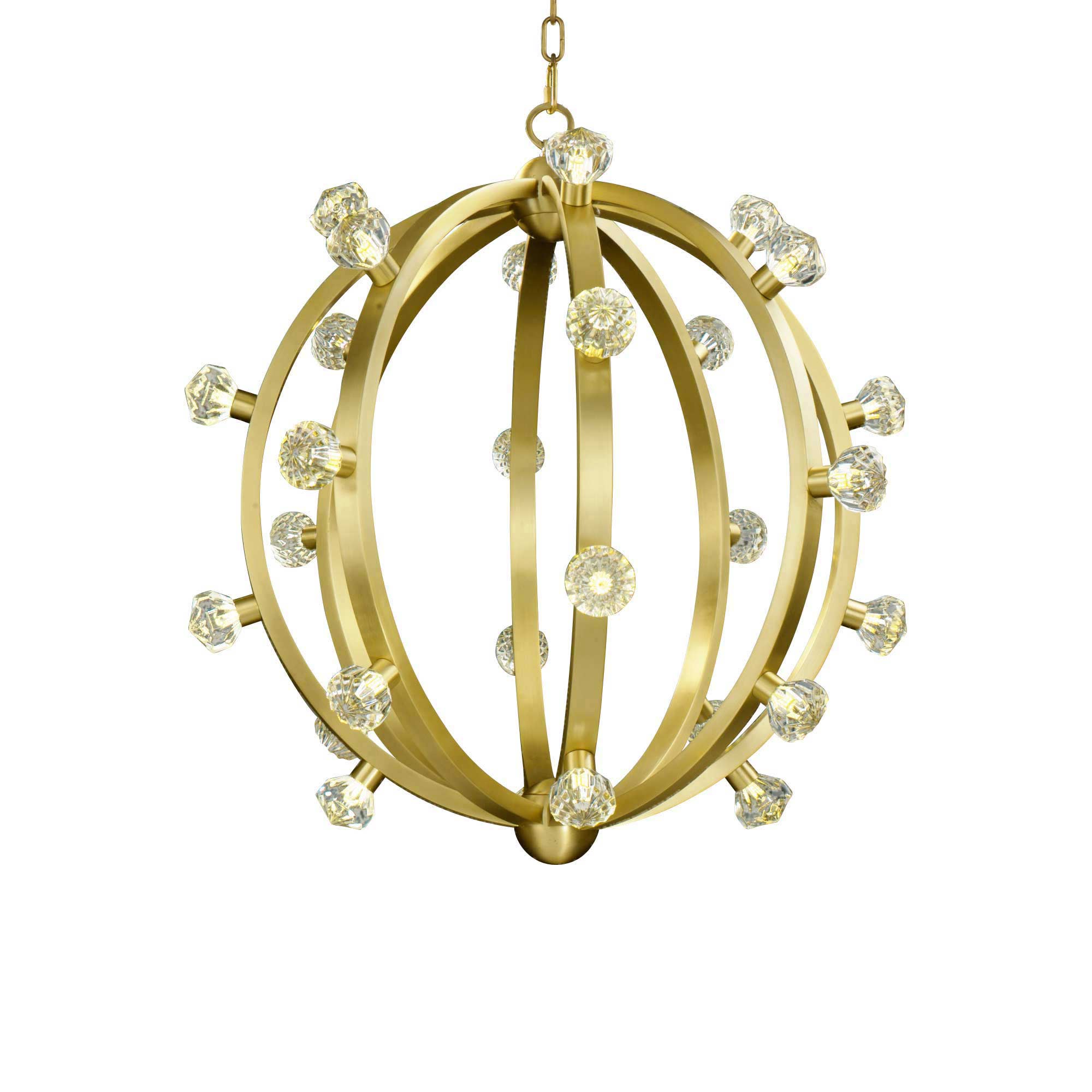 Peppered with sparkling crystal-like shades, this orbital contemporary Norma Jeane LED Pendant Light from Studio M lends a Hollywood Regency flair and old-world vintage charm. Circlets in a warm metallic tone offer a stunning luxurious touch, elevating this globe shape energy-efficient pendant light into a magnificent statement piece over tablescapes.