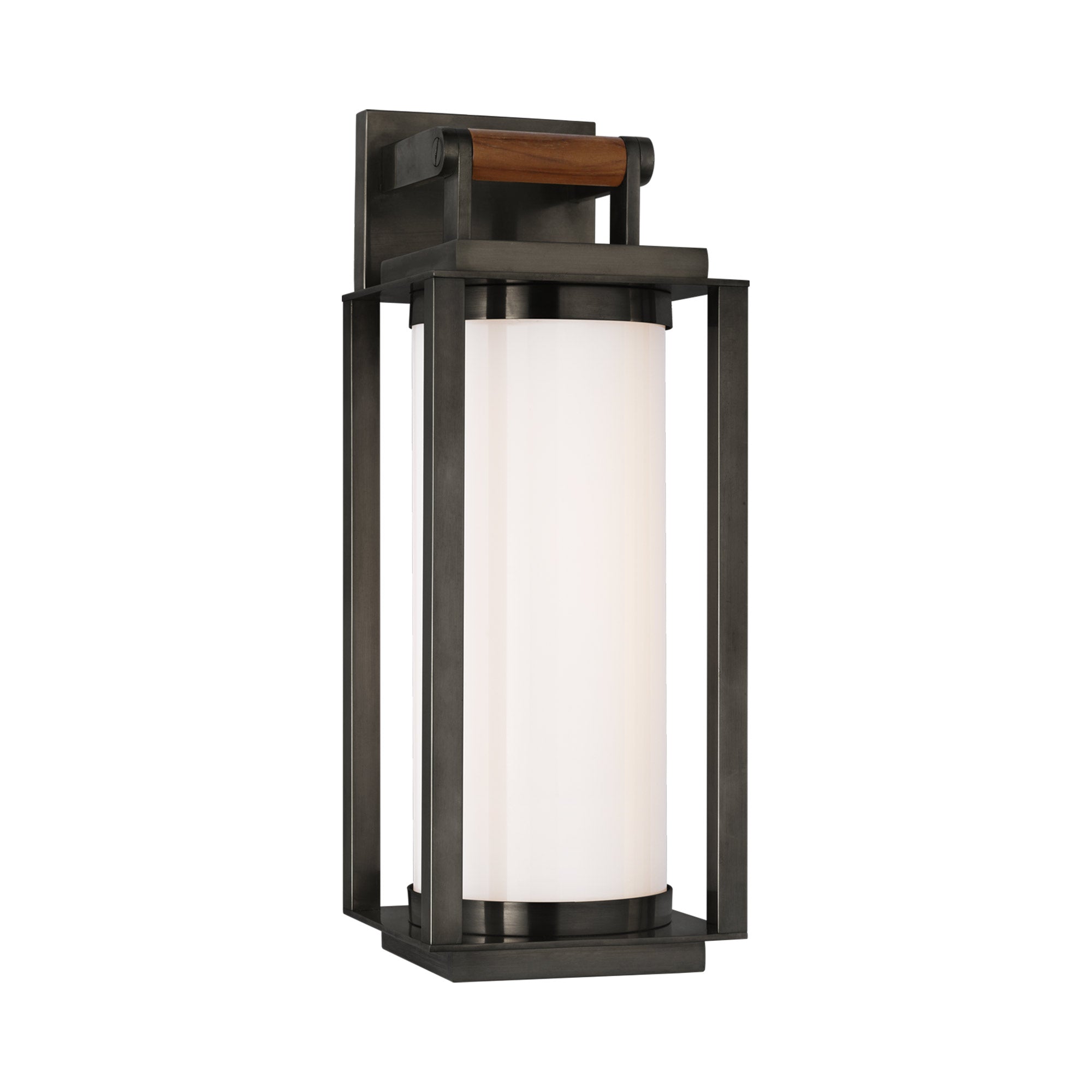 Experimenting with a classic lantern motif, the Northport Bracketed Outdoor LED Wall Light from Visual Comfort Signature doubles down on impact with thick, clean lines and a smattering of intriguing drama. Patios and residential structures come to life with an energy-efficient fixture featuring openwork metal framing and ornate, unexpected detail daring to discover rustic flavor. A cylinder shade of white glass casts an ethereal glow, bringing soft illumination into the night.