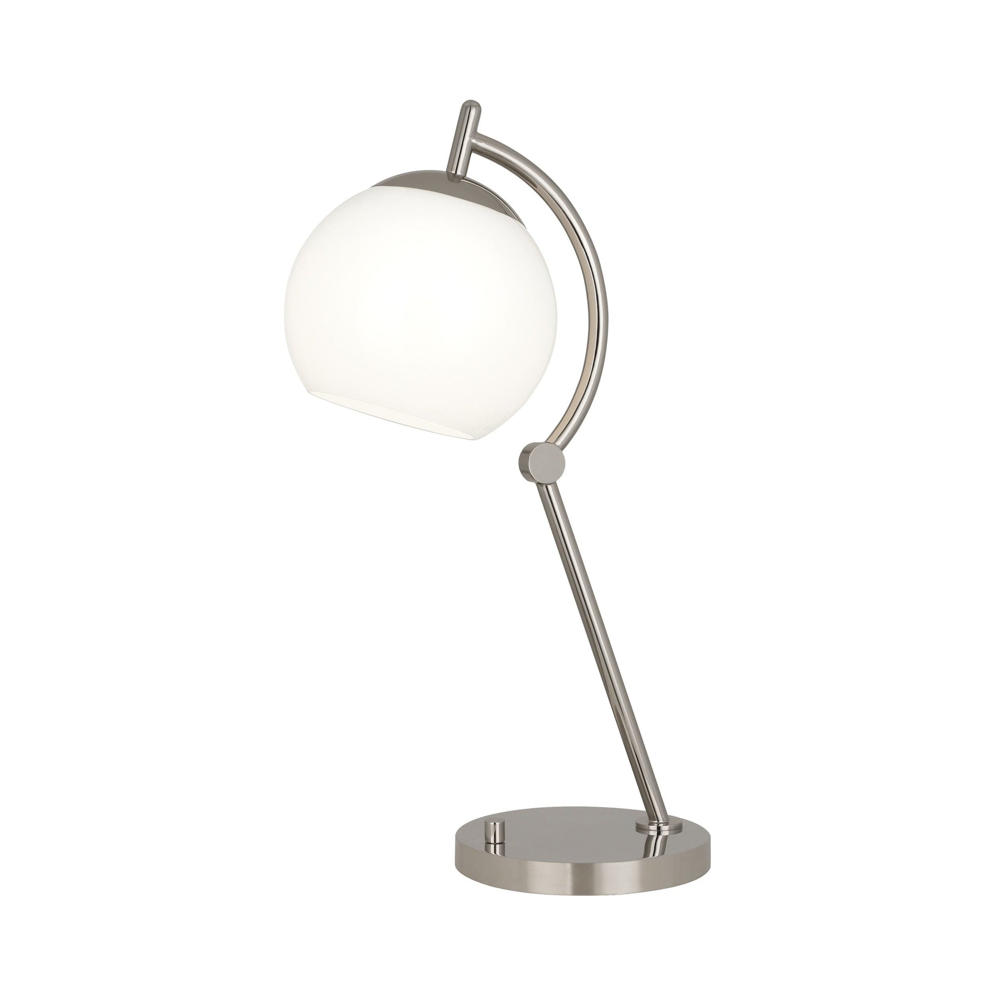 A whimsical tipped design adds intrigue to the Nova Table Lamp from Robert Abbey, offering a hint of Art Deco flavor and a creative balanced profile perfect for a custom home office or living space.