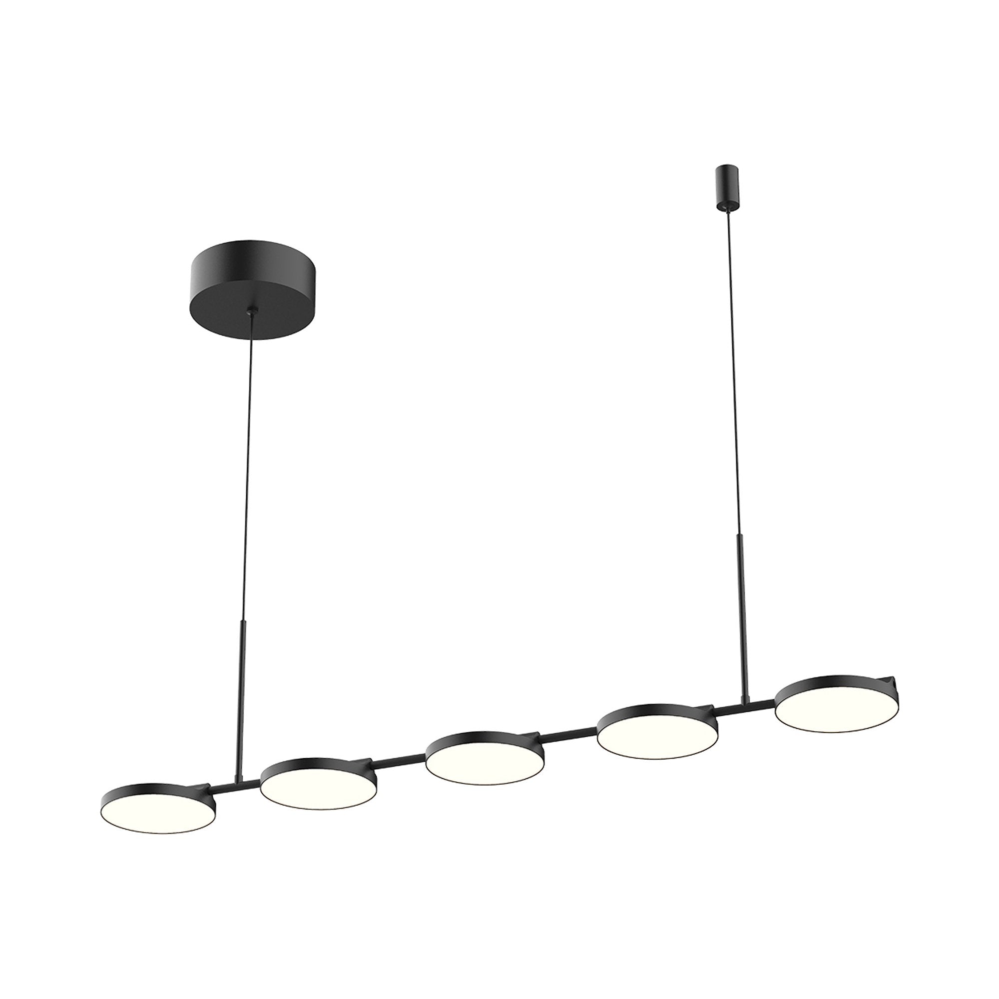 Crisp with contemporary ambiance, the Novel LED Linear Pendant Light from Kuzco Lighting captures focus in a custom kitchen or entertaining space with a pared down studio vibe. Working with sheer geometric elements, this energy-efficient linear pendant offers adjustable disc shades and a minimalist overall footprint that borrows from industrial styling.