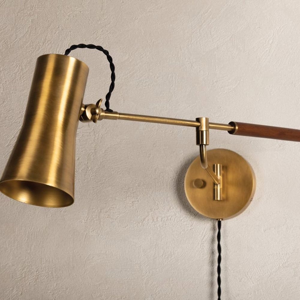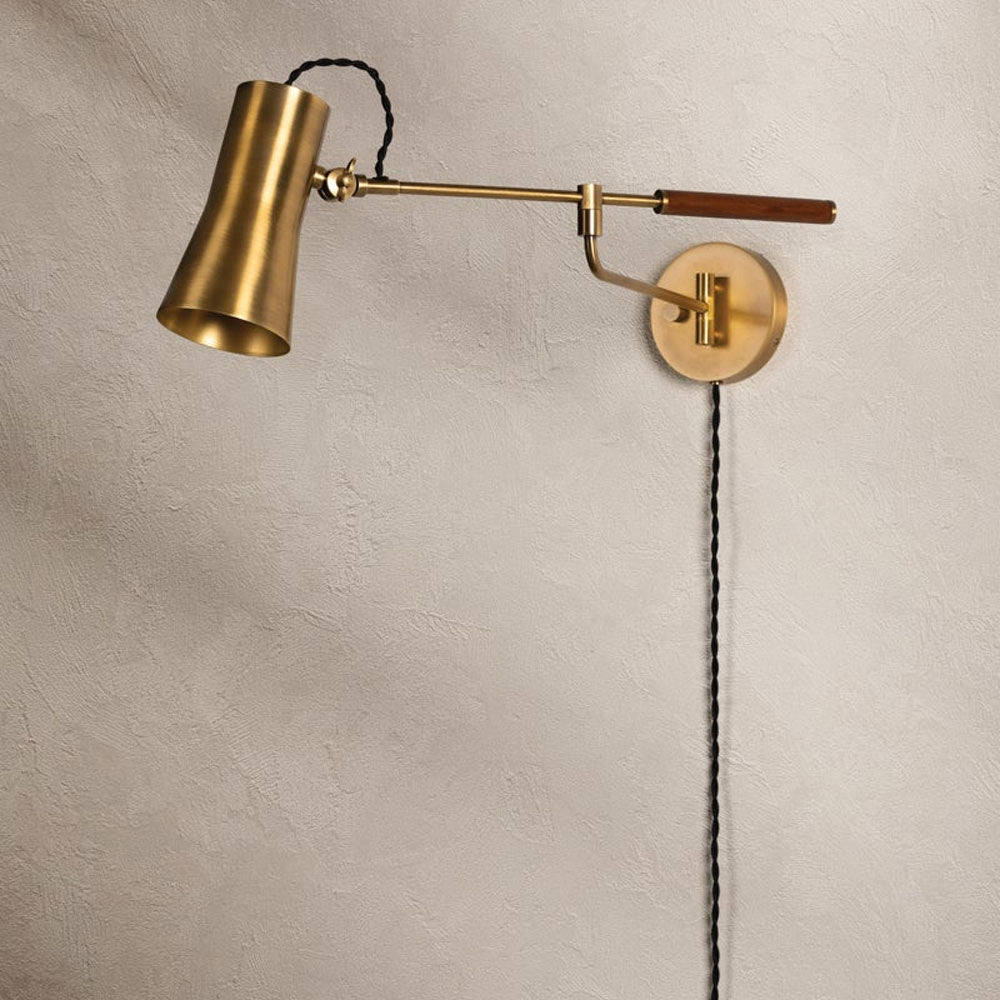 The Novel Plug-in Wall Light from Troy Lighting reflects a seemingly endless continuum of parts, each offering both aesthetics and functionality. Iconic metal construction culminates in a sleek, studio-inspired metal shade, adjustable to perfect light delivery. An adjustable arm duplicates customization, followed by shapely components that pay tribute to retro industrial attitude.