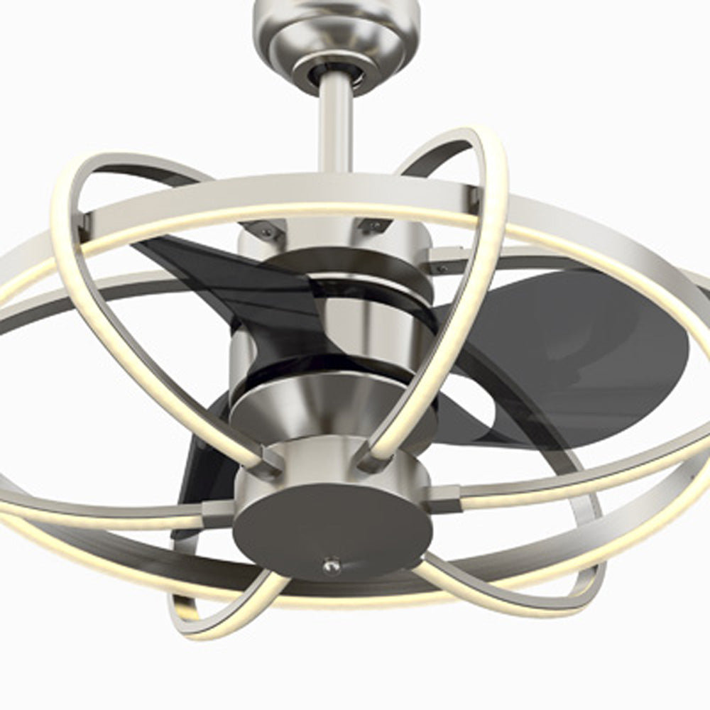 Soak up the unconventional design of a ceiling fan with the power to transform a modern or transitional space. Quirky elements encircle and overlap, creating a busy silhouette to the Obvi Indoor LED Ceiling Fan from Fanimation and adding a compelling statement. Three clear blades and six LED sidelights join an LED center band in producing energy-efficient, streamlined lighting, as a remote control easily operates both lighting and spinning air circulation to make this a must-have fan.