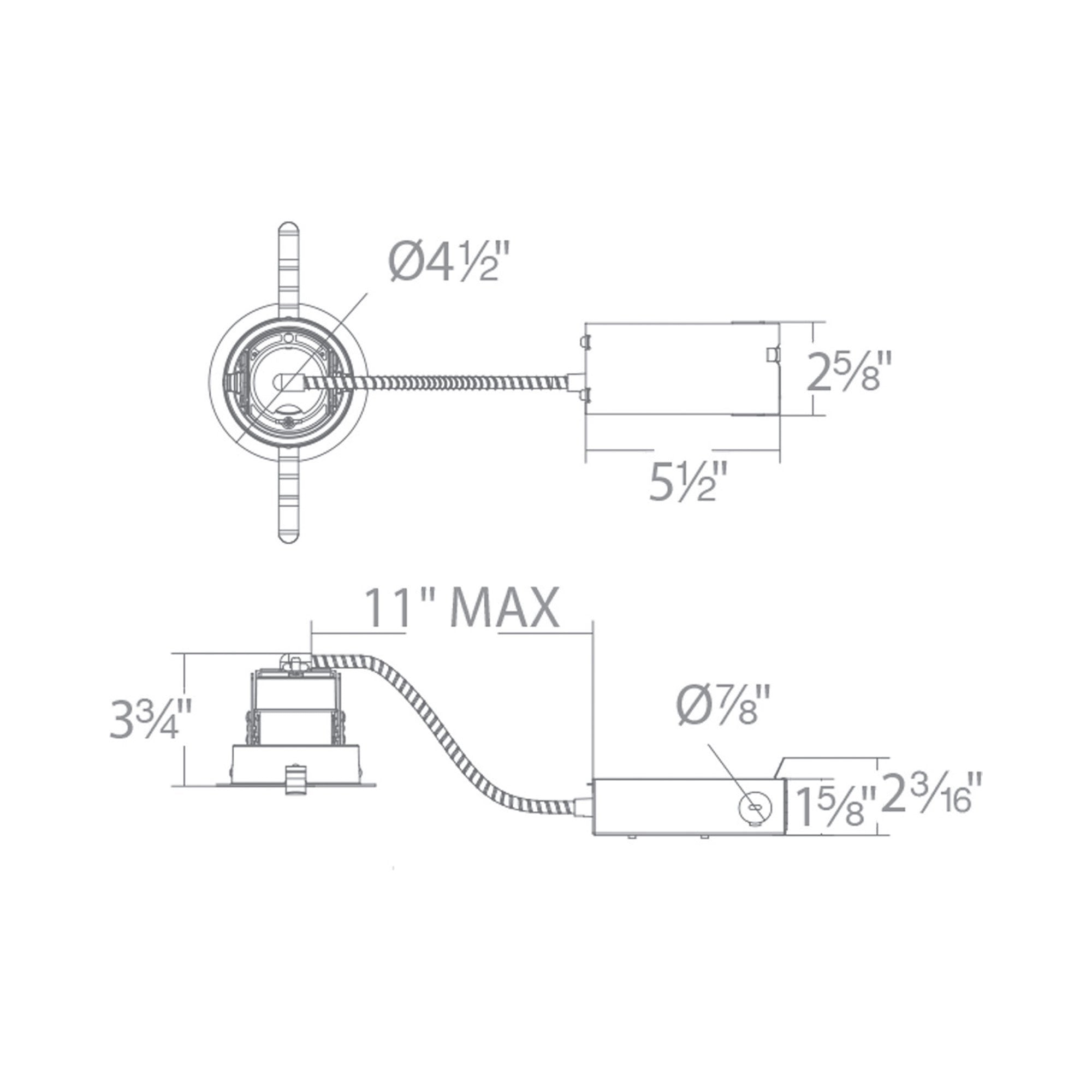 - Trimless: 12.63"W X 3.88"H; 18.31" Length