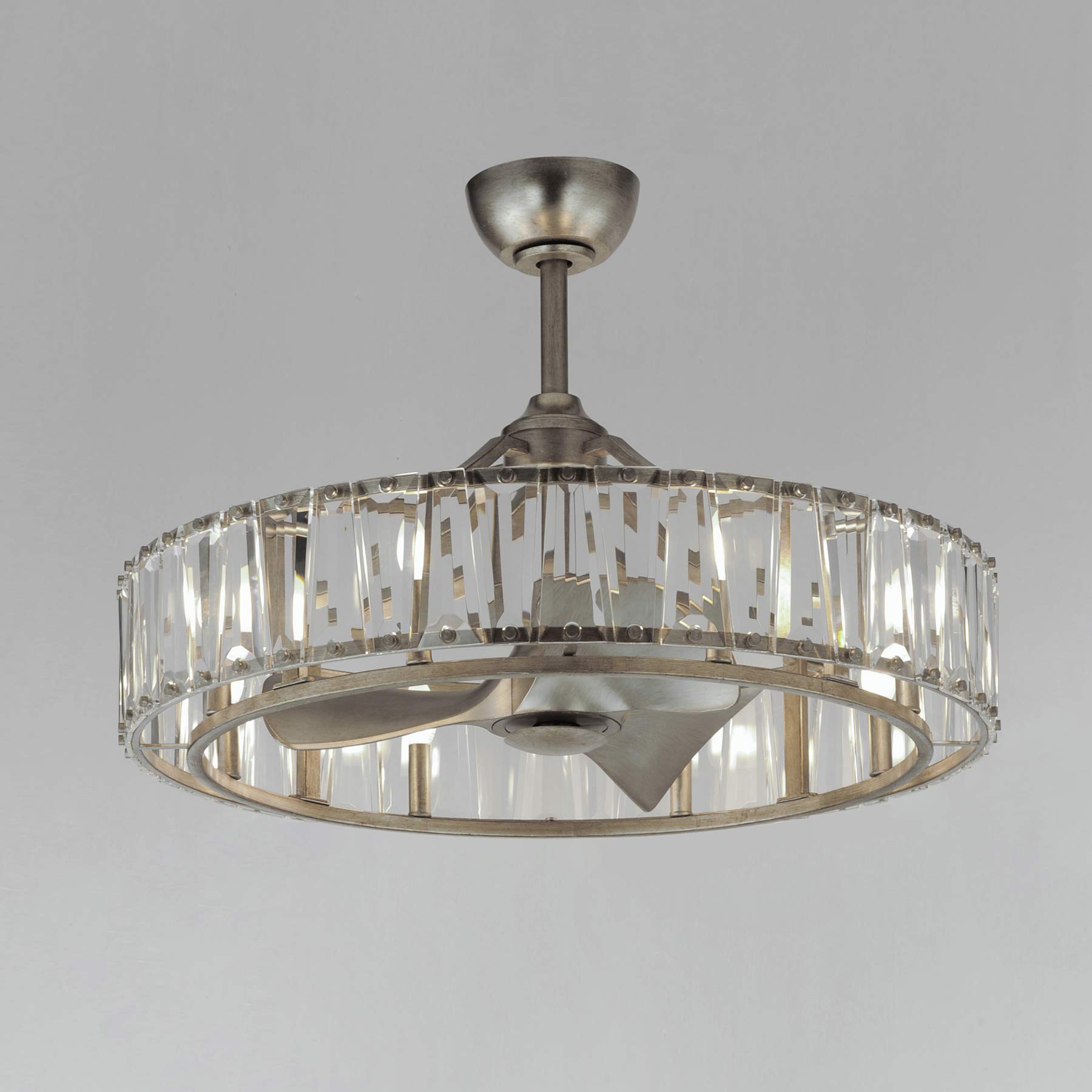 An unexpected material mix and decadent energetic vibe follows a fixture destined to transform a modern space. The Odeon Fandelight from Maxim Lighting reflects precision design mindful of an Art Deco flavor, with ornate steel framing and geometric glass slices teaming up to maximize the artisan side of functionality. Wi-fi enabled and energy-efficient, this fan doubles its duty to circulate breezes and look exquisite in the process.