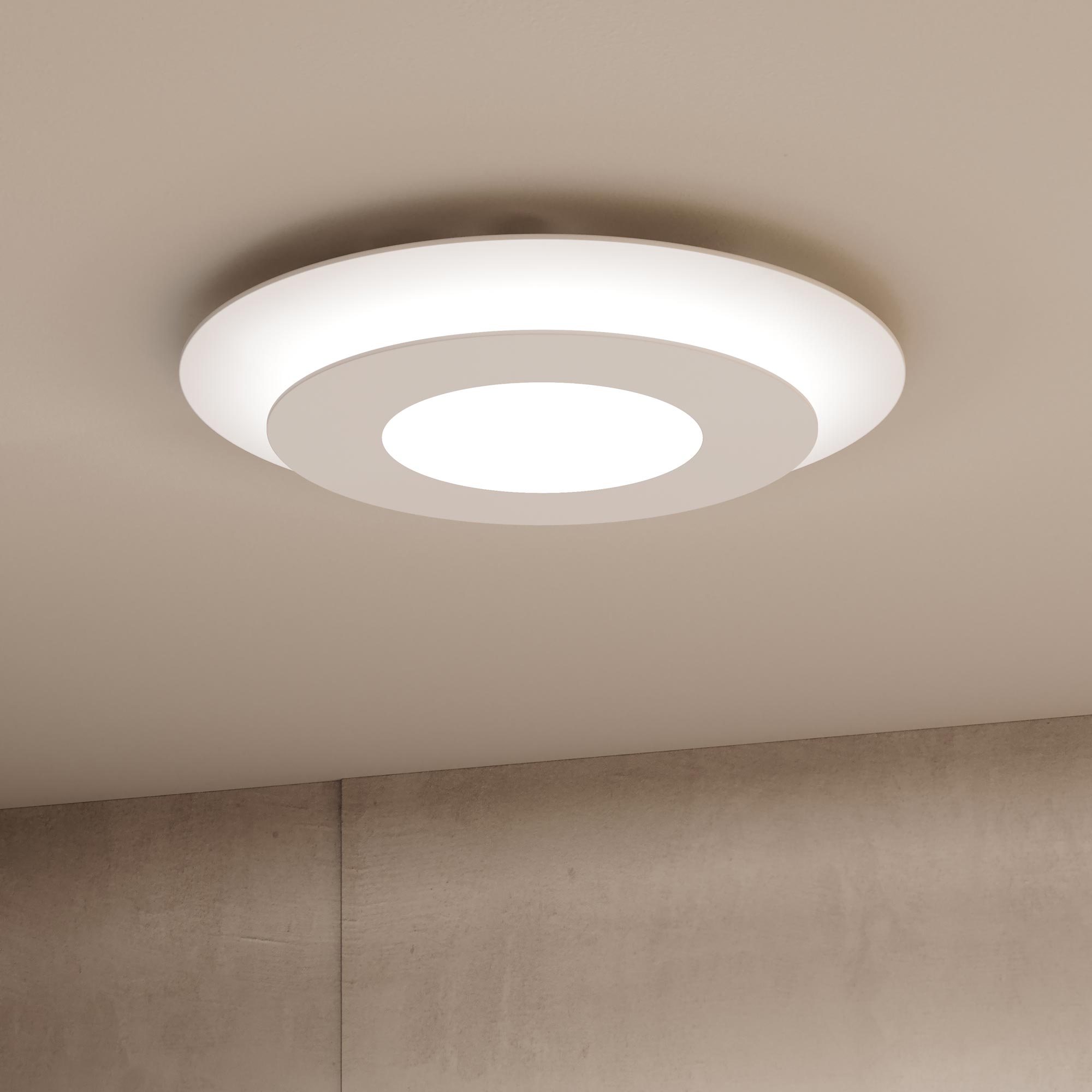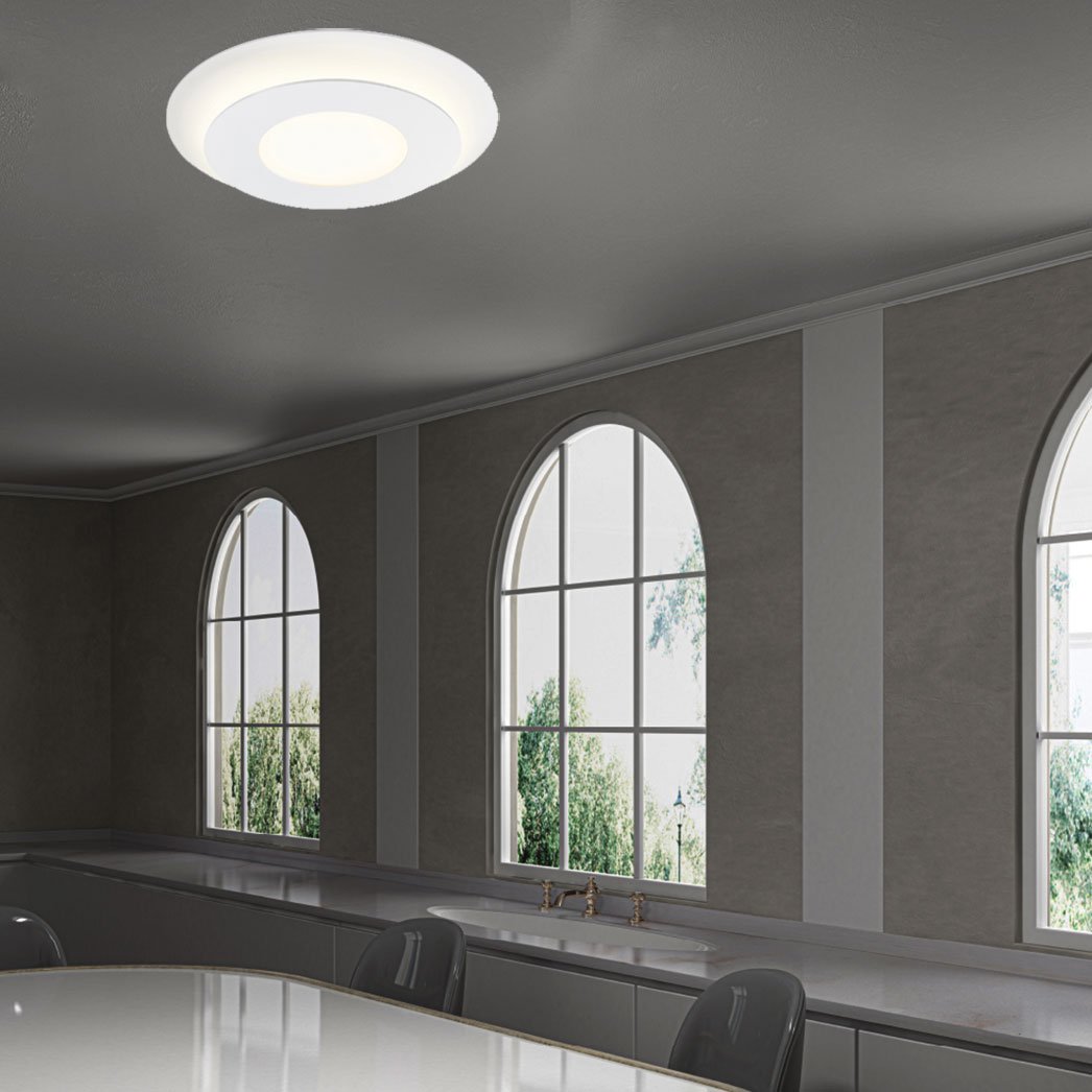 Concentric rings glow in the light of the Offset™ LED Flush Mount Ceiling Light from Sonneman. Simple and geometric in design, it delivers powerful downlighting perfect for a den, bedroom, or intimate sitting area.