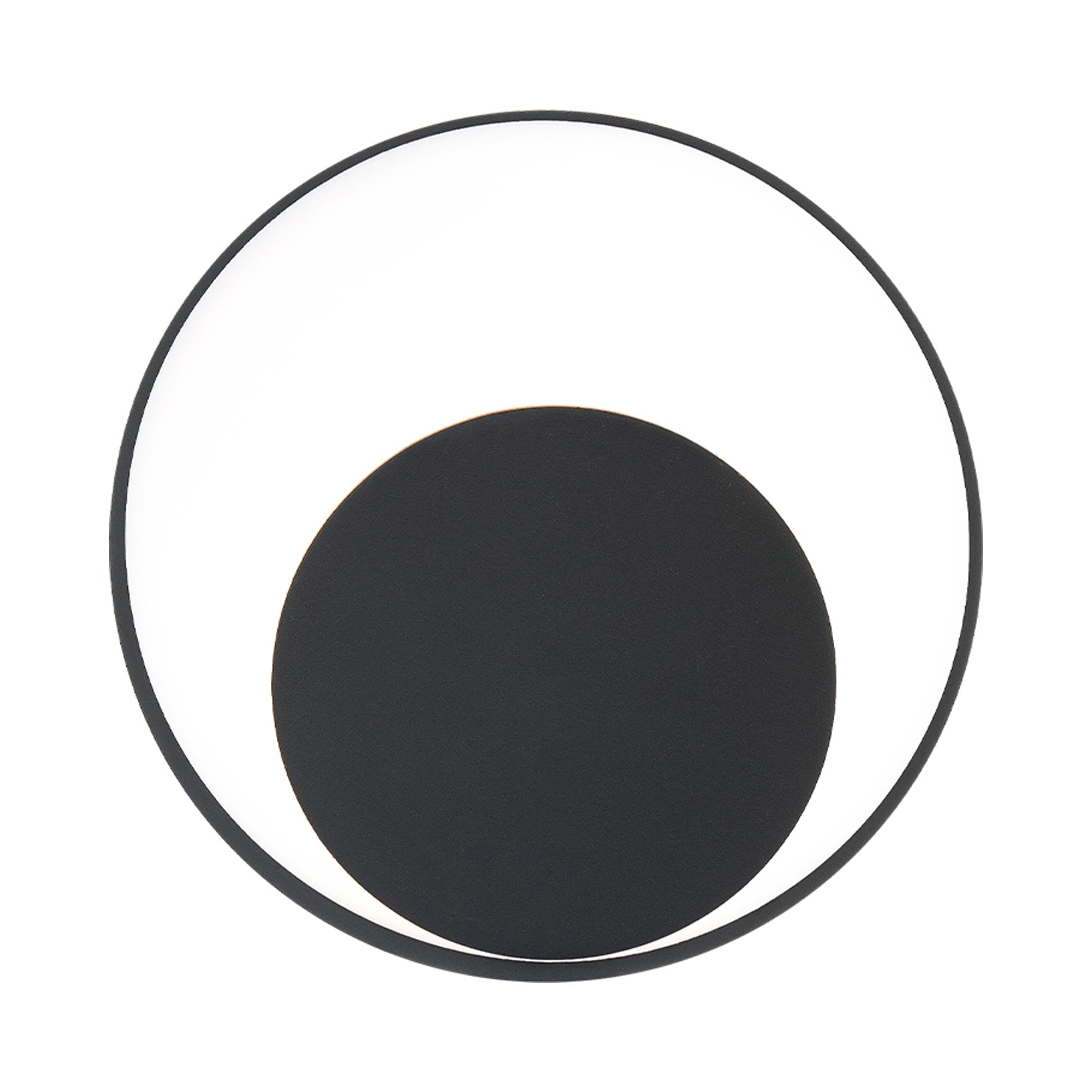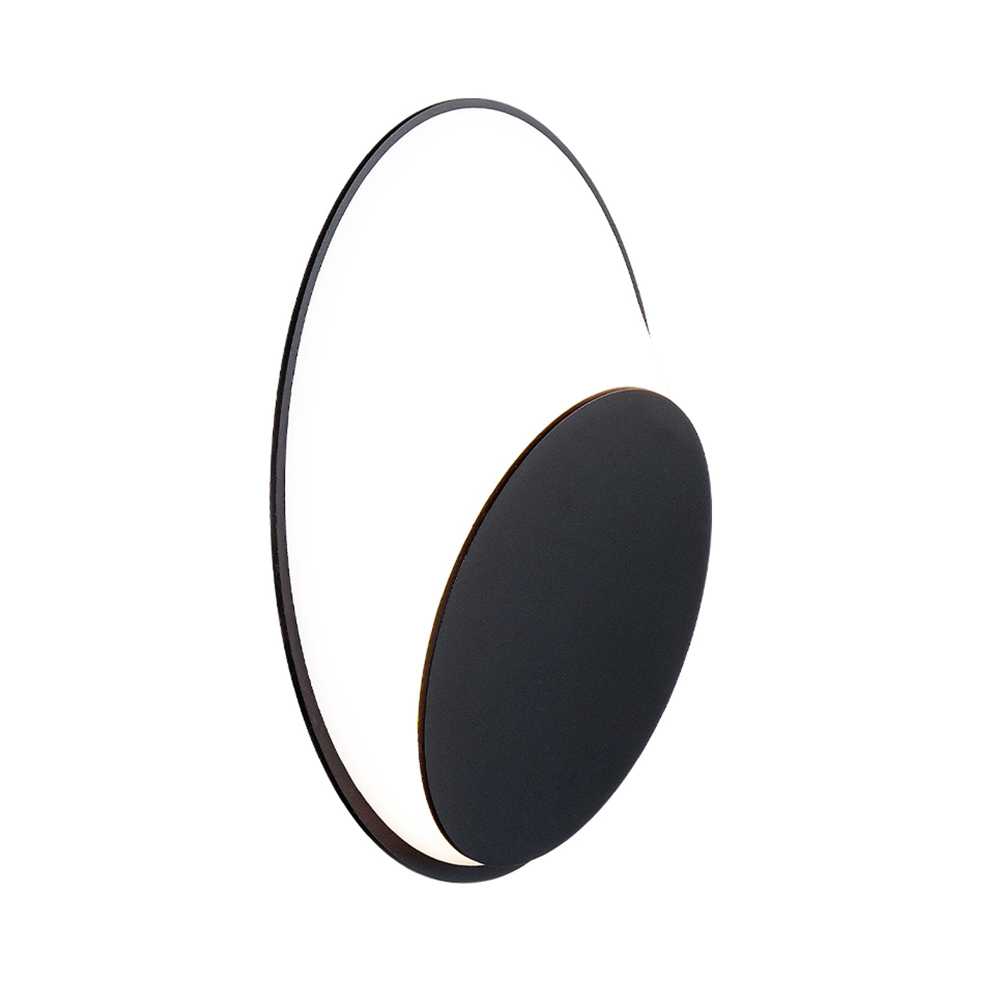 Abstract art concepts drive the design narrative of a light fixture blending crisp modern drama with approachability. Omnidirectional, energy-efficient lighting escapes from the Ogle LED Wall Light from dweLED, offering a mix of function and fashion. Black finish aluminum construction simplifies its silhouetting into an open and closed circle, with soft illumination creating a mood-changing effect.
